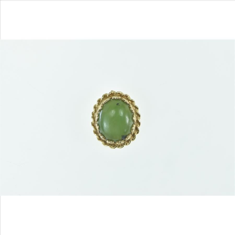 Item:  14K Oval Nephrite Cabochon Rope Trim Vintage Yellow Gold Pendant