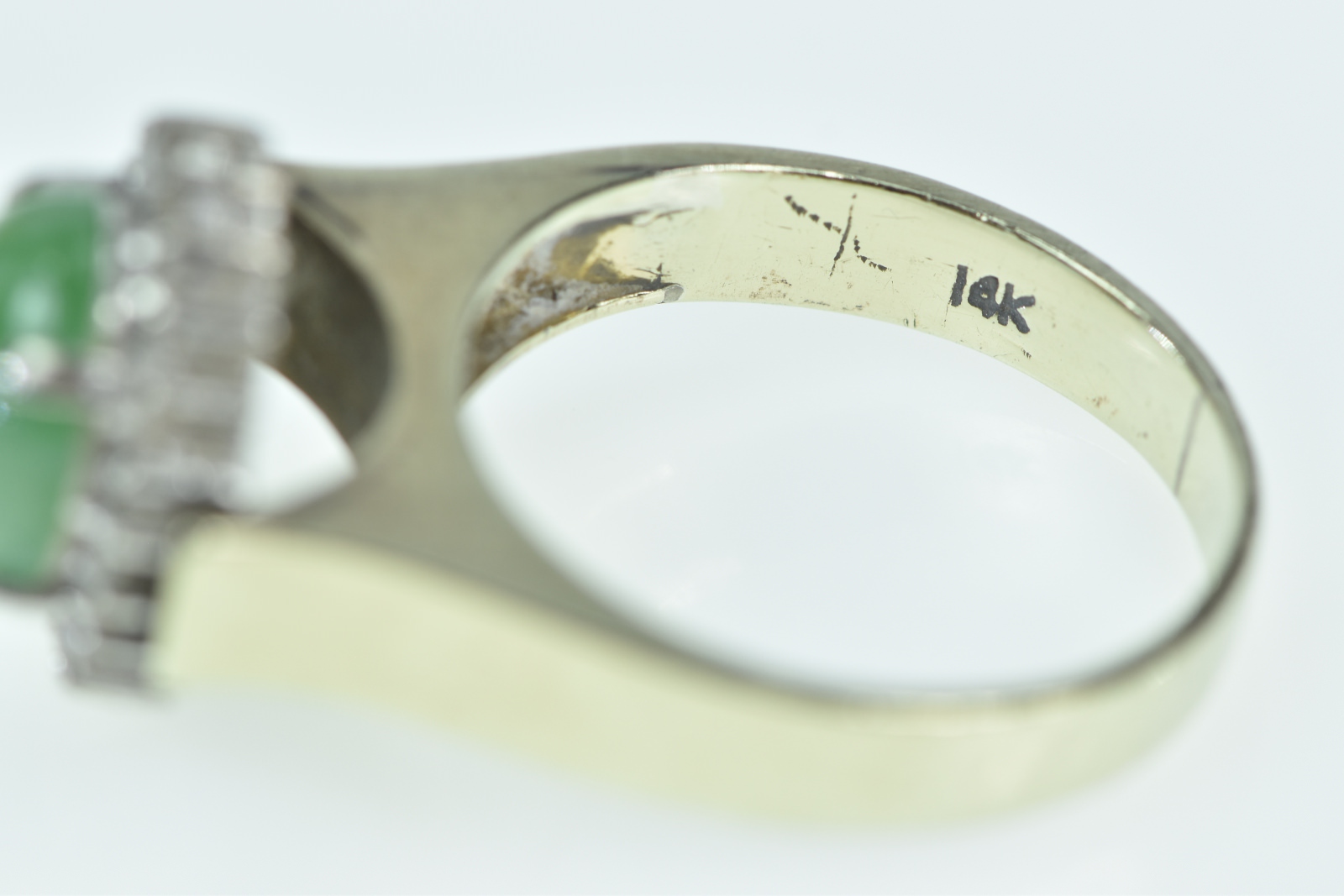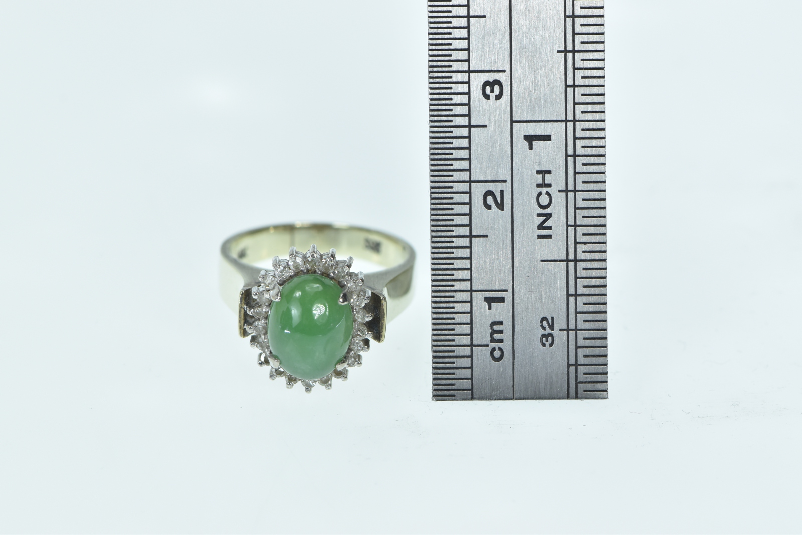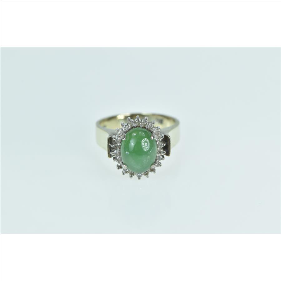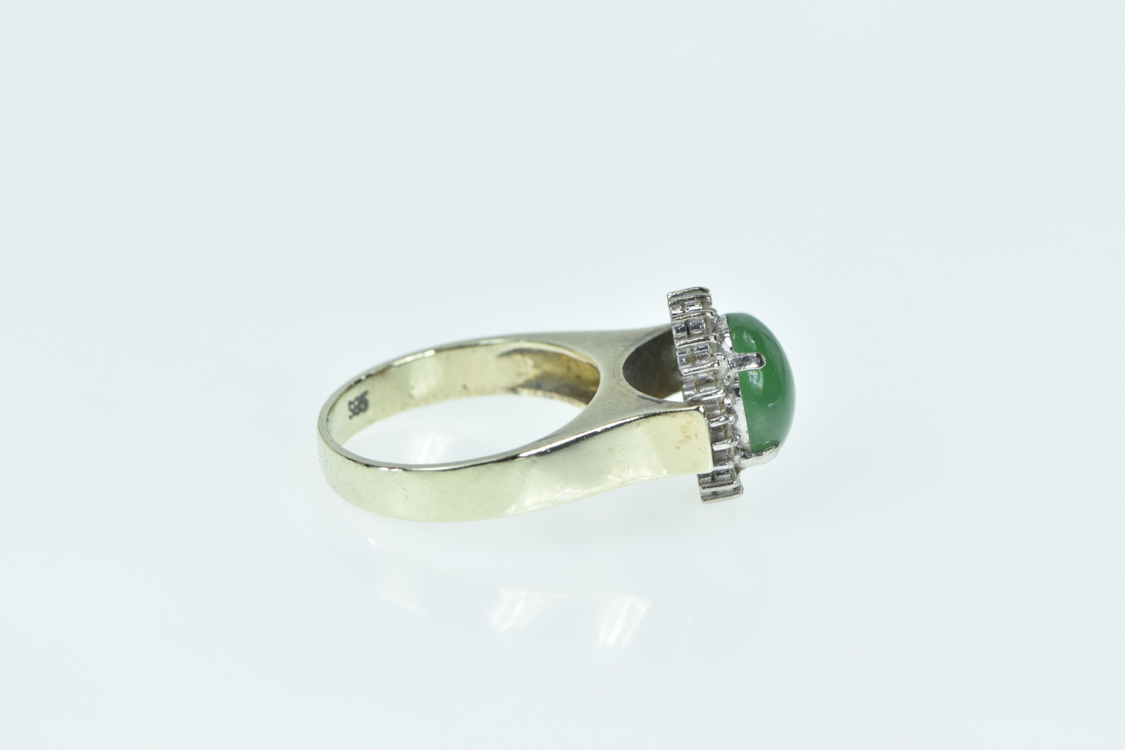 14K Oval Nephrite Diamond Halo Statement Yellow Gold Ring, Size 6.5