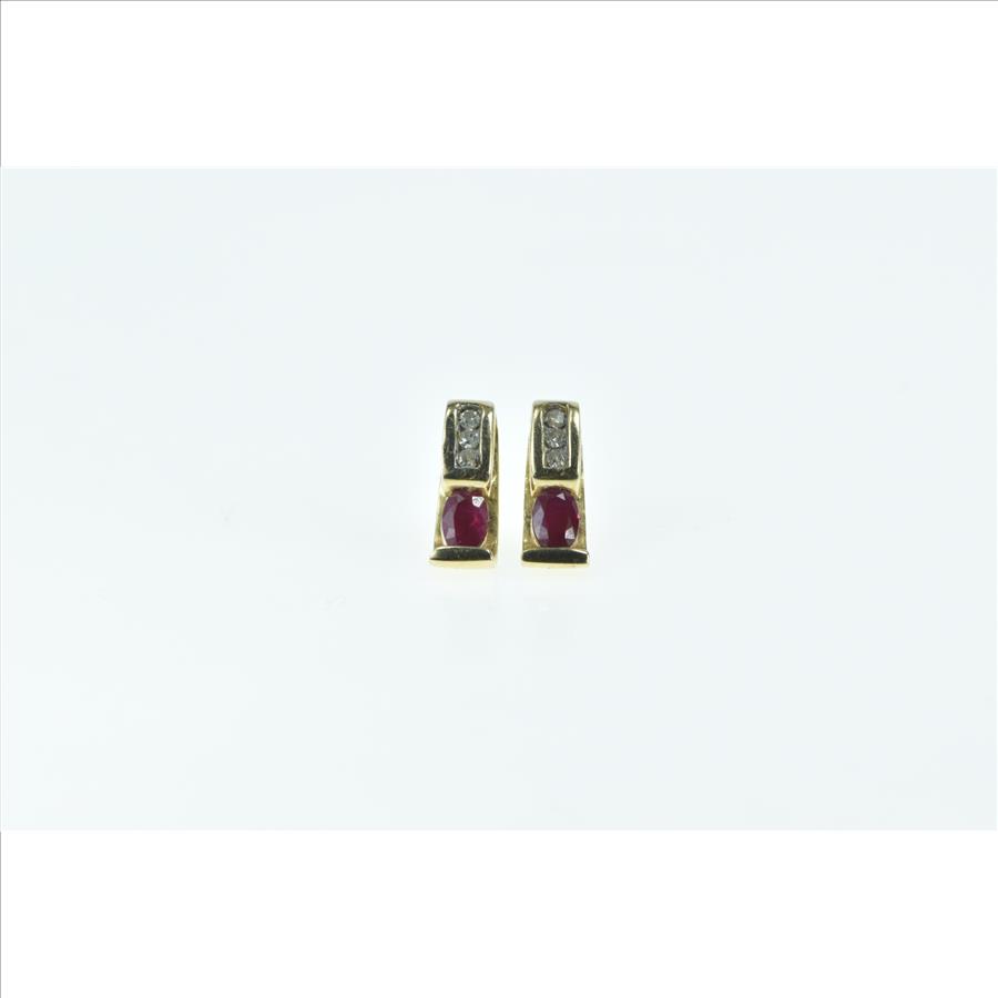 Item:  14K Oval Ruby Diamond Vintage Statement Stud Yellow Gold Earrings