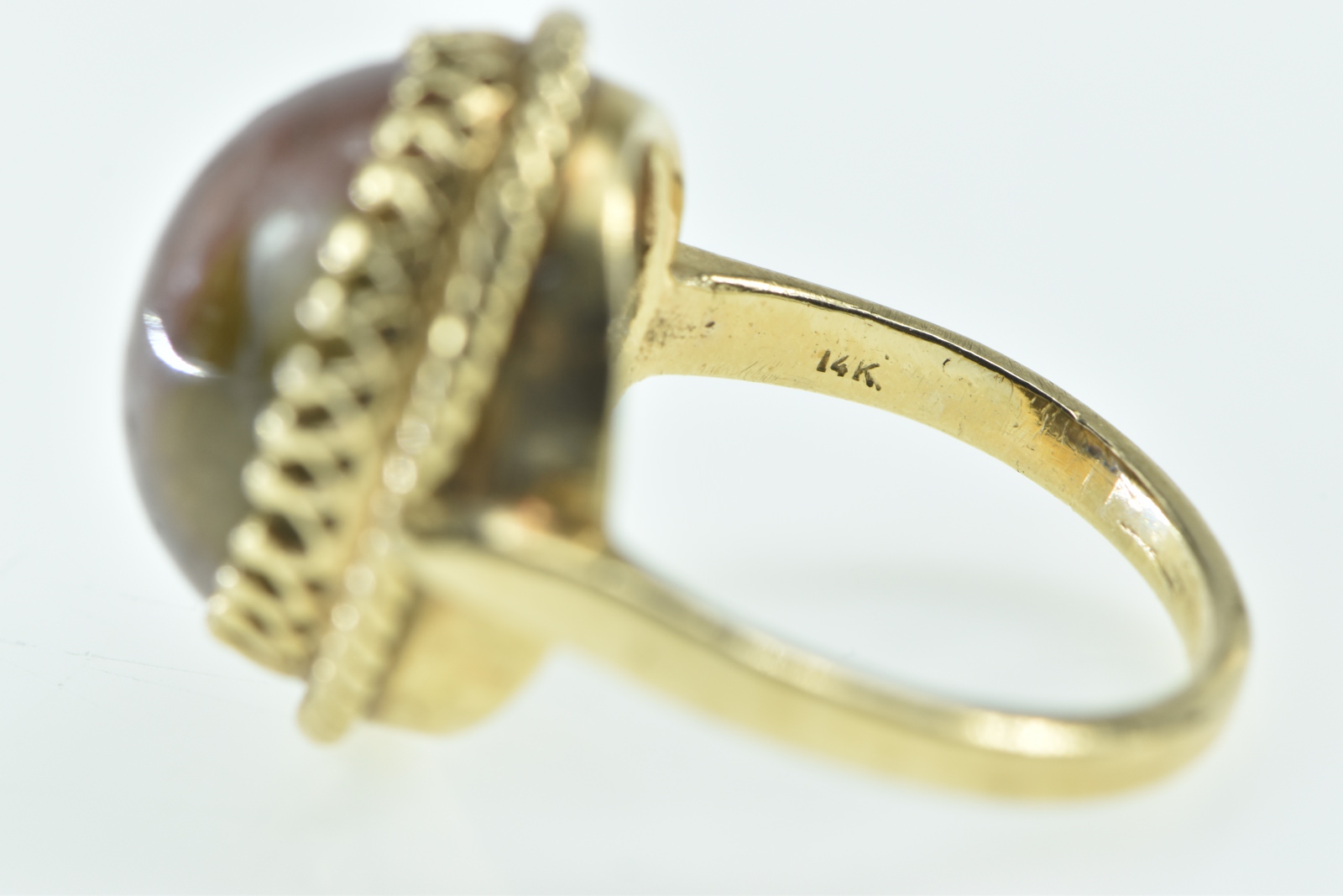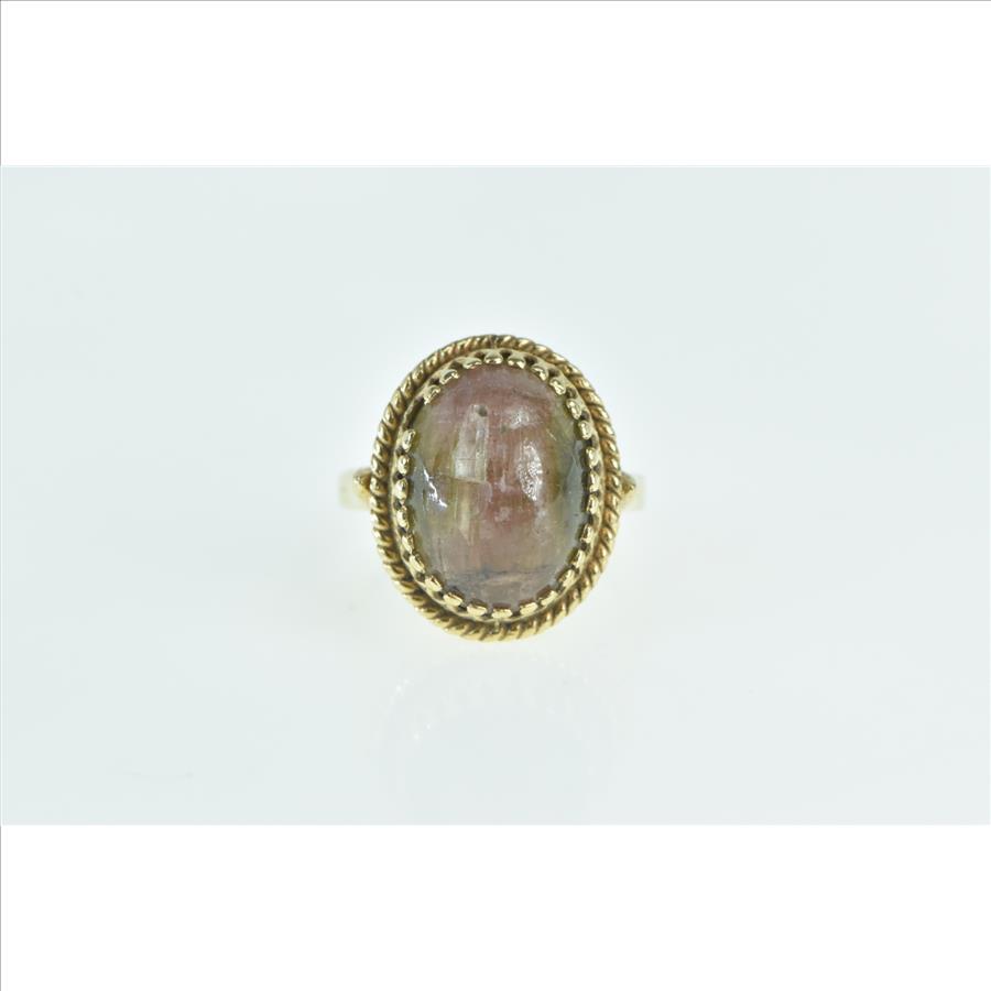 14K Oval Watermelon Tourmaline Cabochon Yellow Gold Ring, Size 7