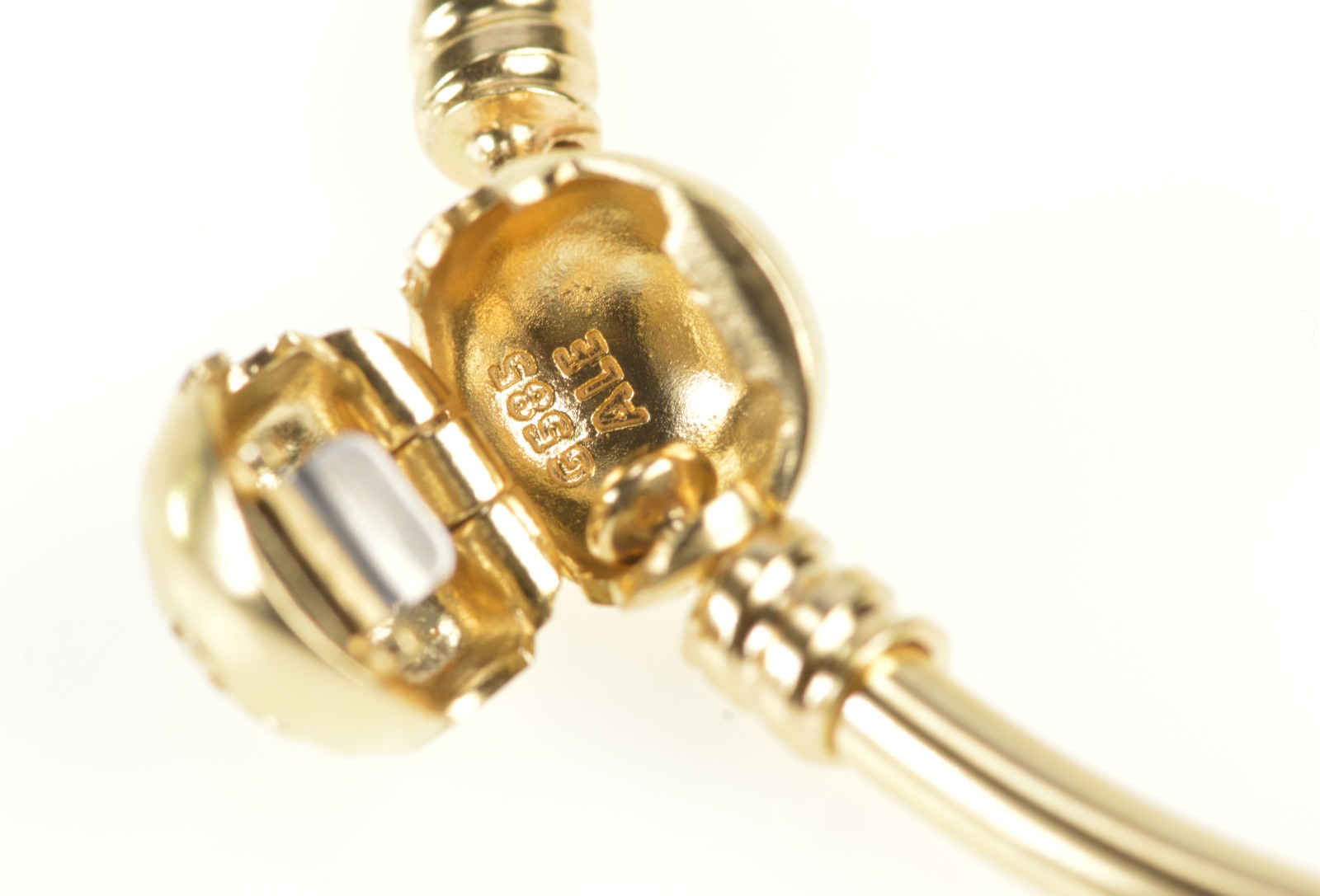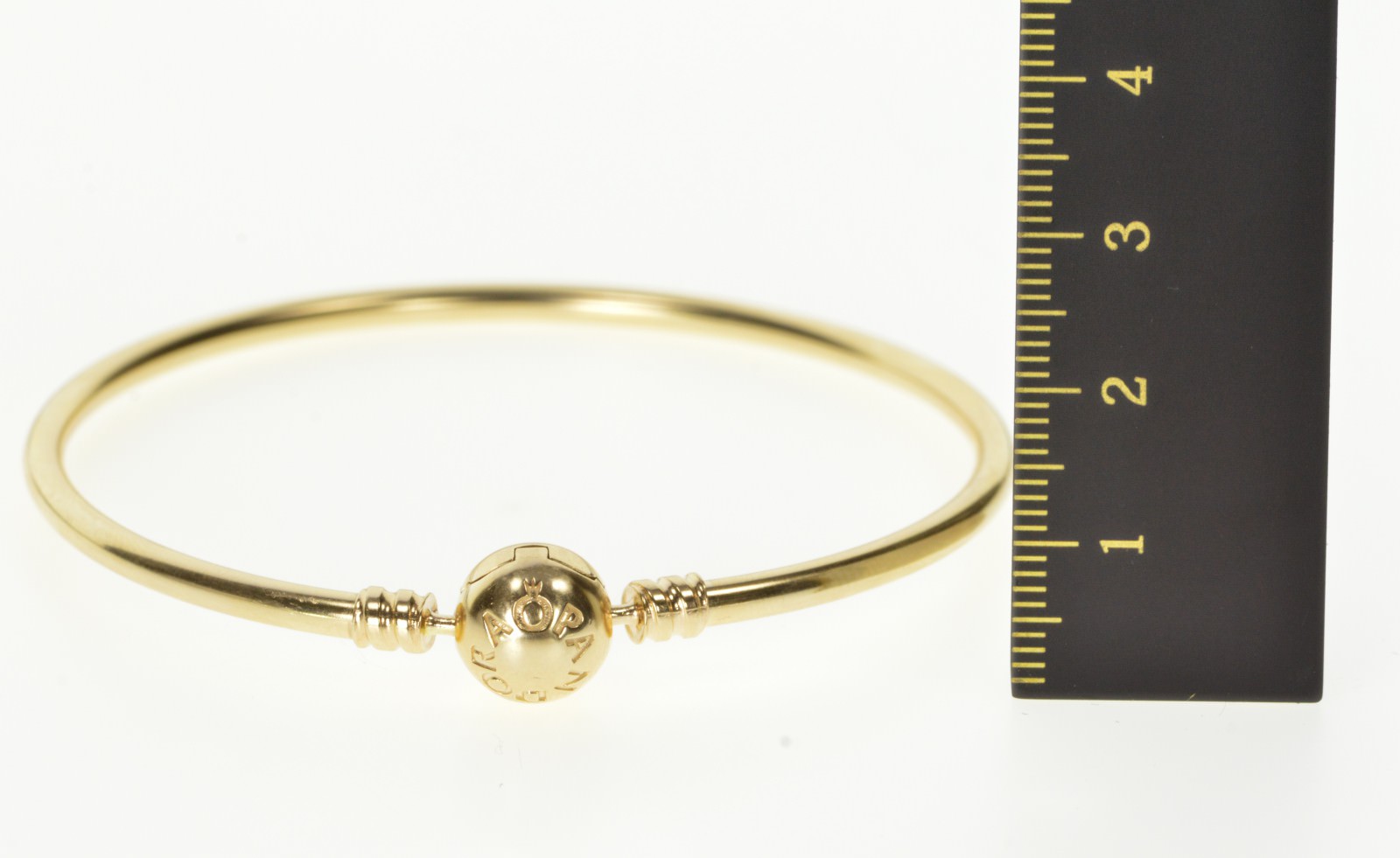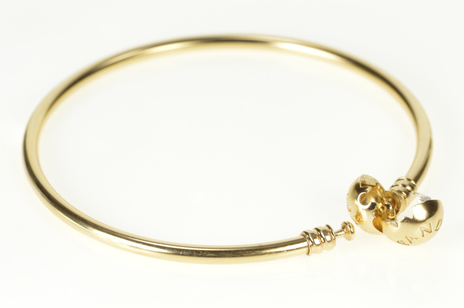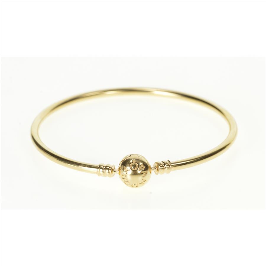Item:  14K Pandora Signature Clasp Charm Bangle Yellow Gold Bracelet 8"