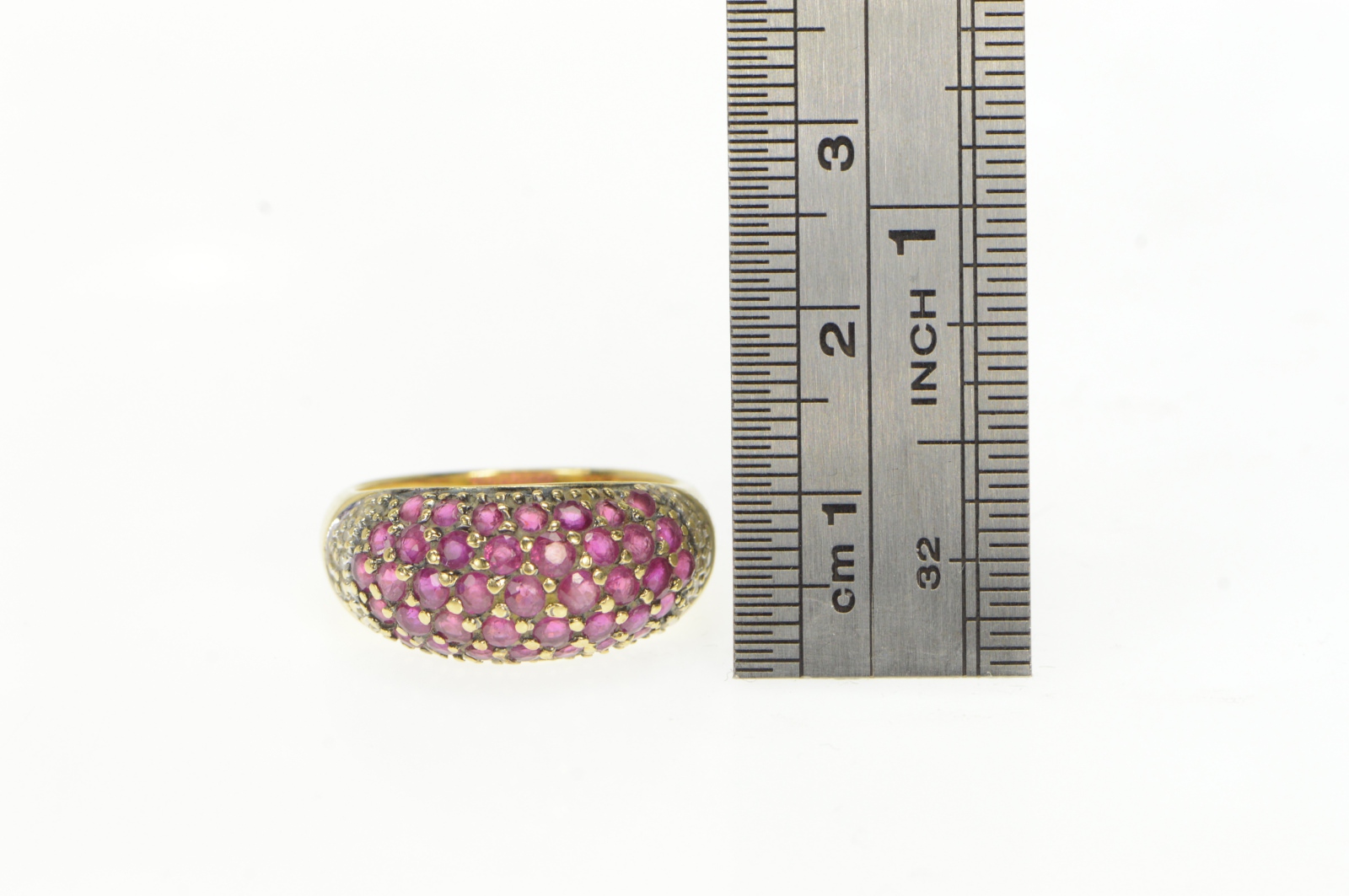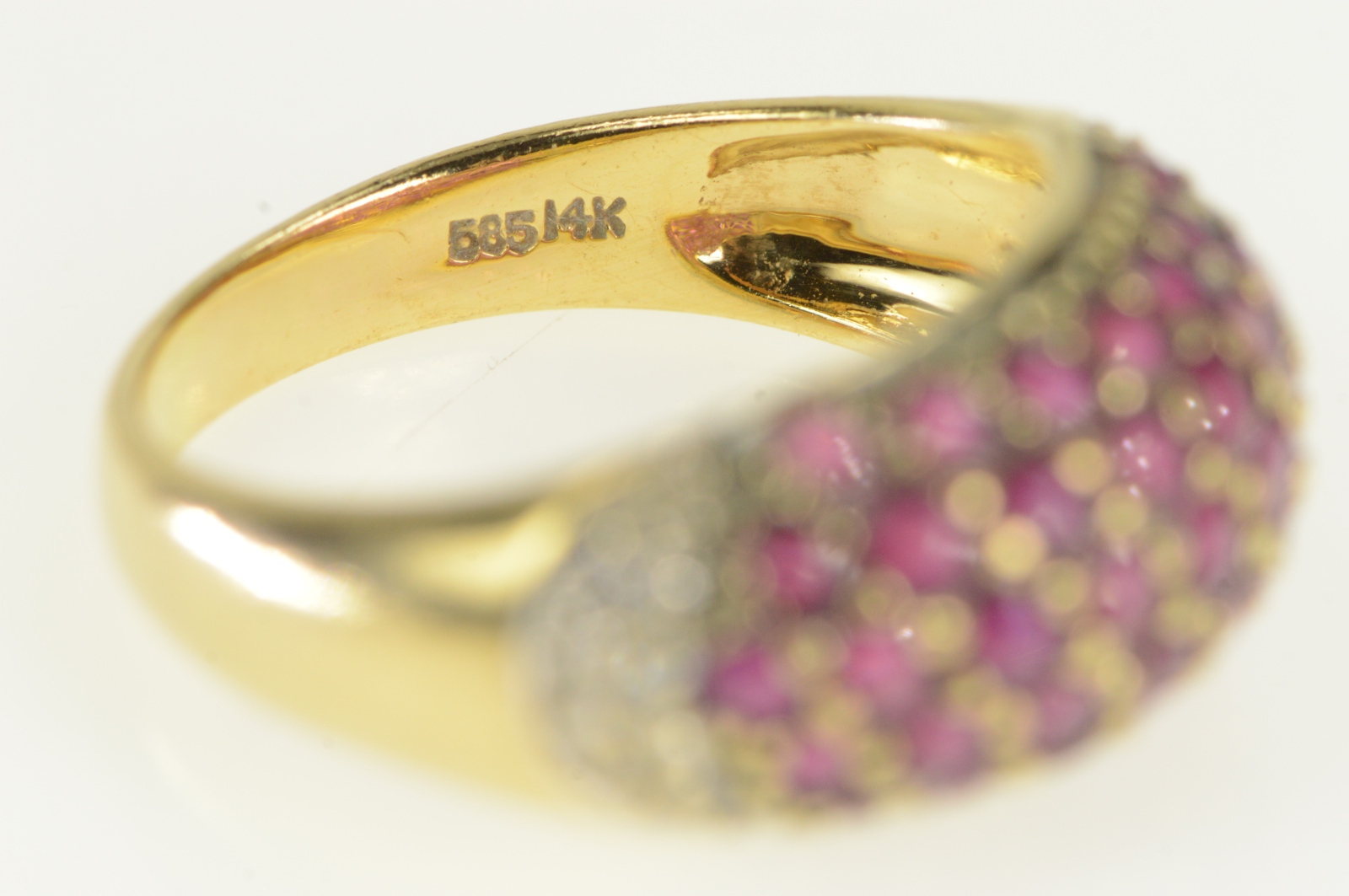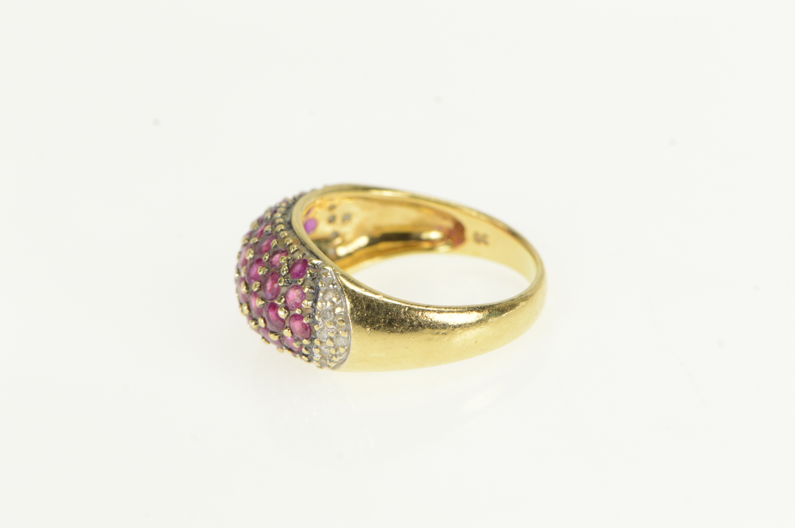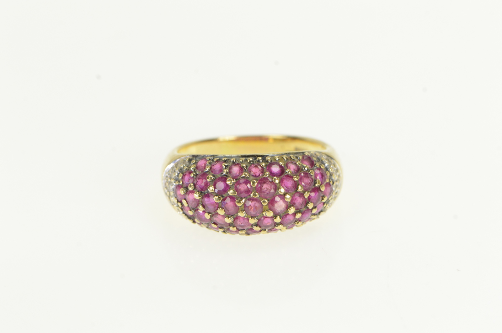 14K Pave Ruby Encrusted Diamond Accent Domed Yellow Gold Ring, Size 7.25