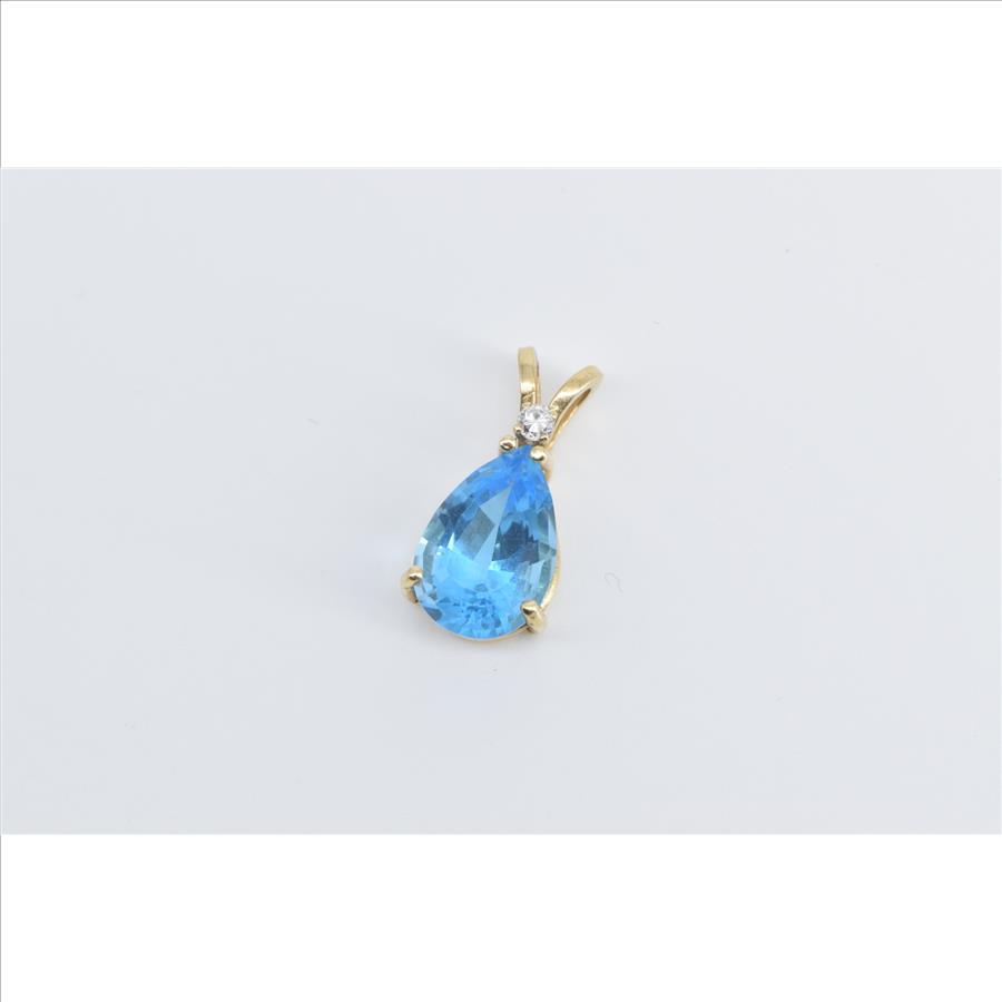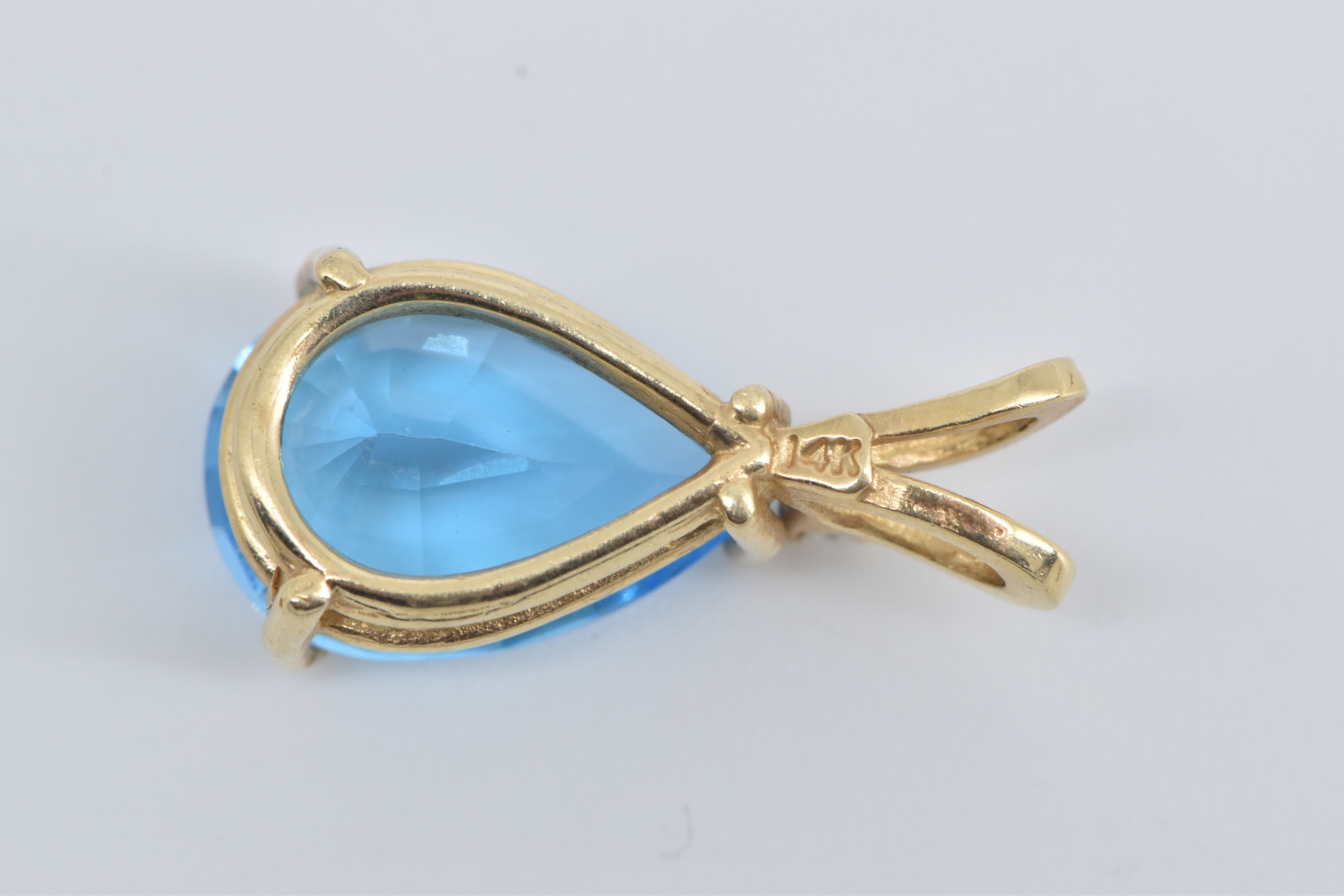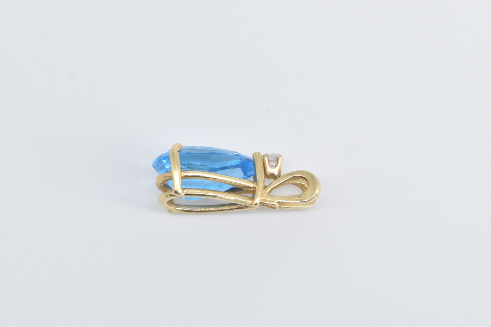 Item:  14K Pear Blue Topaz Diamond Accent Statement Yellow Gold Pendant