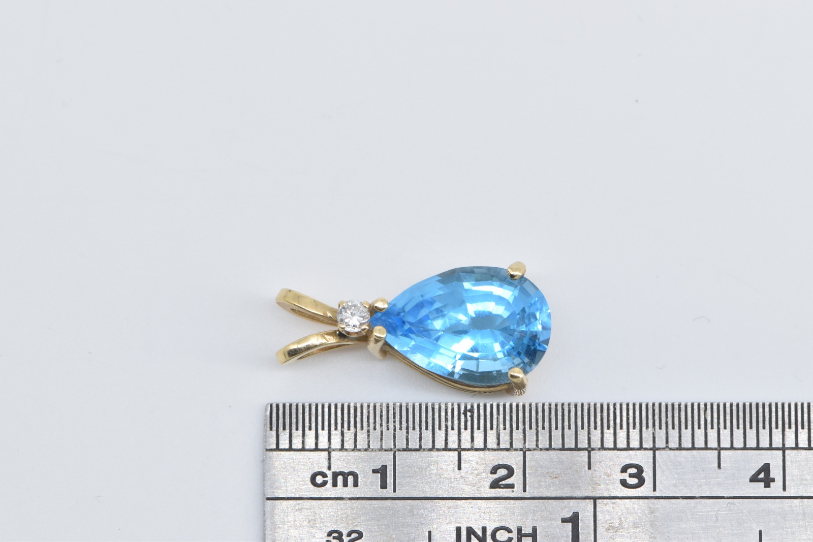 14K Pear Blue Topaz Diamond Accent Statement Yellow Gold Pendant