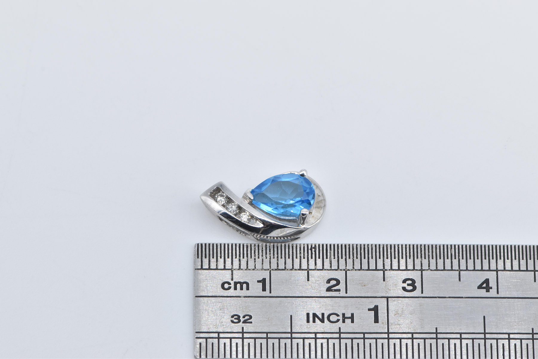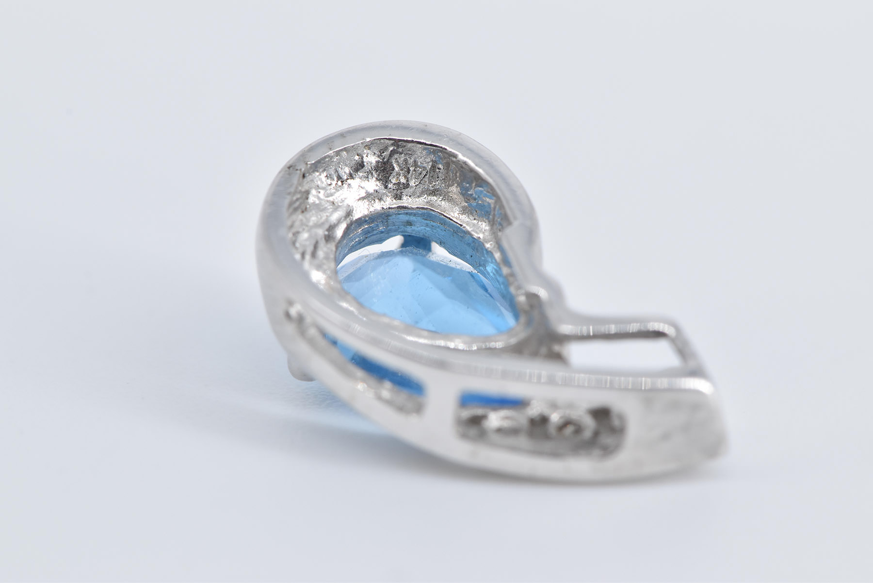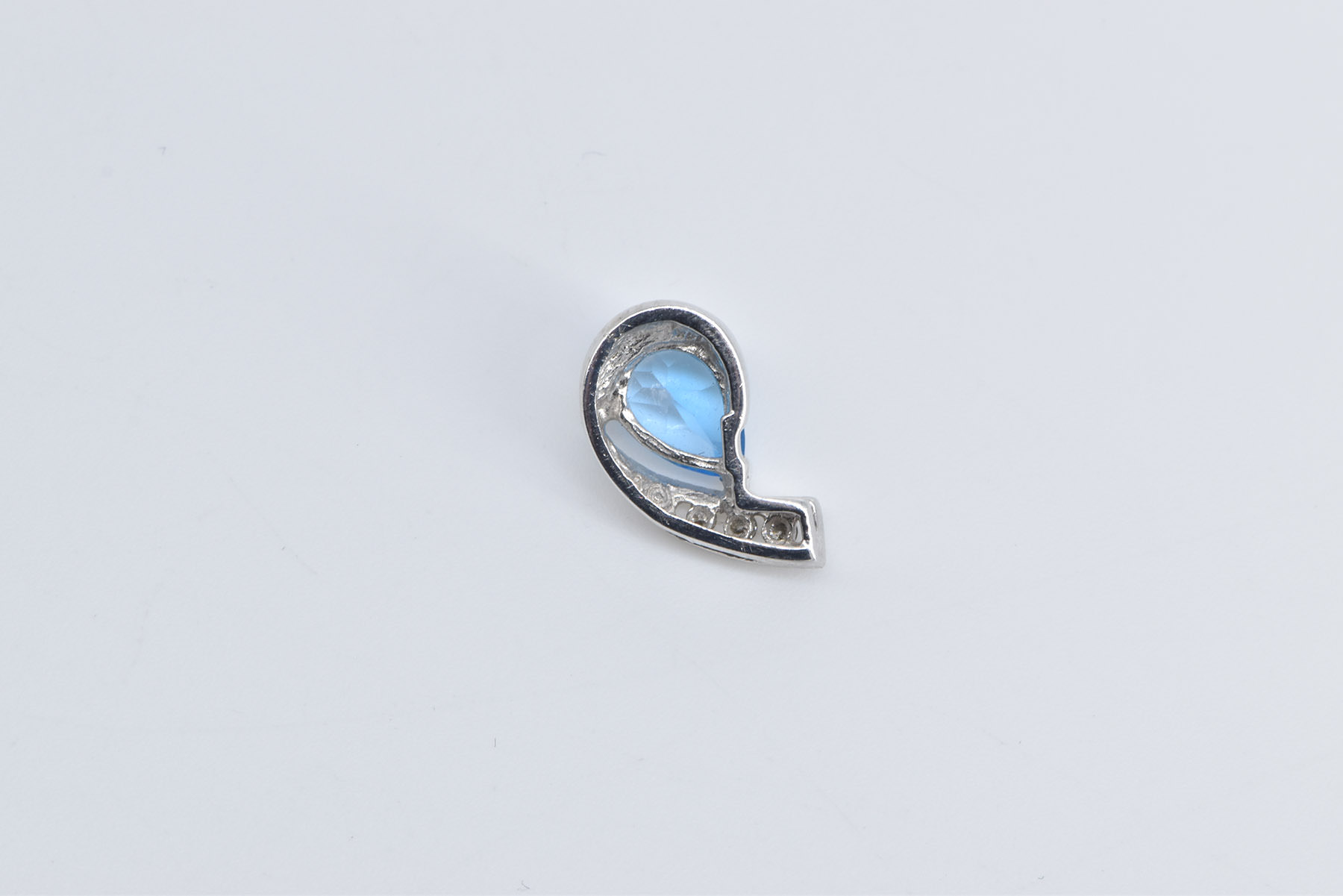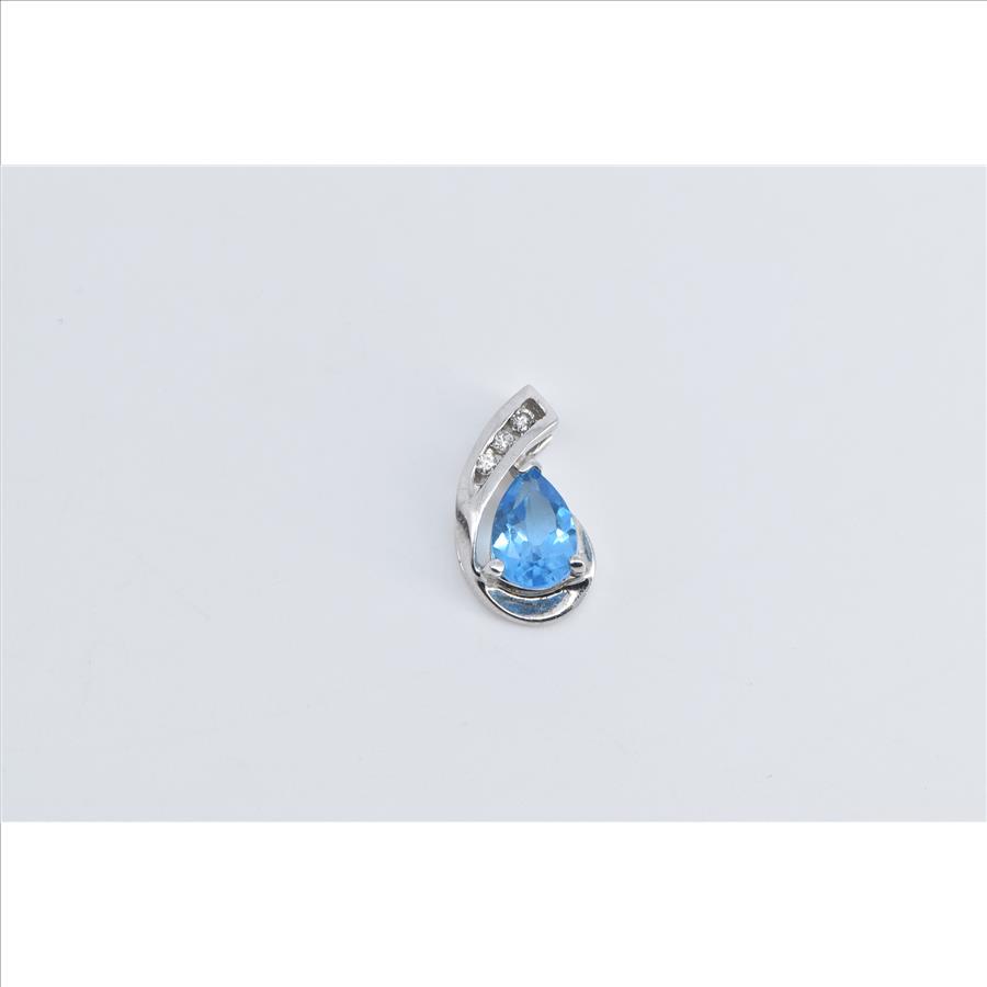 Item:  14K Pear Blue Topaz Diamond Curved Statement White Gold Pendant