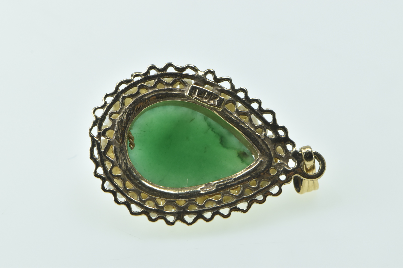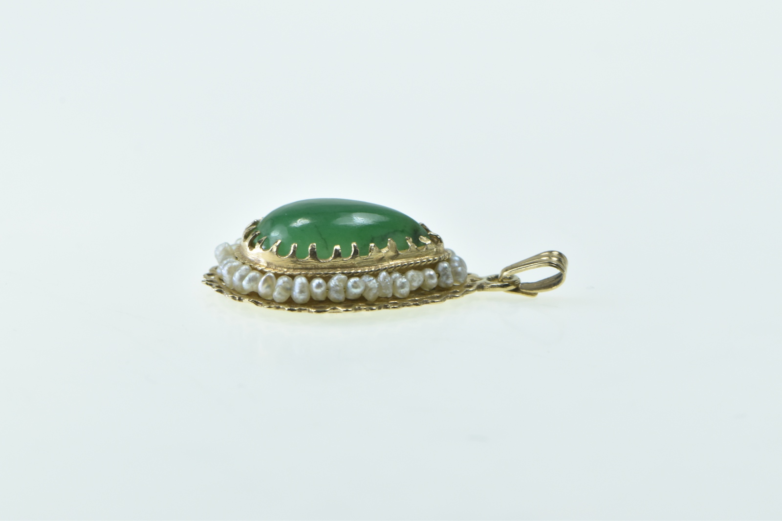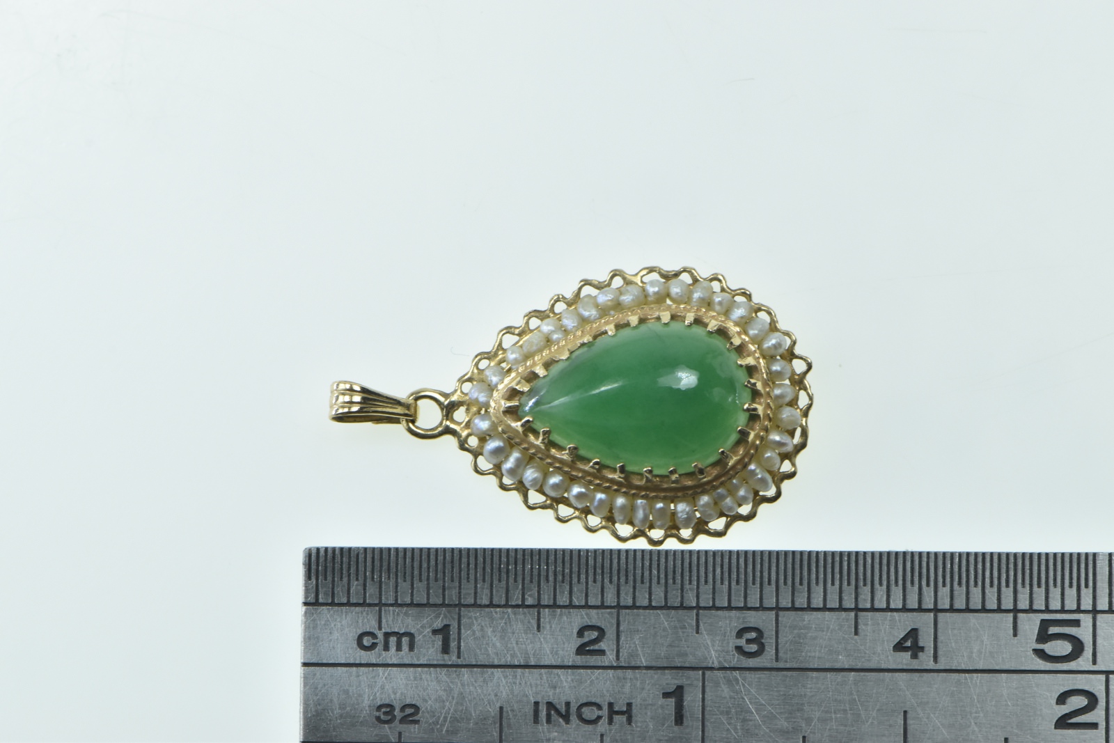 14K Pear Green Agate Seed Pearl Trim Statement Yellow Gold Pendant