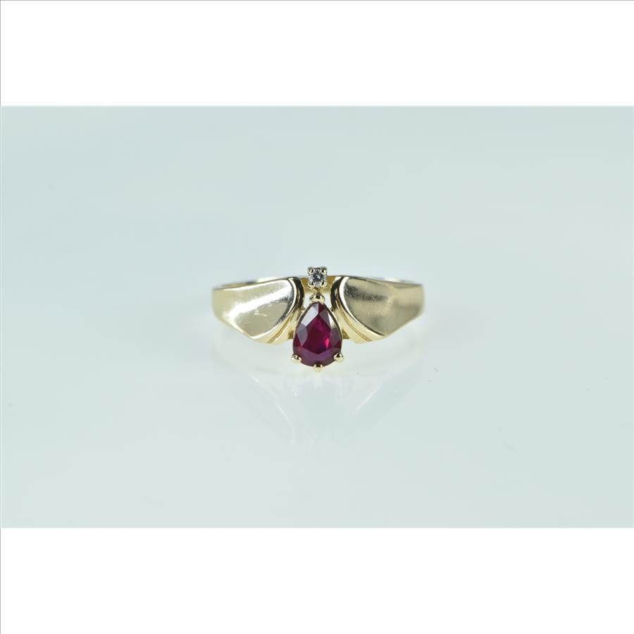 Item:  14K Pear Ruby Diamond Accent Vintage Chevron Yellow Gold Ring, Size 11.25