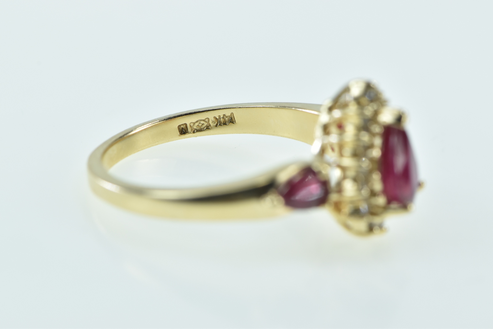 14K Pear Ruby Diamond Halo Engagement Yellow Gold Ring, Size 7