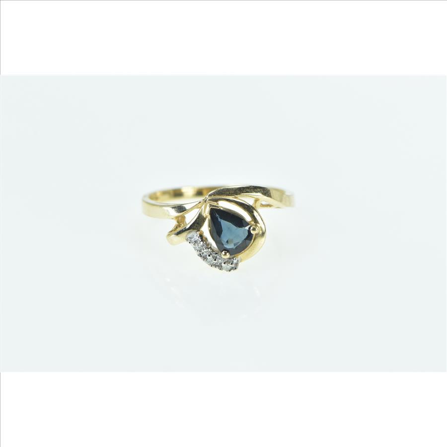 Item:  14K Pear Sapphire Diamond Vintage Curvy Fashion Yellow Gold Ring, Size 7