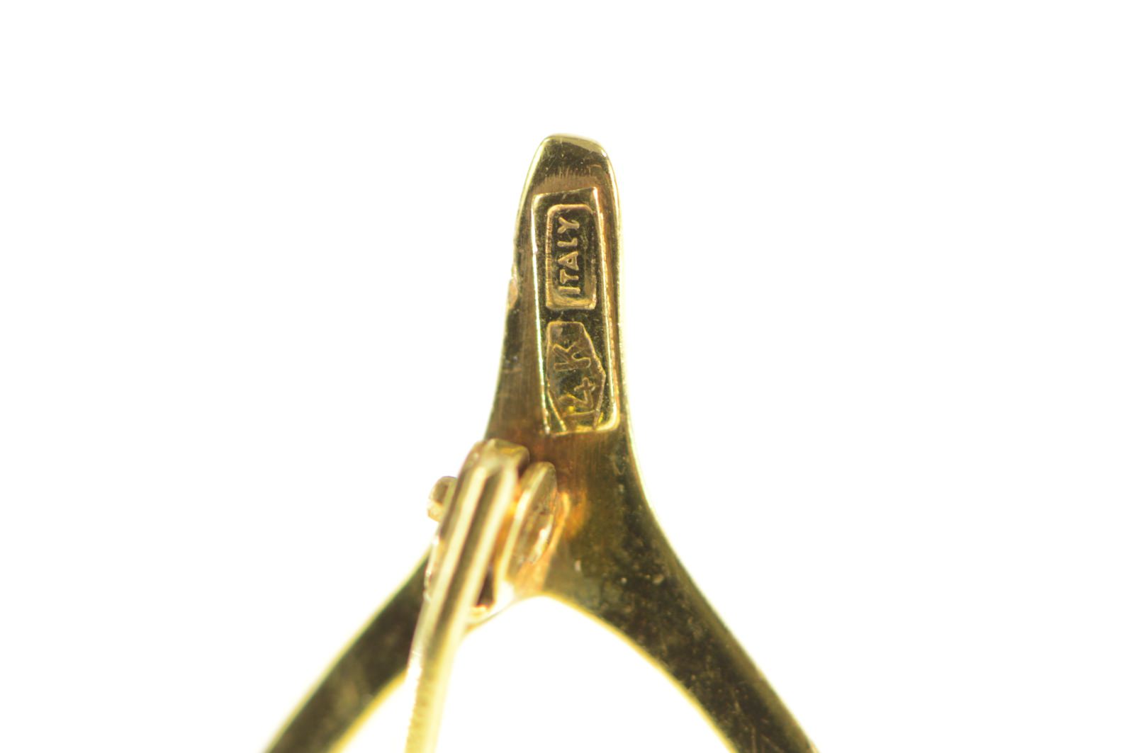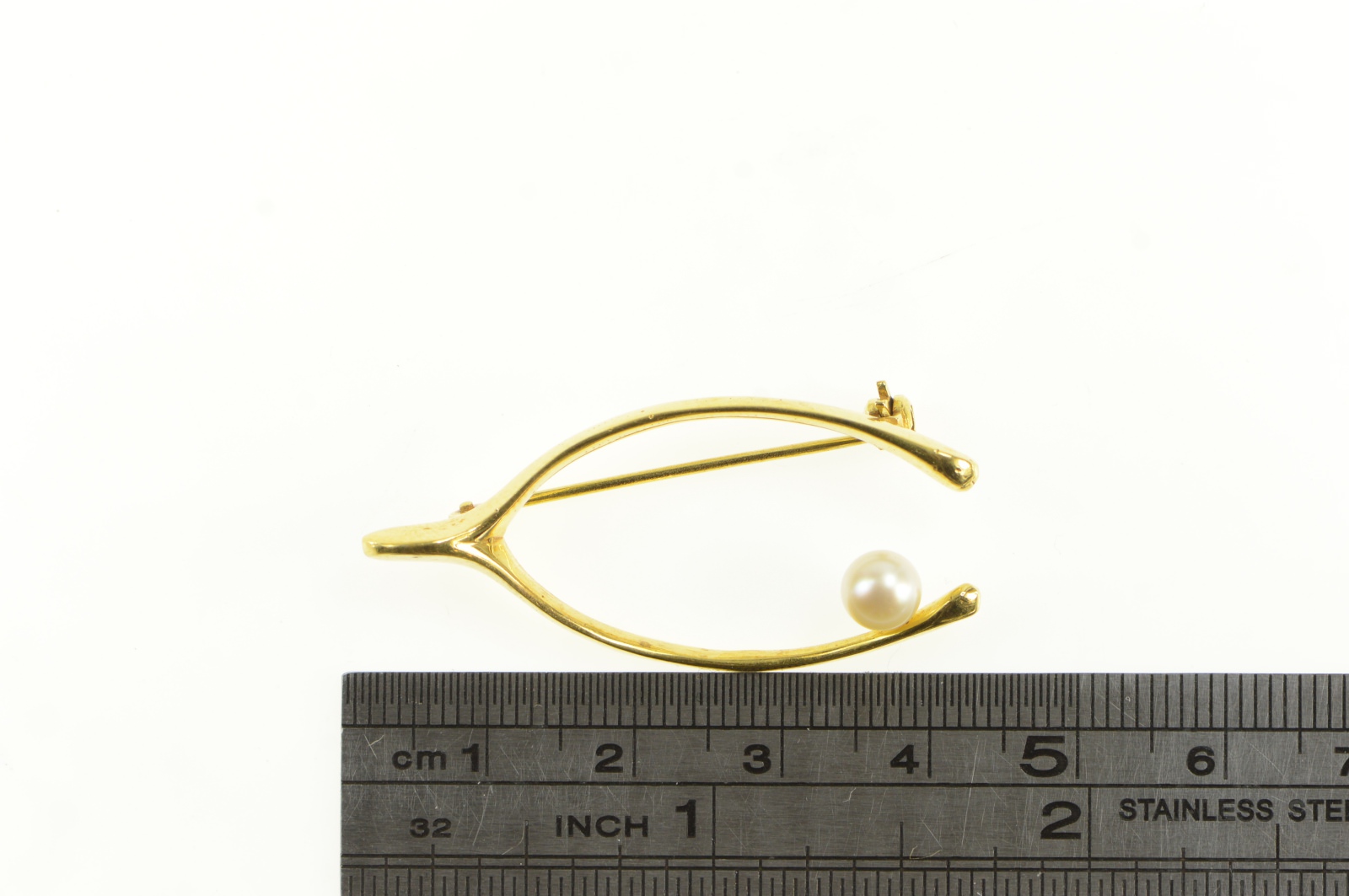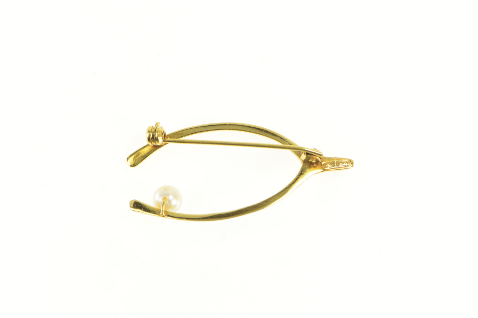 Item:  14K Pearl Accent Wish Bone Good Luck Hope Yellow Gold Pin/Brooch