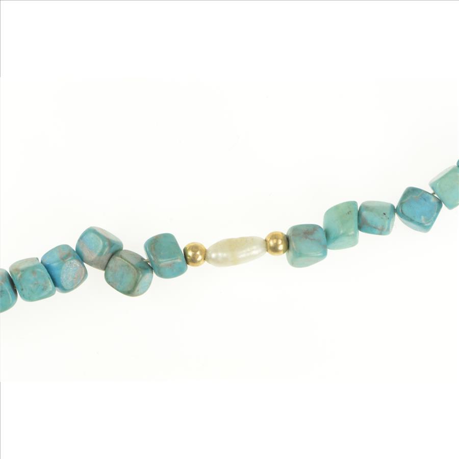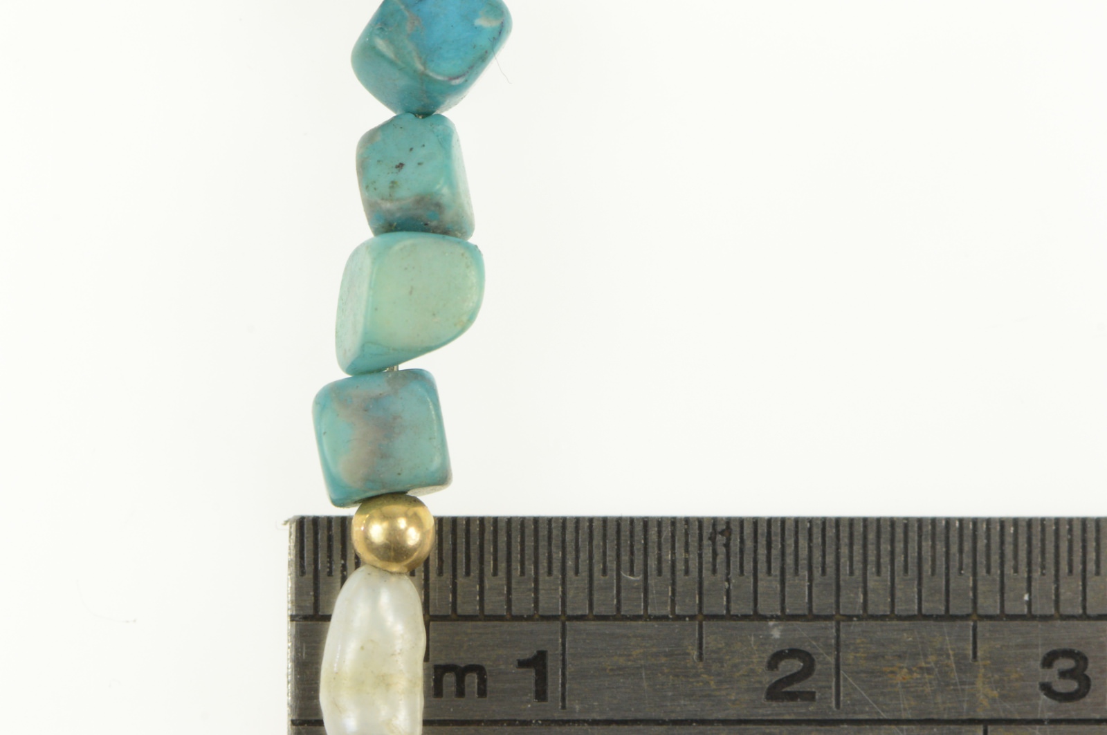 Item:  14K Pearl Square Turquoise Beaded Statement Yellow Gold Bracelet 6.5"