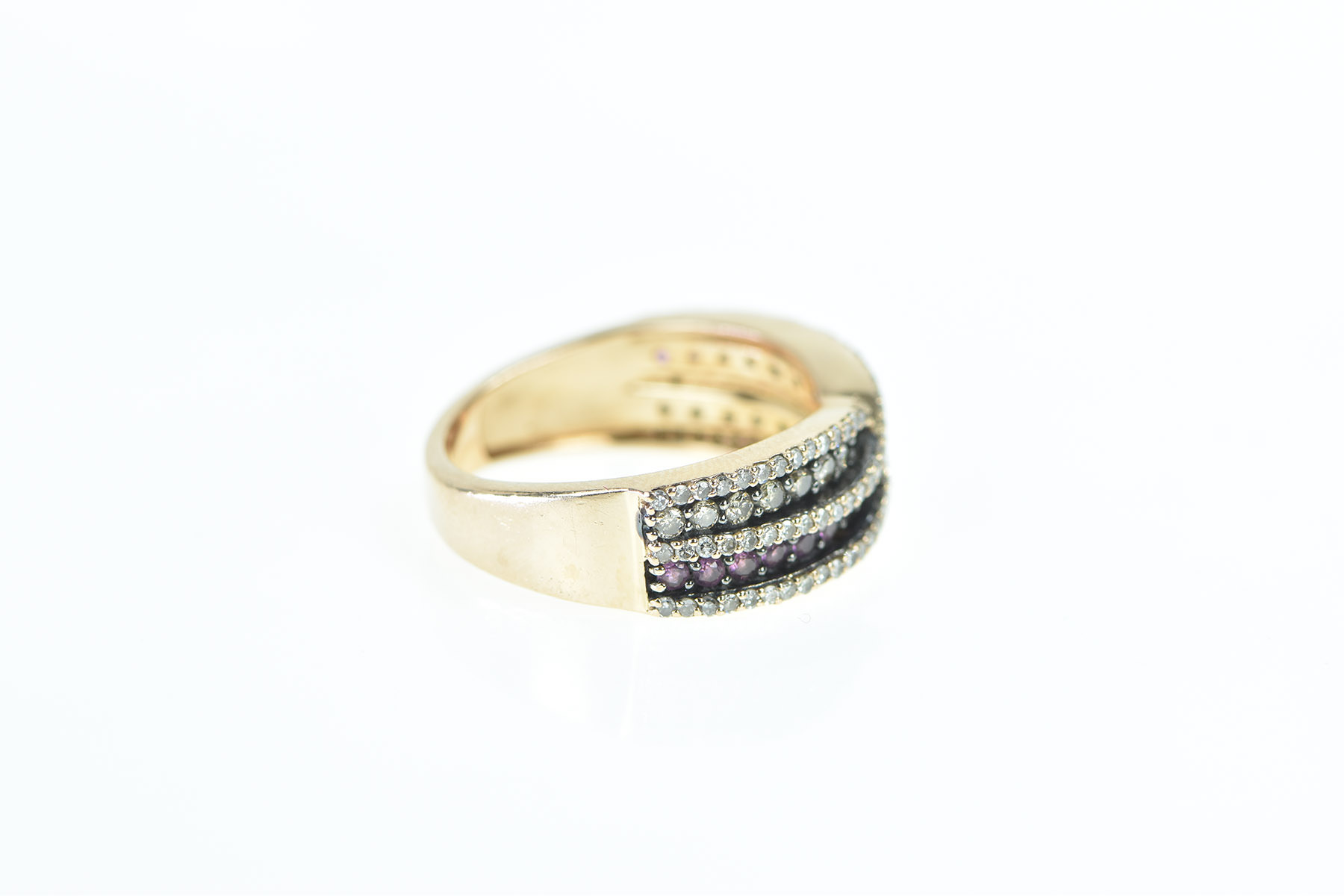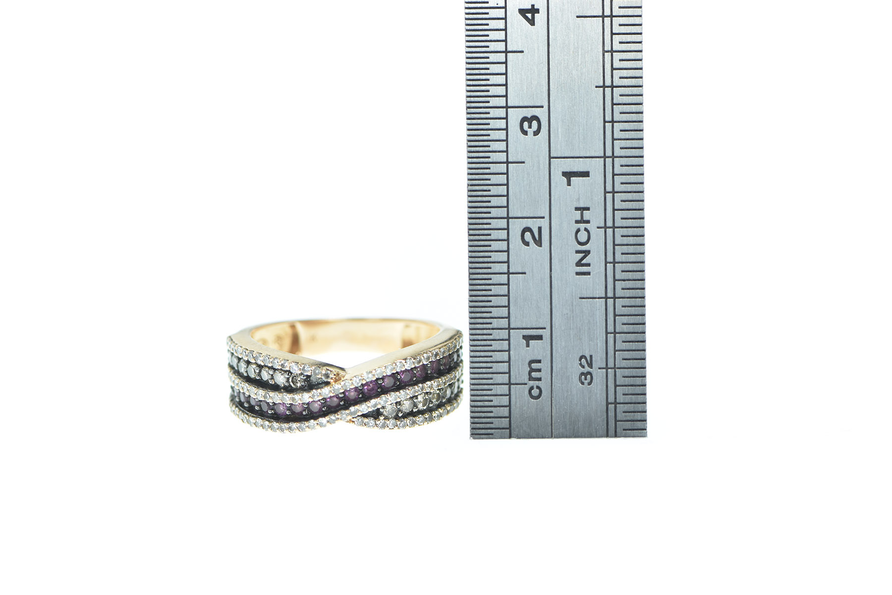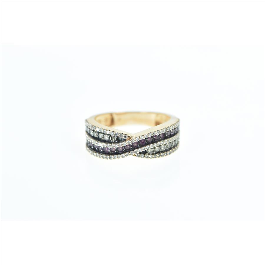 Item:  14K Pink Sapphire Pave Diamond Wavy Band Rose Gold Ring, Size 7