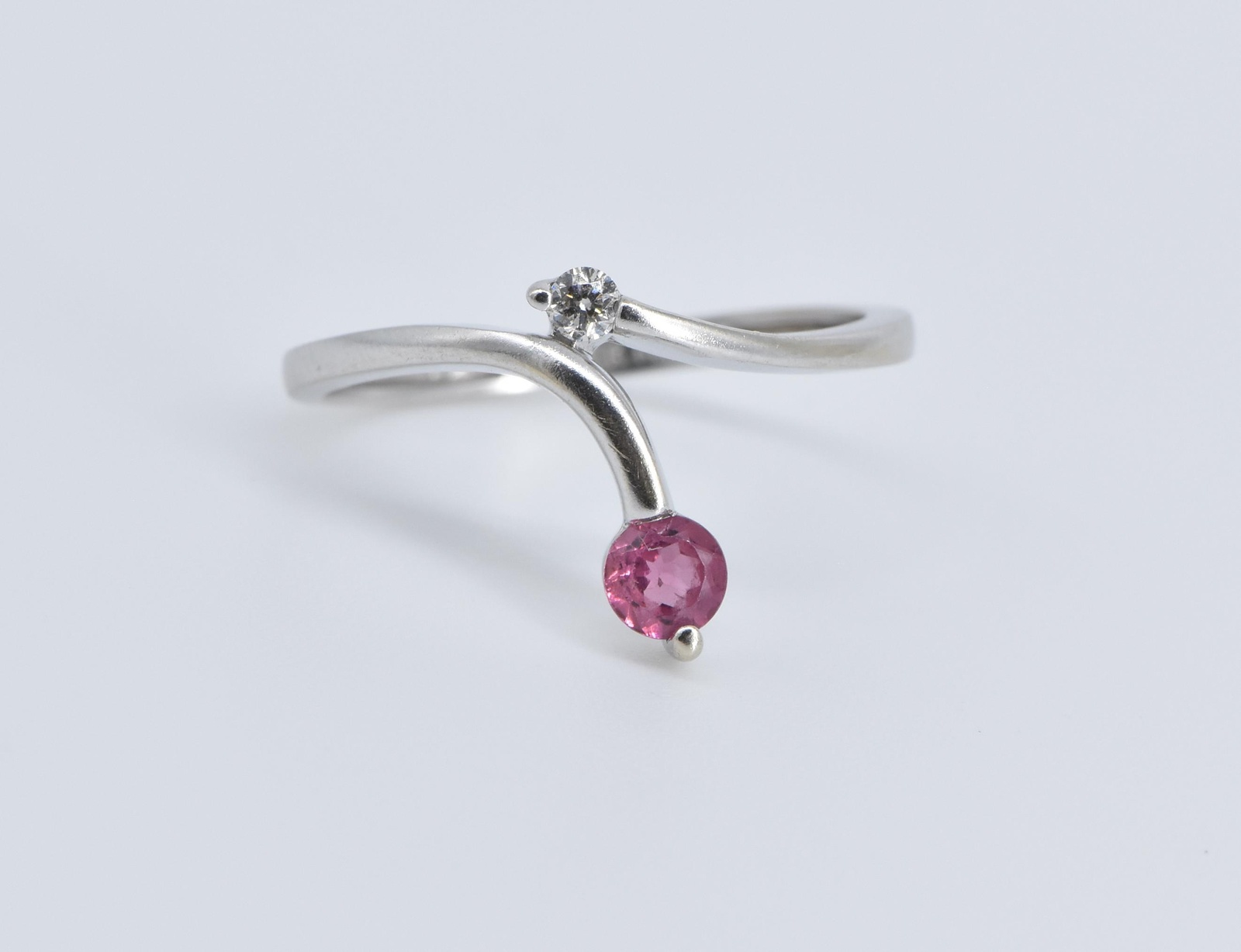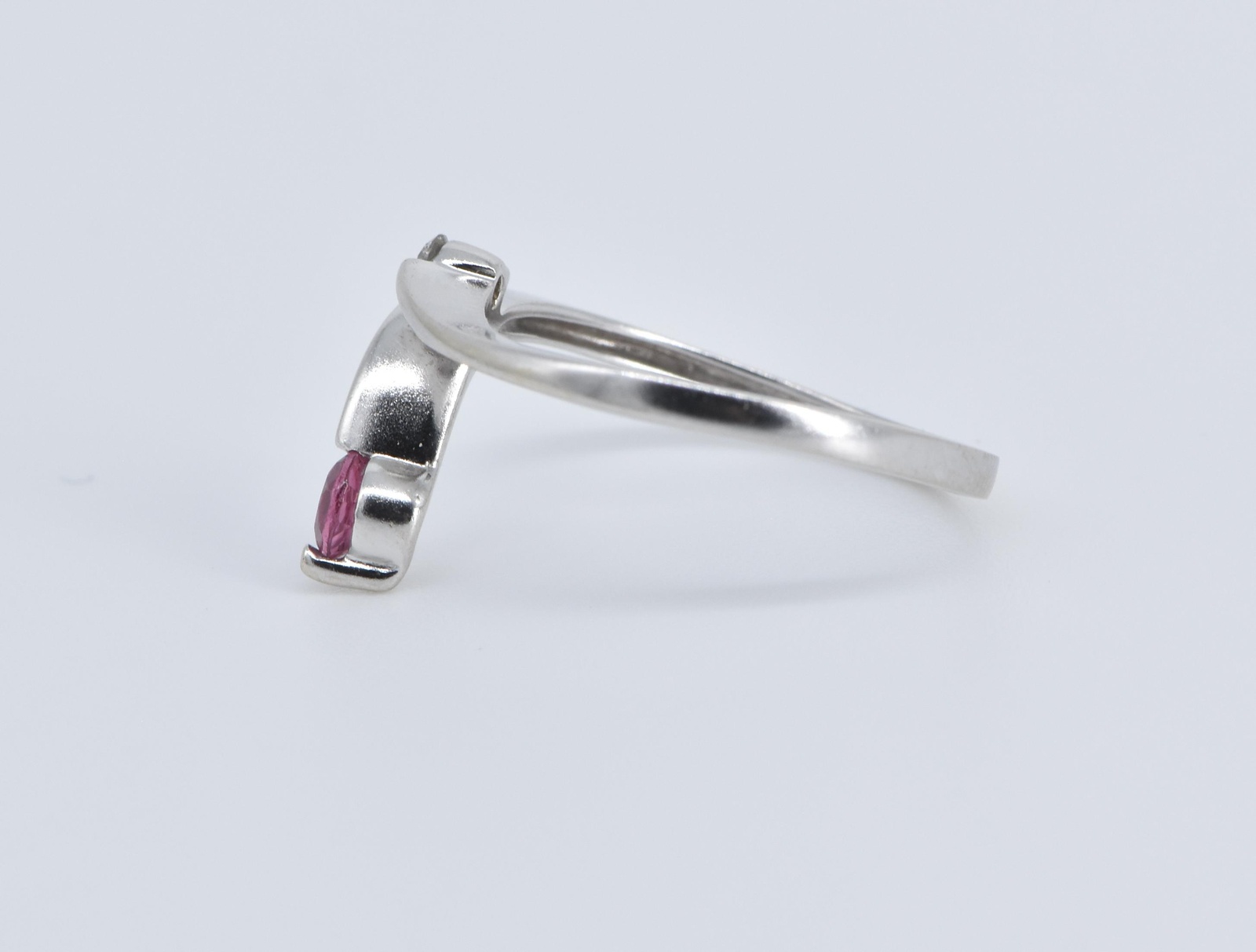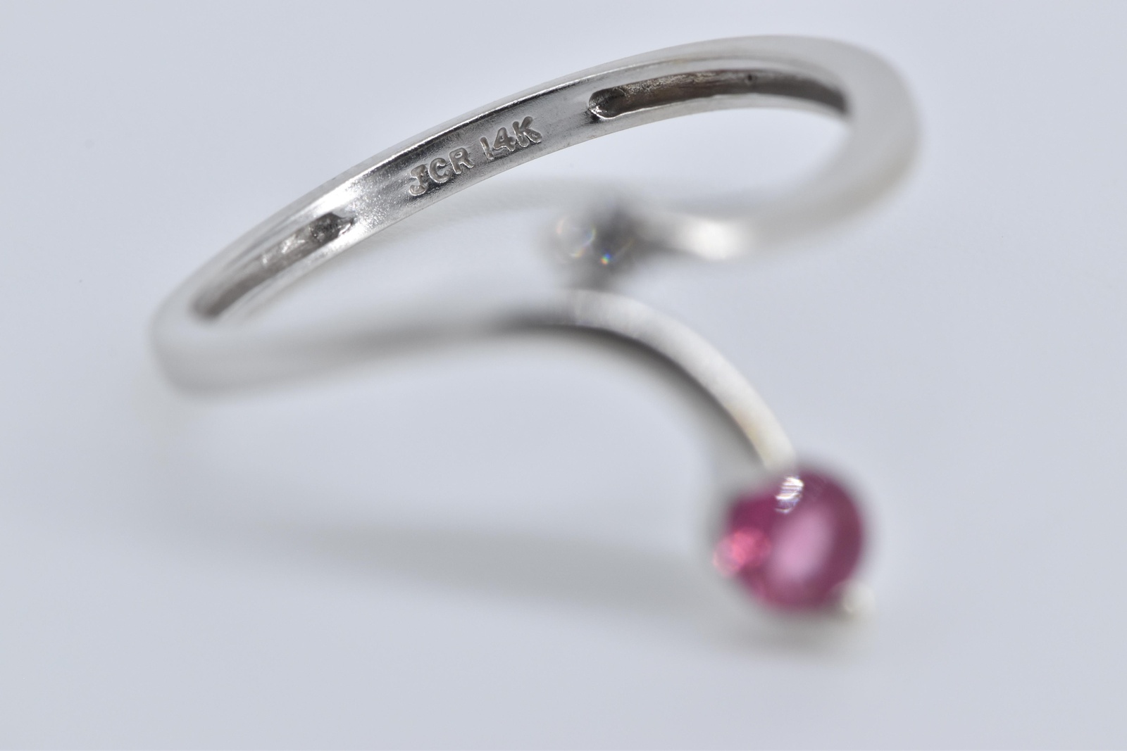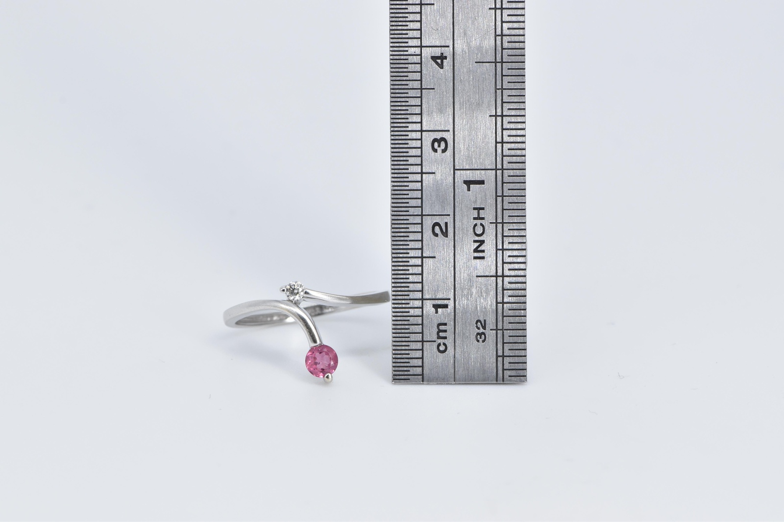 14K Pink Topaz Diamond Freeform Wrap Bypass White Gold Ring, Size 7