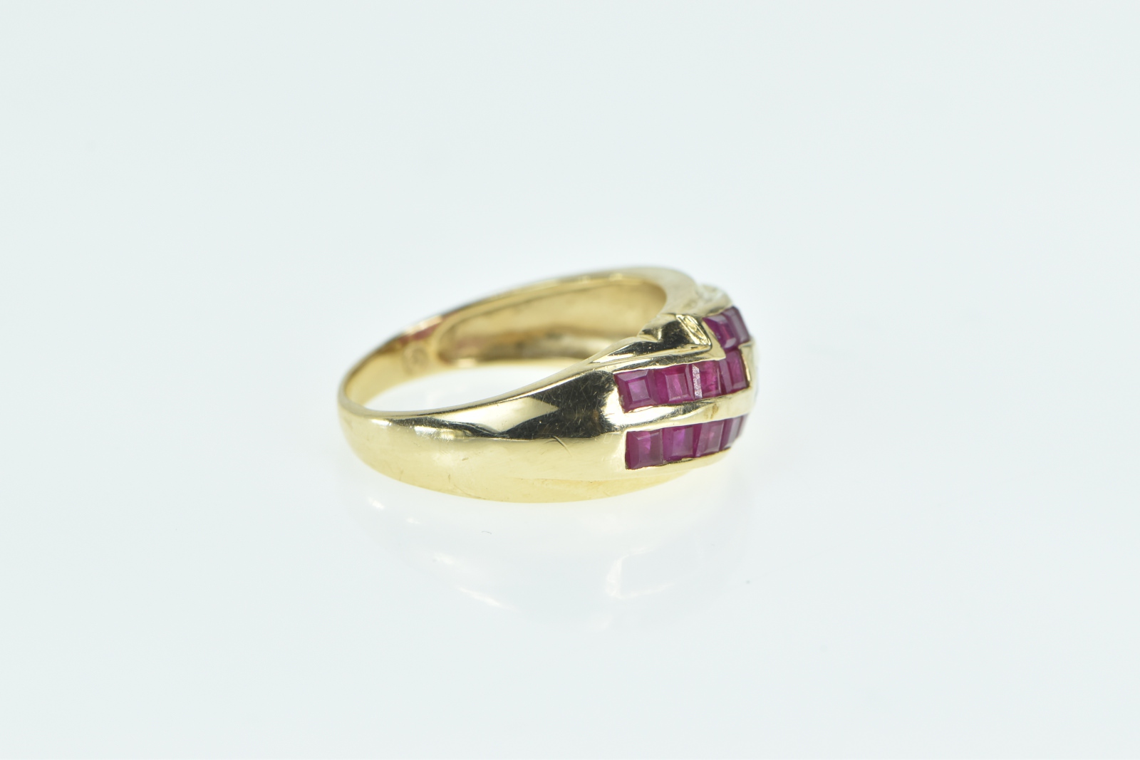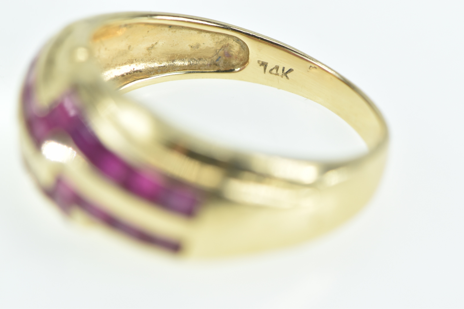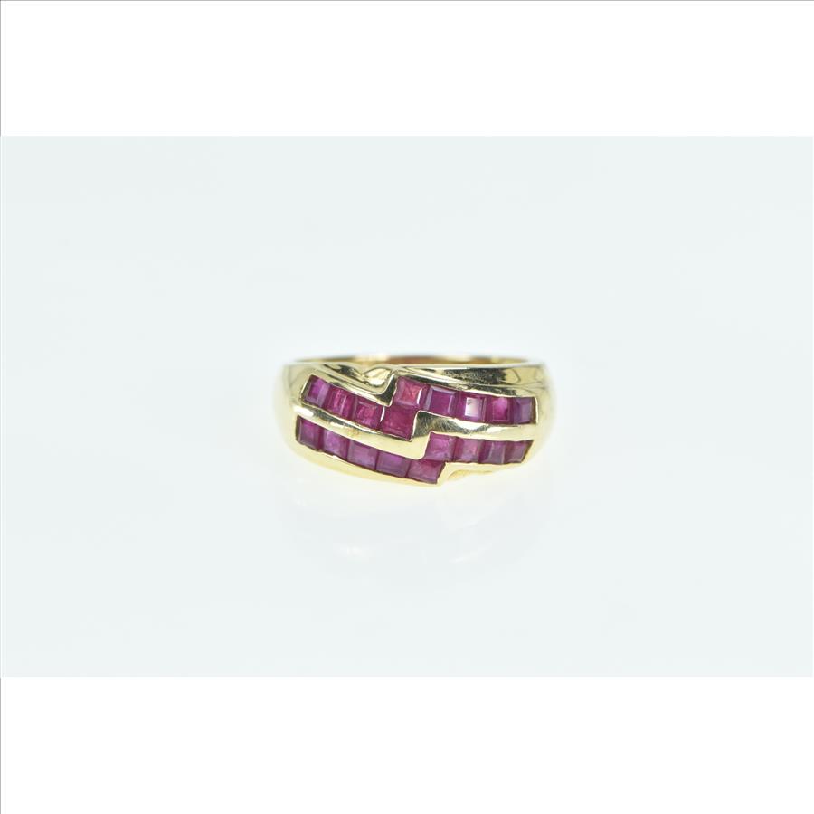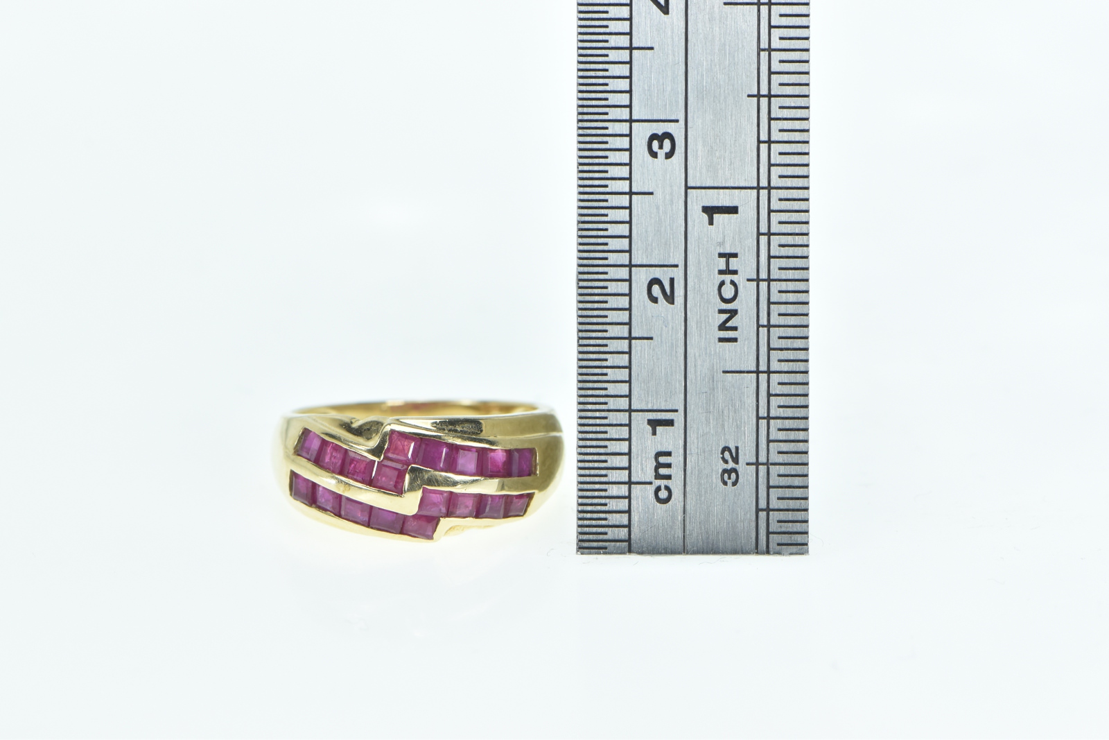 14K Princess Cut Ruby Zig Zag Statement Band Yellow Gold Ring, Size 7