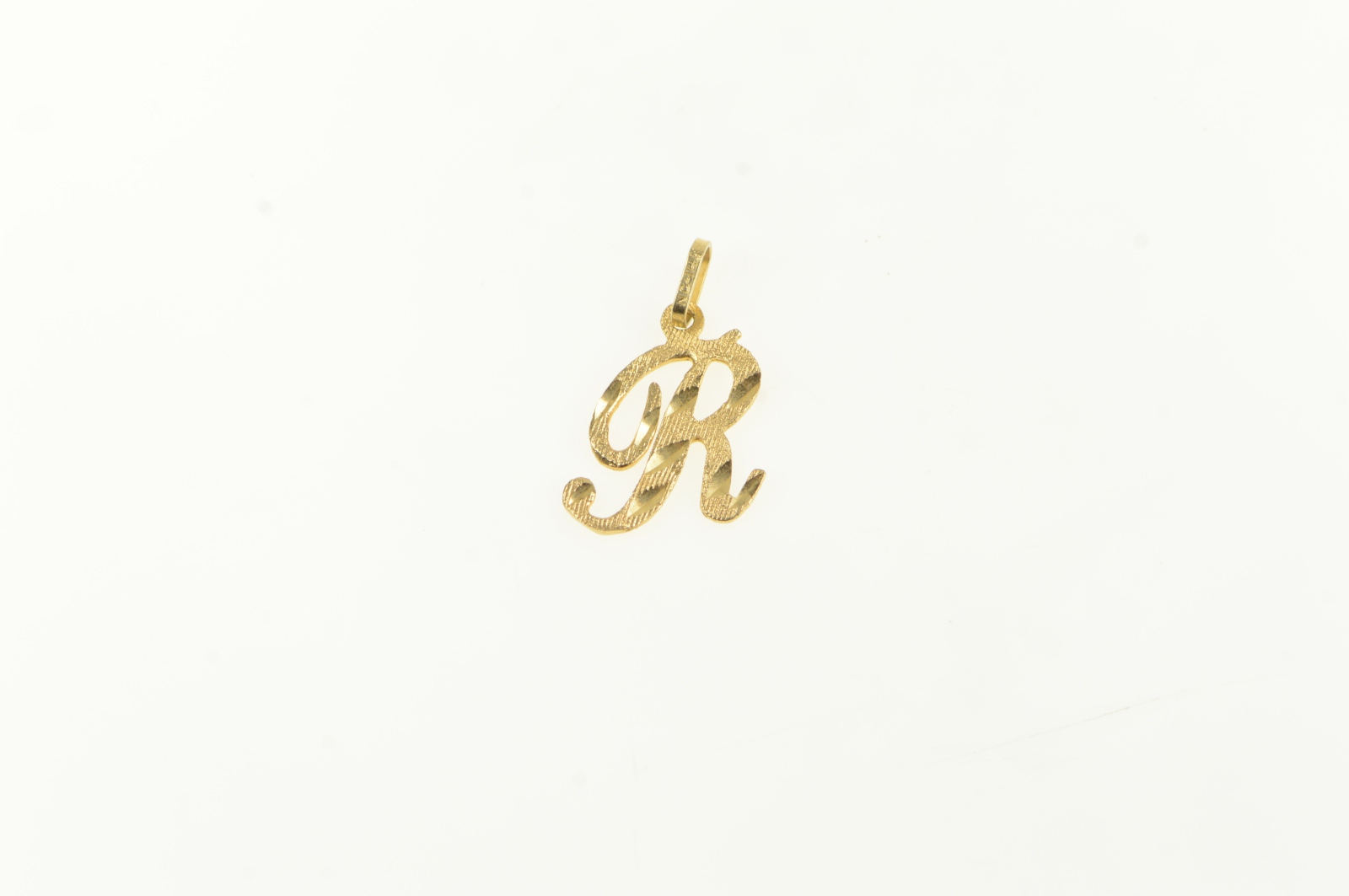 Item:  14K R Diamond Cut Cursive Monogram Name Yellow Gold Charm/Pendant
