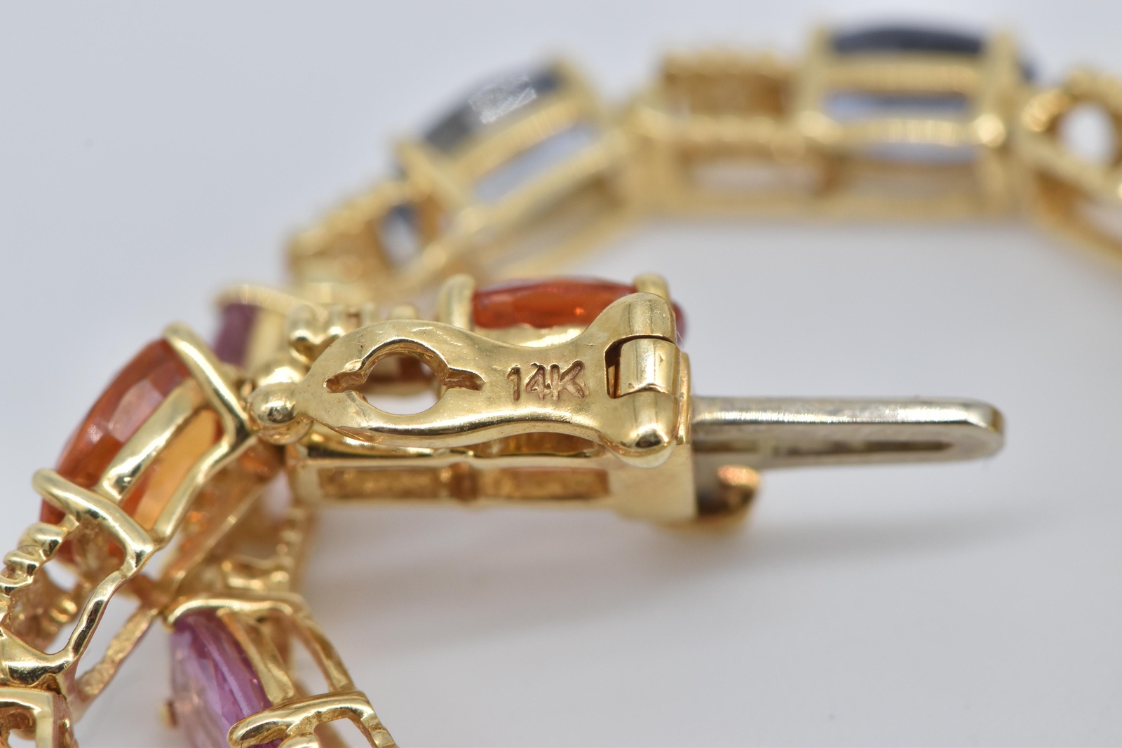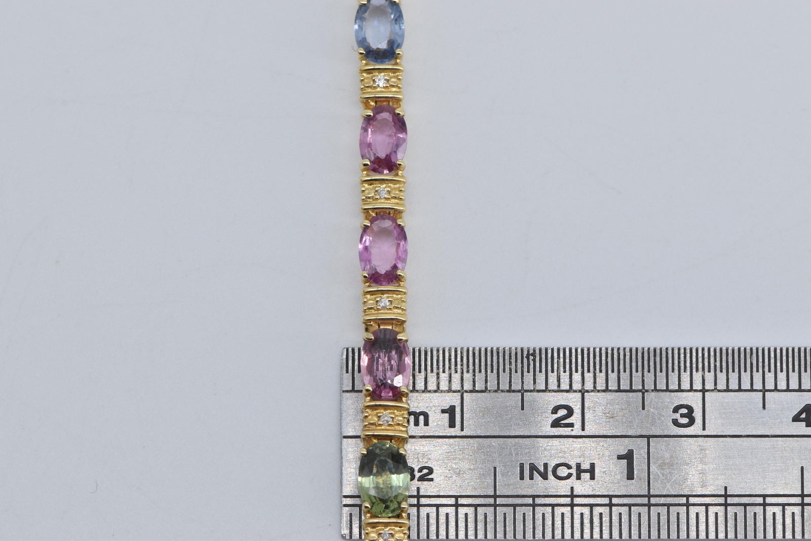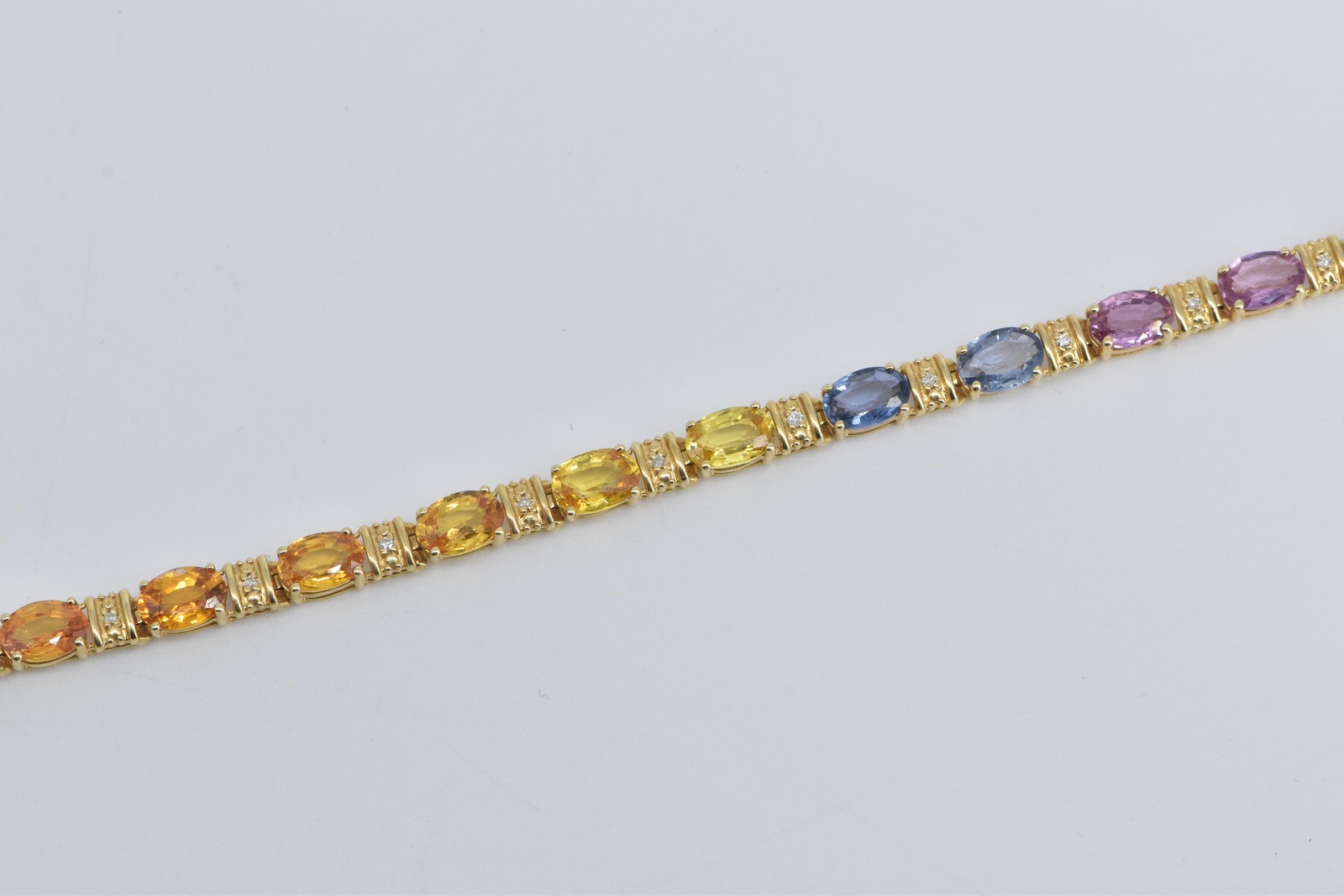 Item:  14K Rainbow Sapphire Diamond Gradient Tennis Yellow Gold Bracelet 7.25"