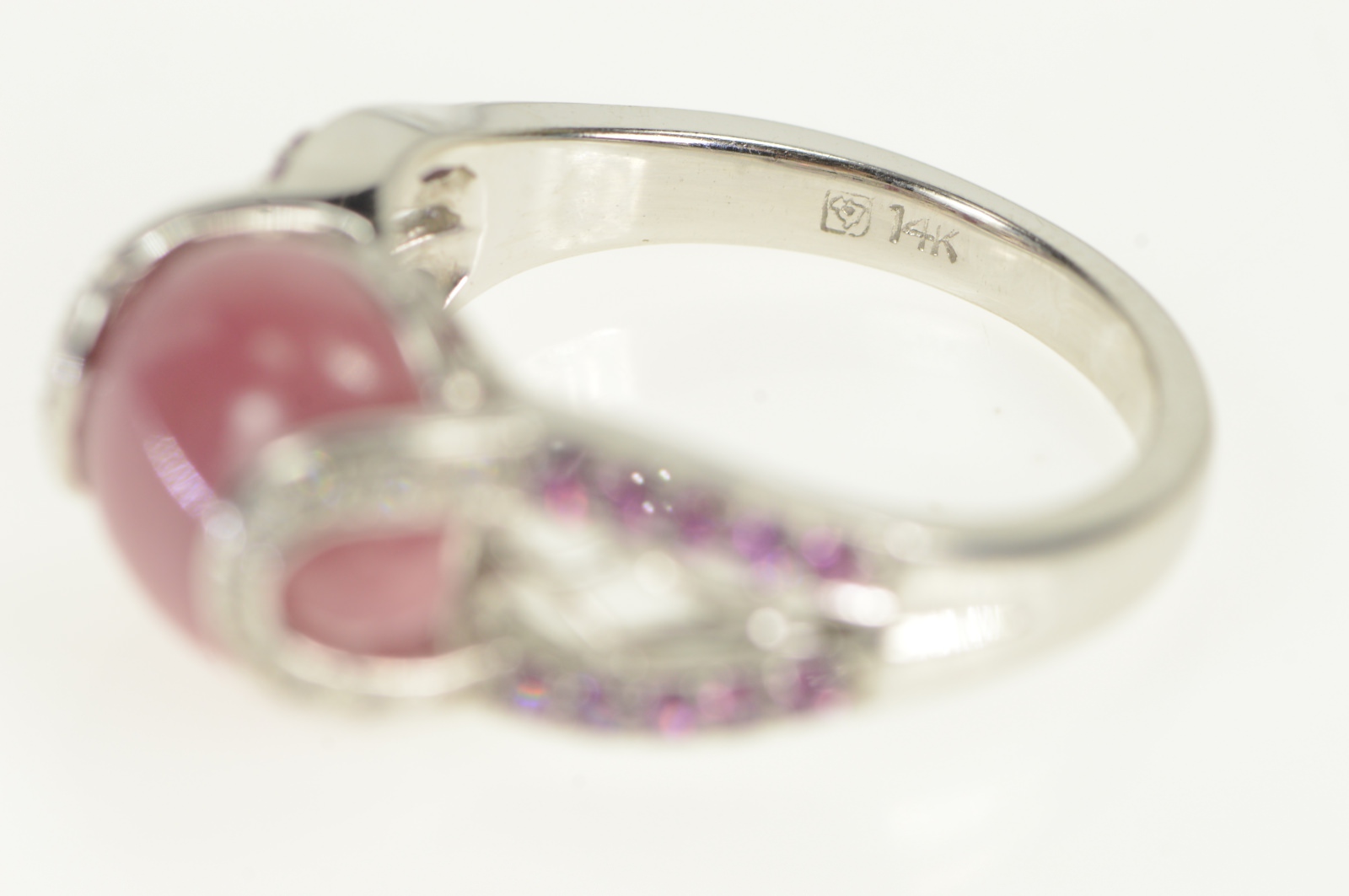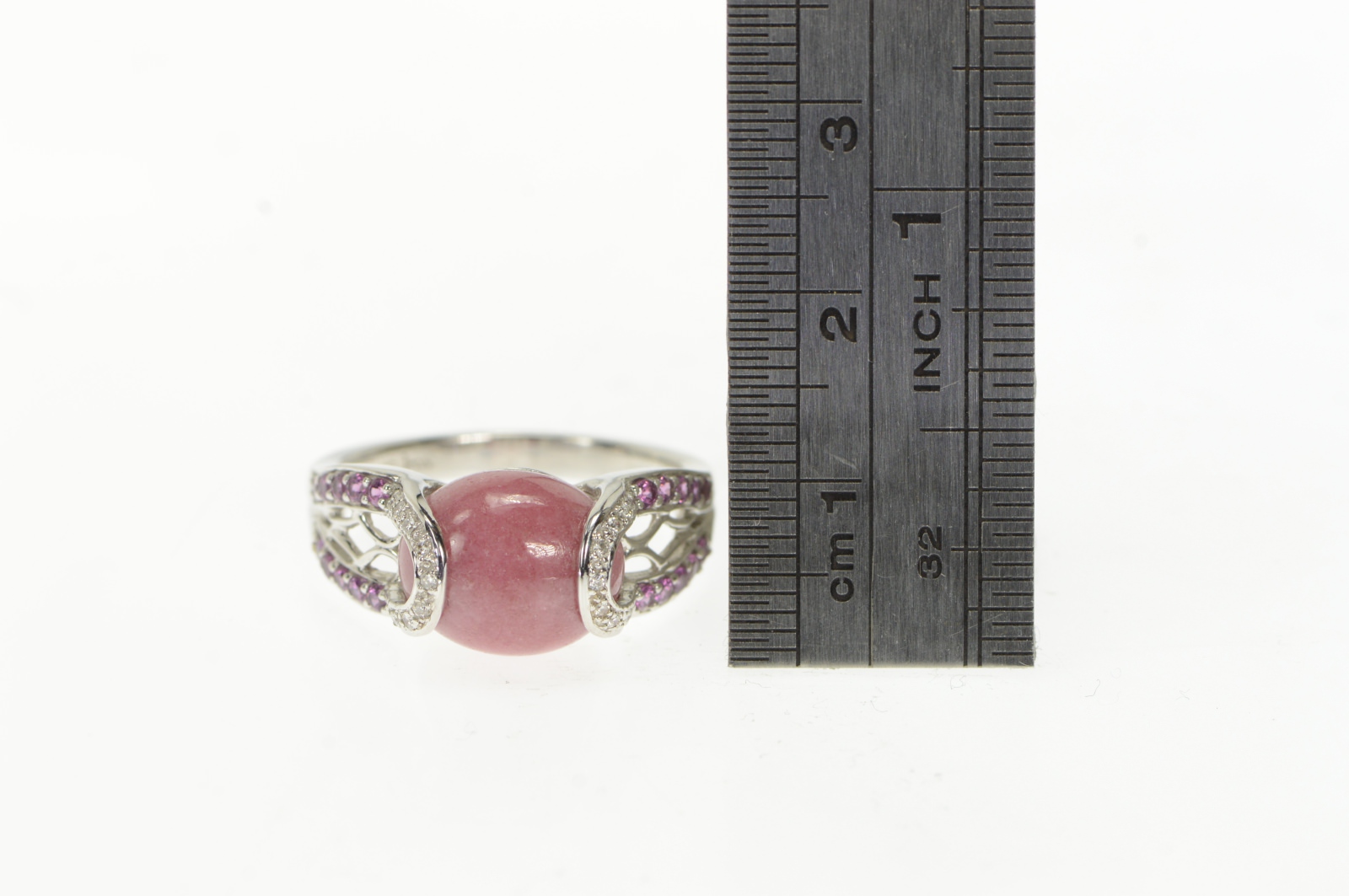 14K Rhodochrosite Diamond Sapphire Statement White Gold Ring, Size 8