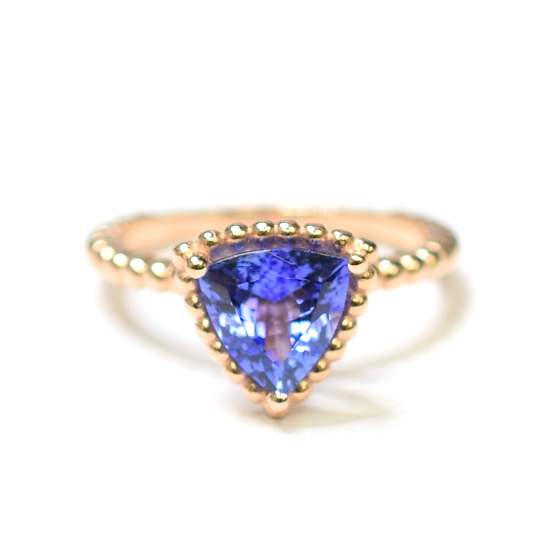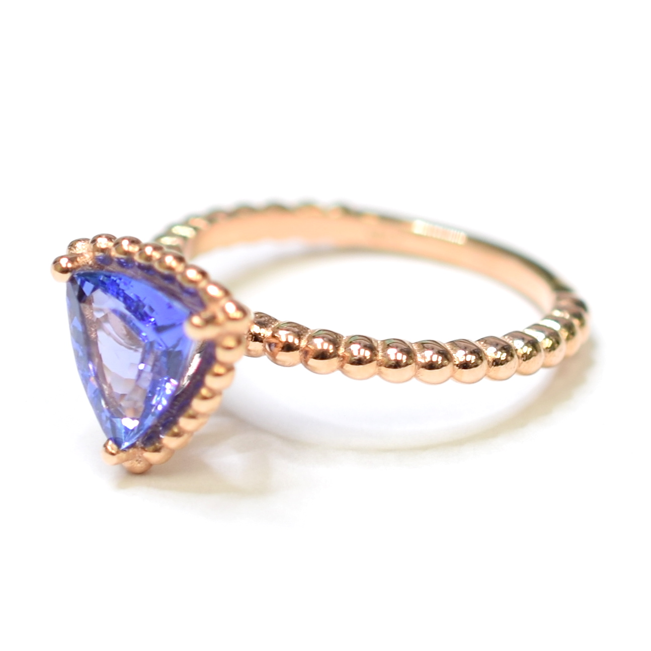 14K Rose Gold 3.30 Grams Trillion Cut Tanzanite Beaded Ring
