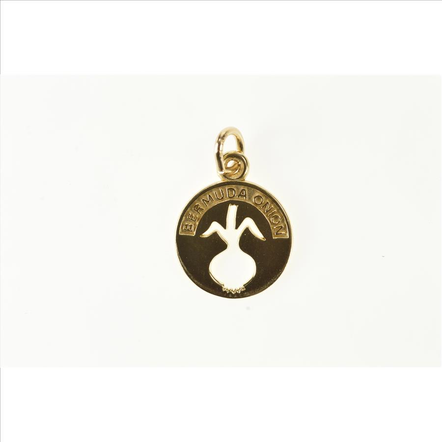 Item:  14K Round Bermuda Onion Cut Out Souvenir Yellow Gold Charm/Pendant