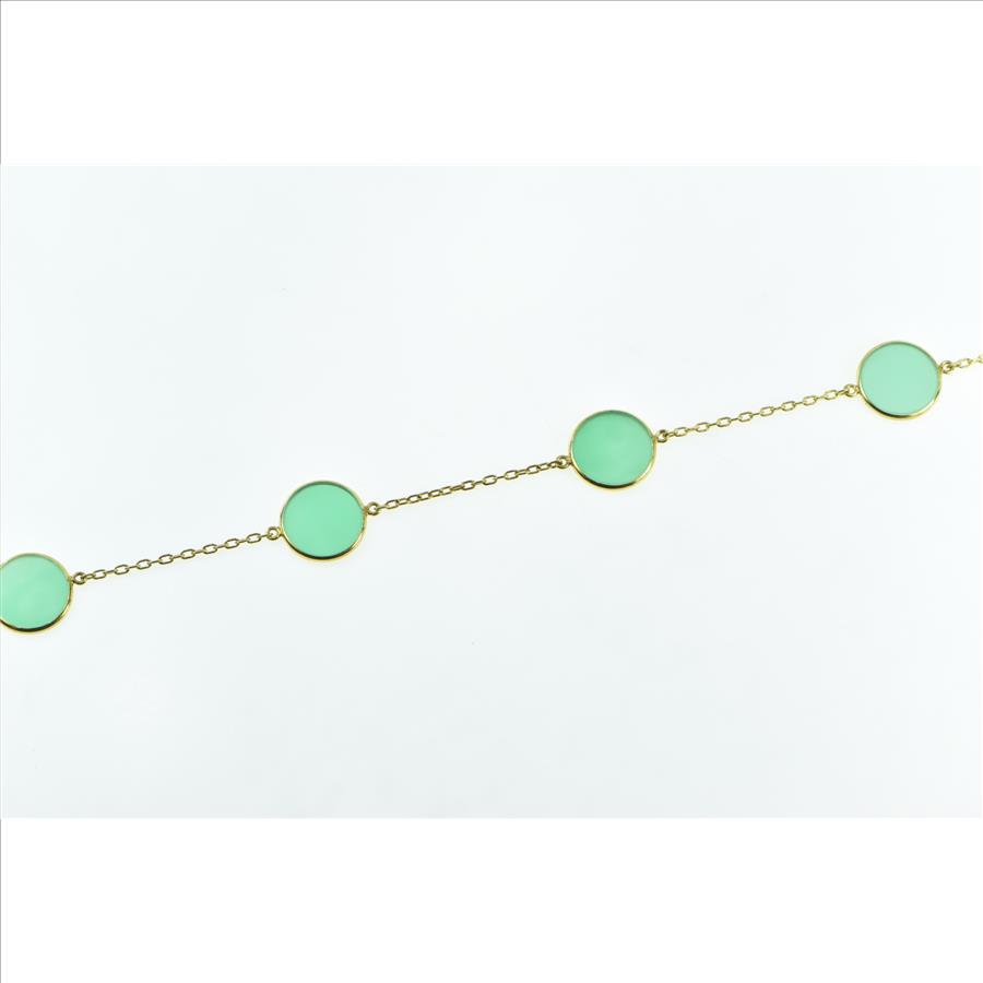 Item:  14K Round Green Glass Cable Chain Vintage Yellow Gold Necklace 16.25"
