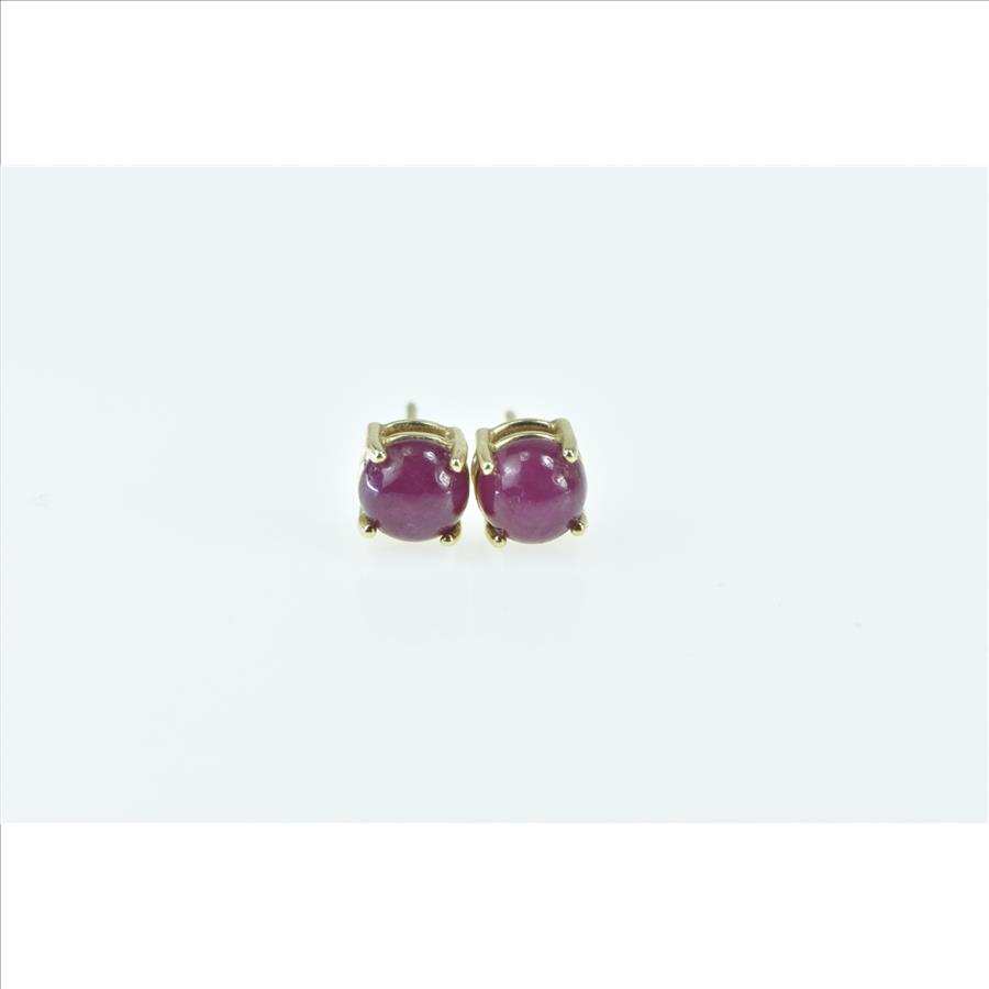 Item:  14K Ruby Cabochon Round Vintage Stud Yellow Gold Earrings
