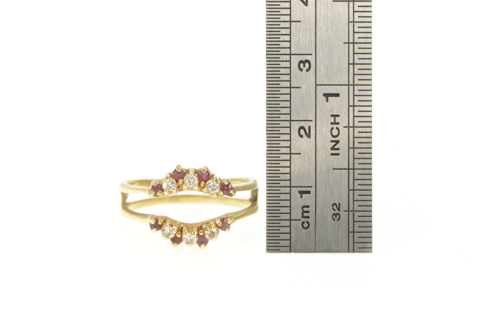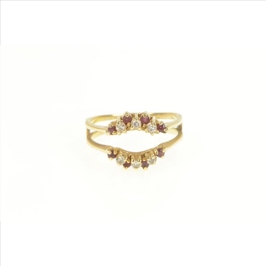 Item:  14K Ruby Diamond Wrap Curved Wedding Band Yellow Gold Ring, Size 7.25