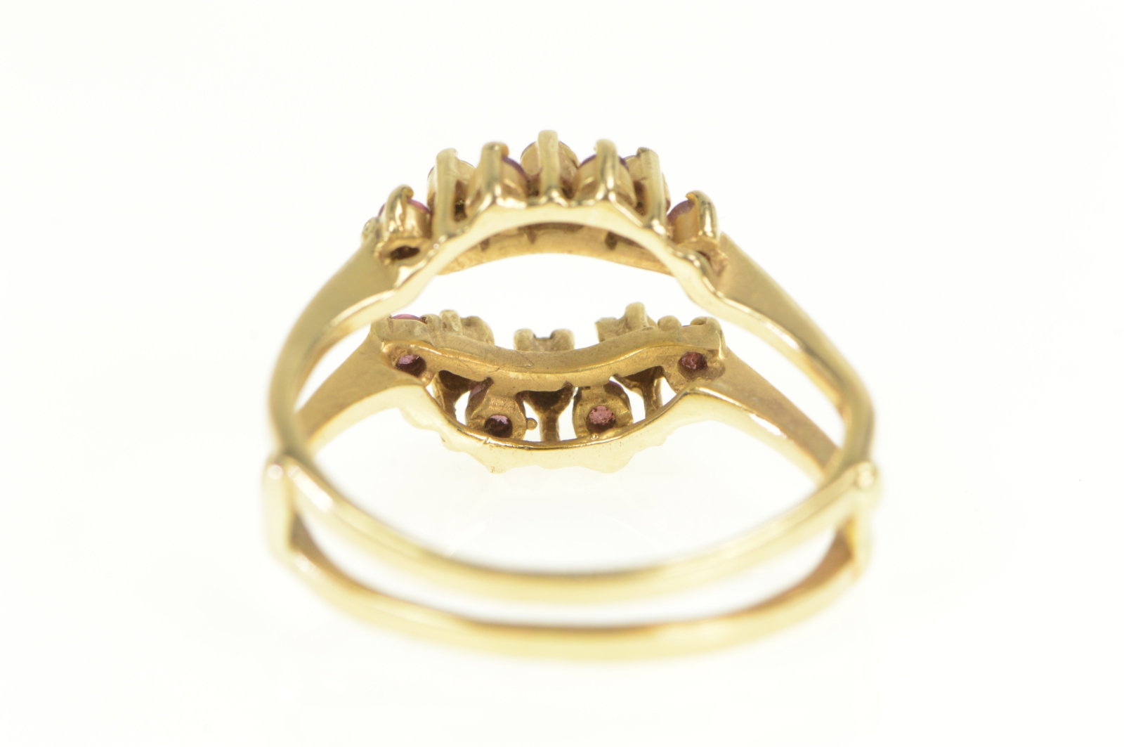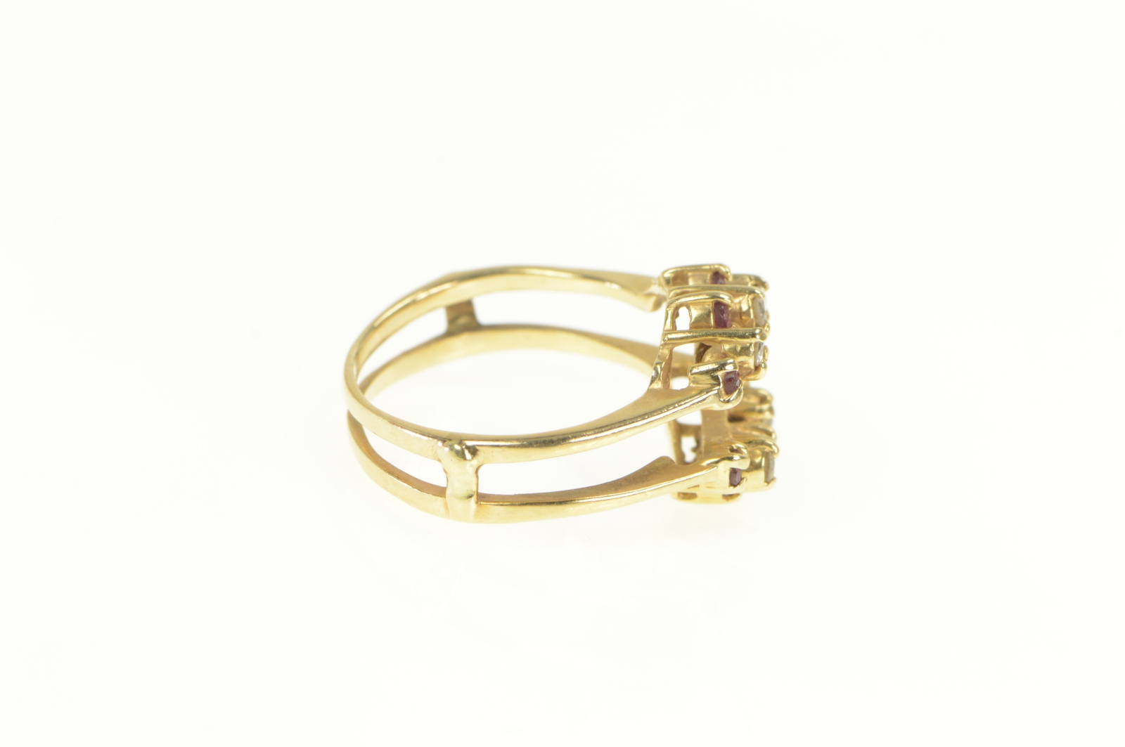 14K Ruby Diamond Wrap Curved Wedding Band Yellow Gold Ring, Size 7.25
