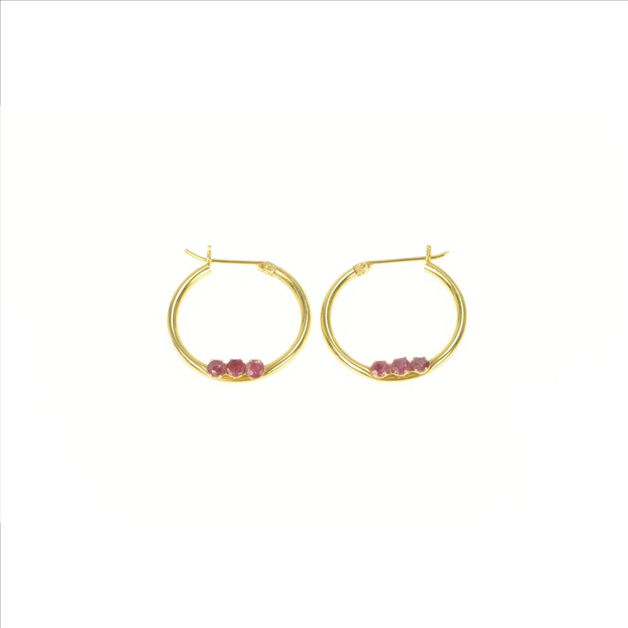 Item:  14K Ruby Inset Classic Statement 19.1mm Hoop Yellow Gold Earrings