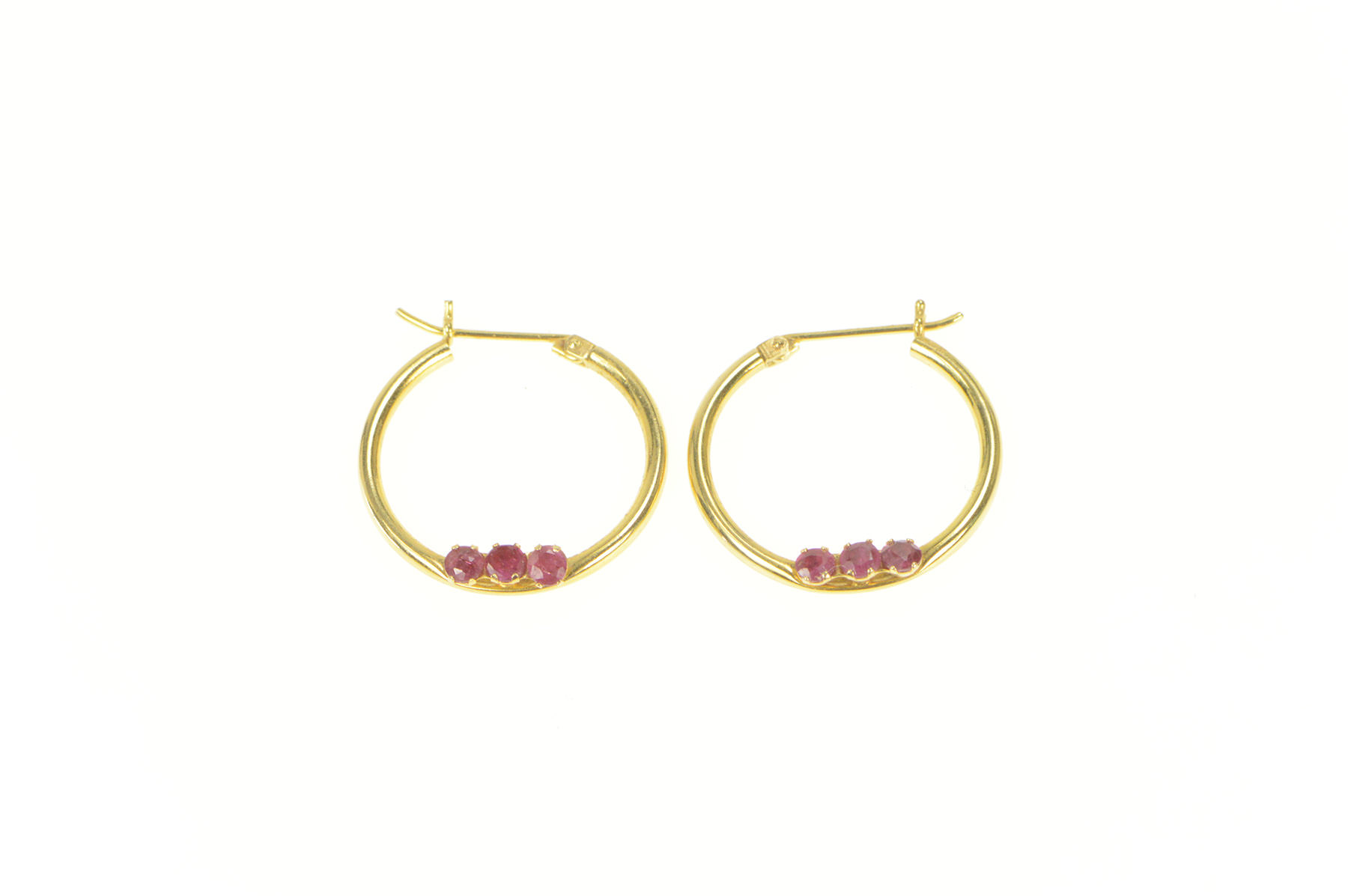 14K Ruby Inset Classic Statement 19.1mm Hoop Yellow Gold Earrings