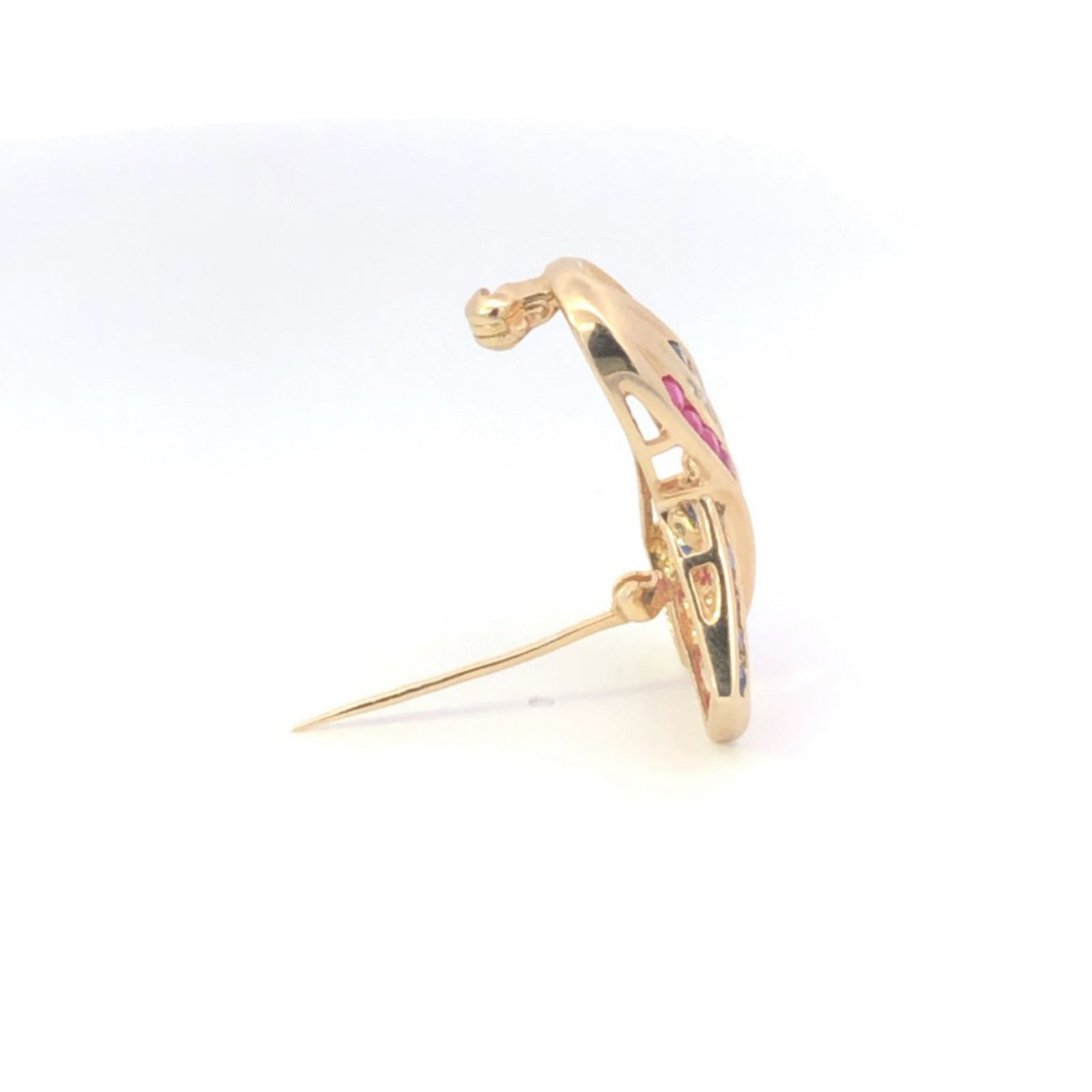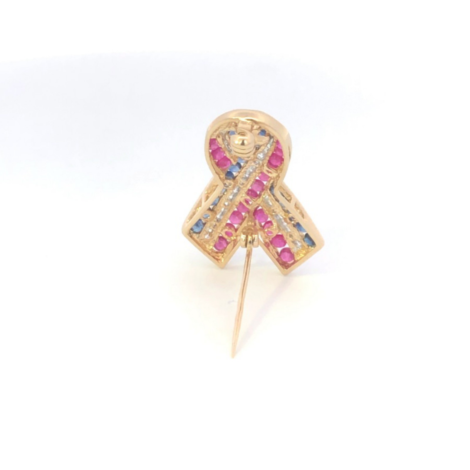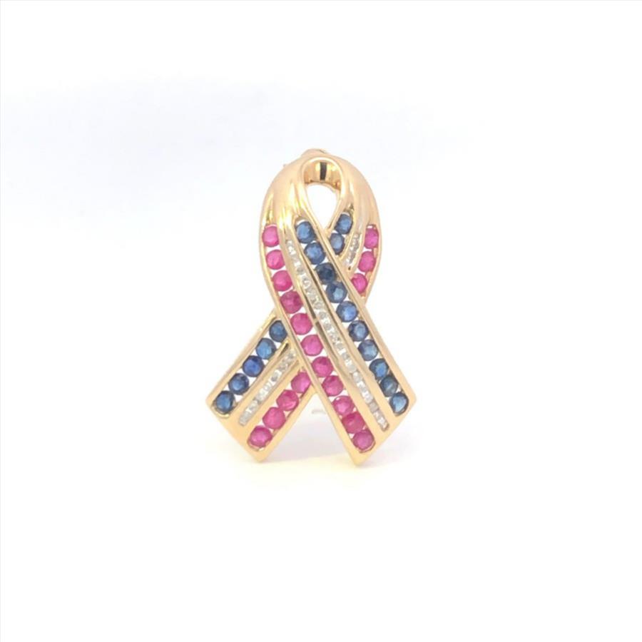 14K Ruby Sapphire Diamond Remembrance Ribbon Yellow Gold Pin/Brooch