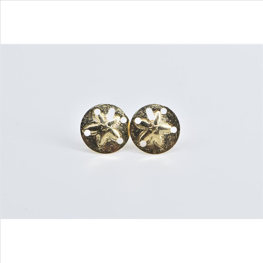 Item:  14K Sand Dollar Sea Shell Beach Ocean Motif Stud White Gold Earrings