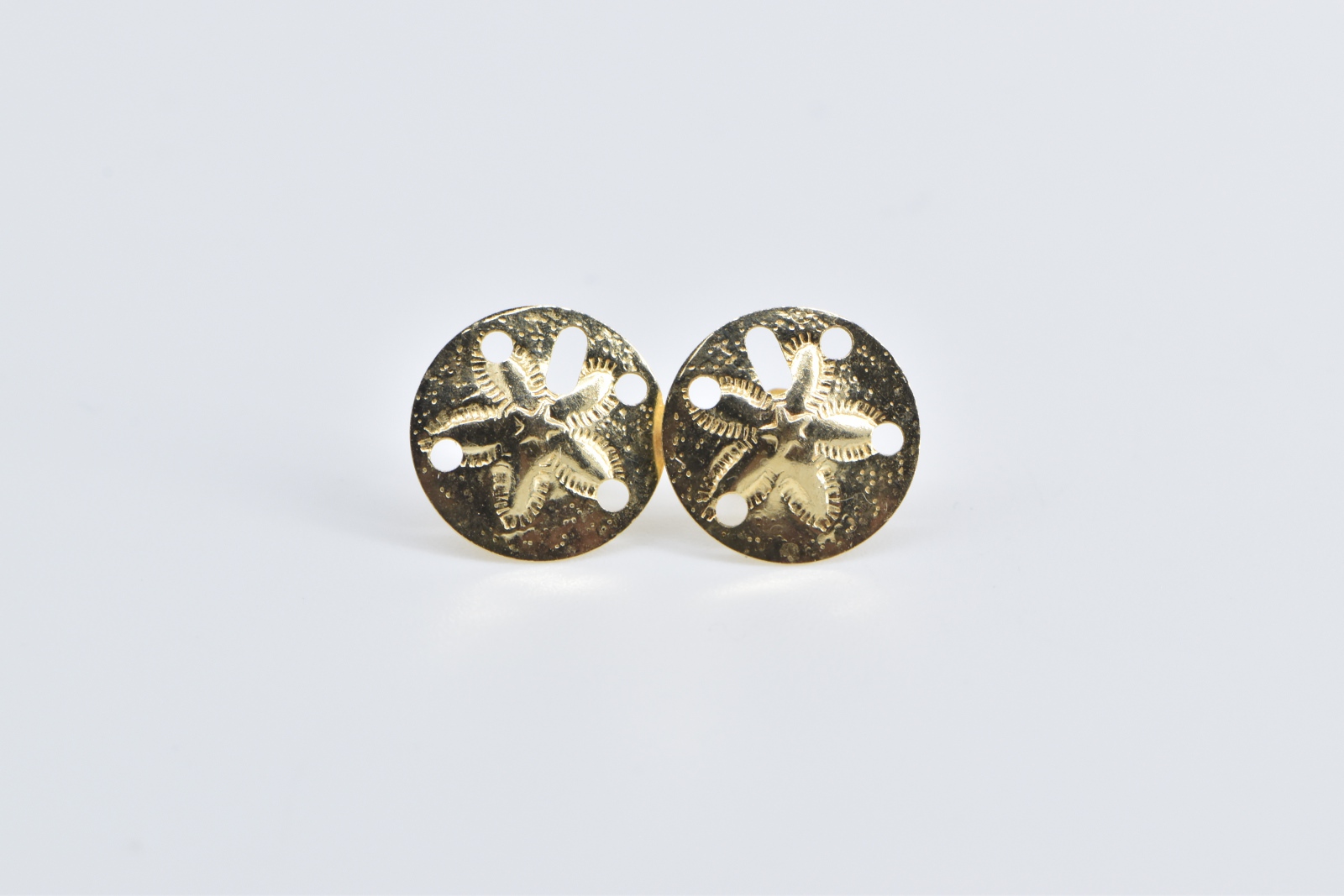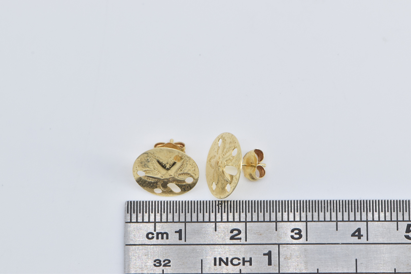 14K Sand Dollar Sea Shell Beach Ocean Motif Stud White Gold Earrings