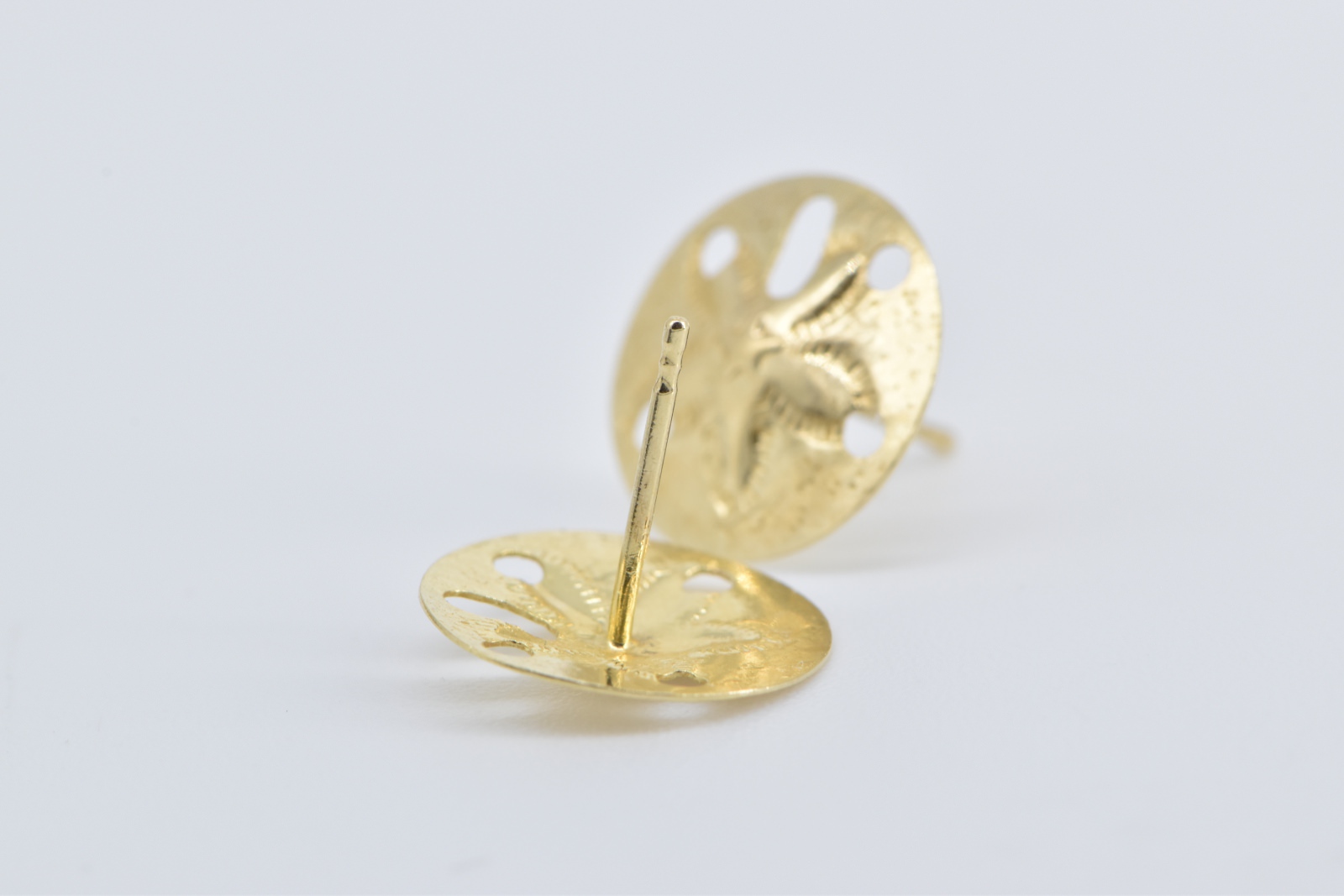 14K Sand Dollar Sea Shell Beach Ocean Motif Stud White Gold Earrings