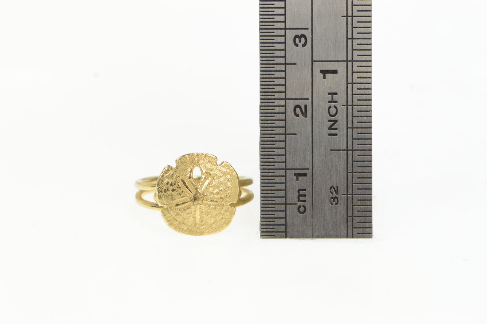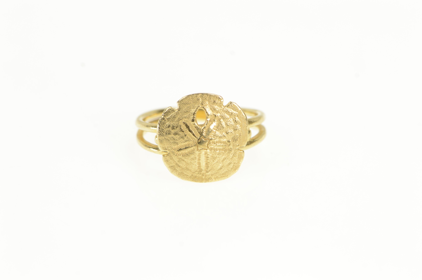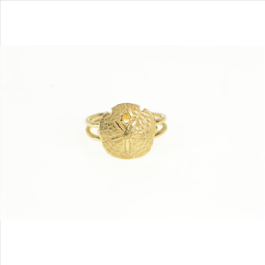 Item:  14K Sand Dollar Sea Shell Ocean Motif Yellow Gold Ring, Size 4