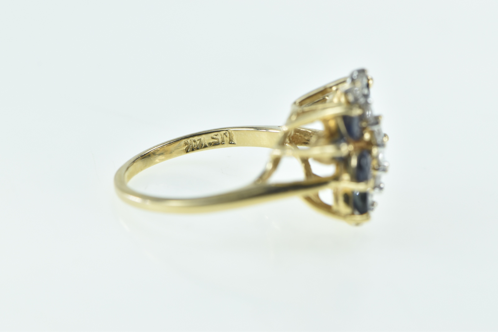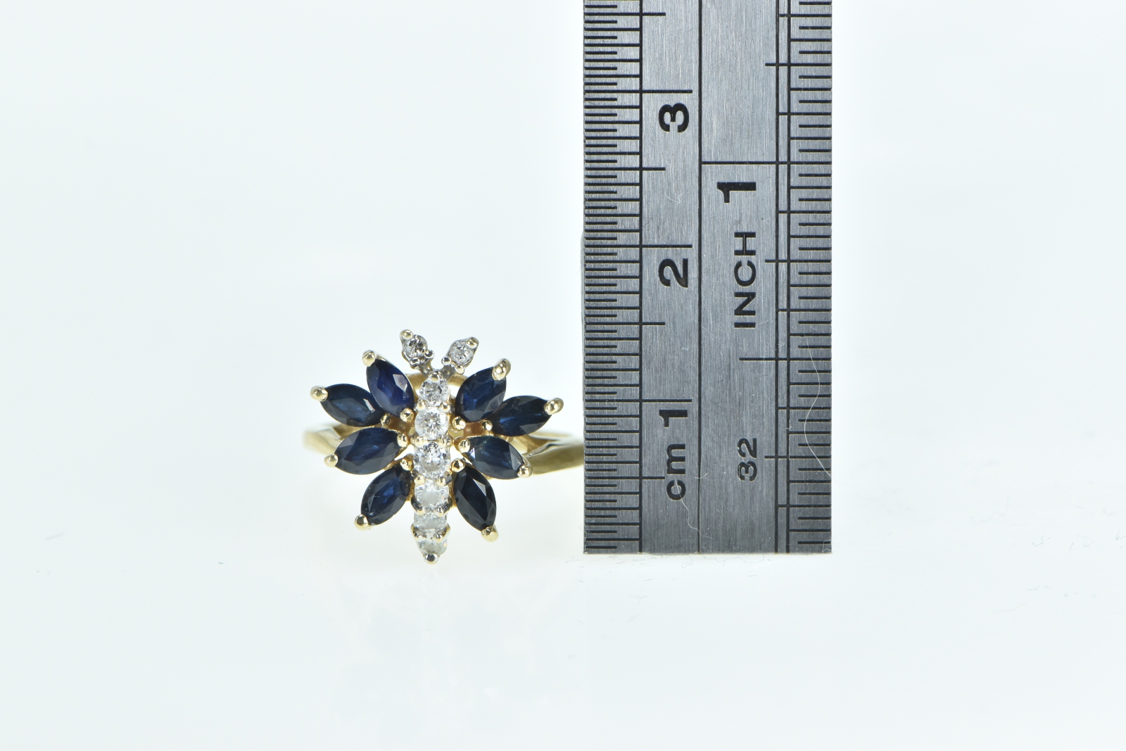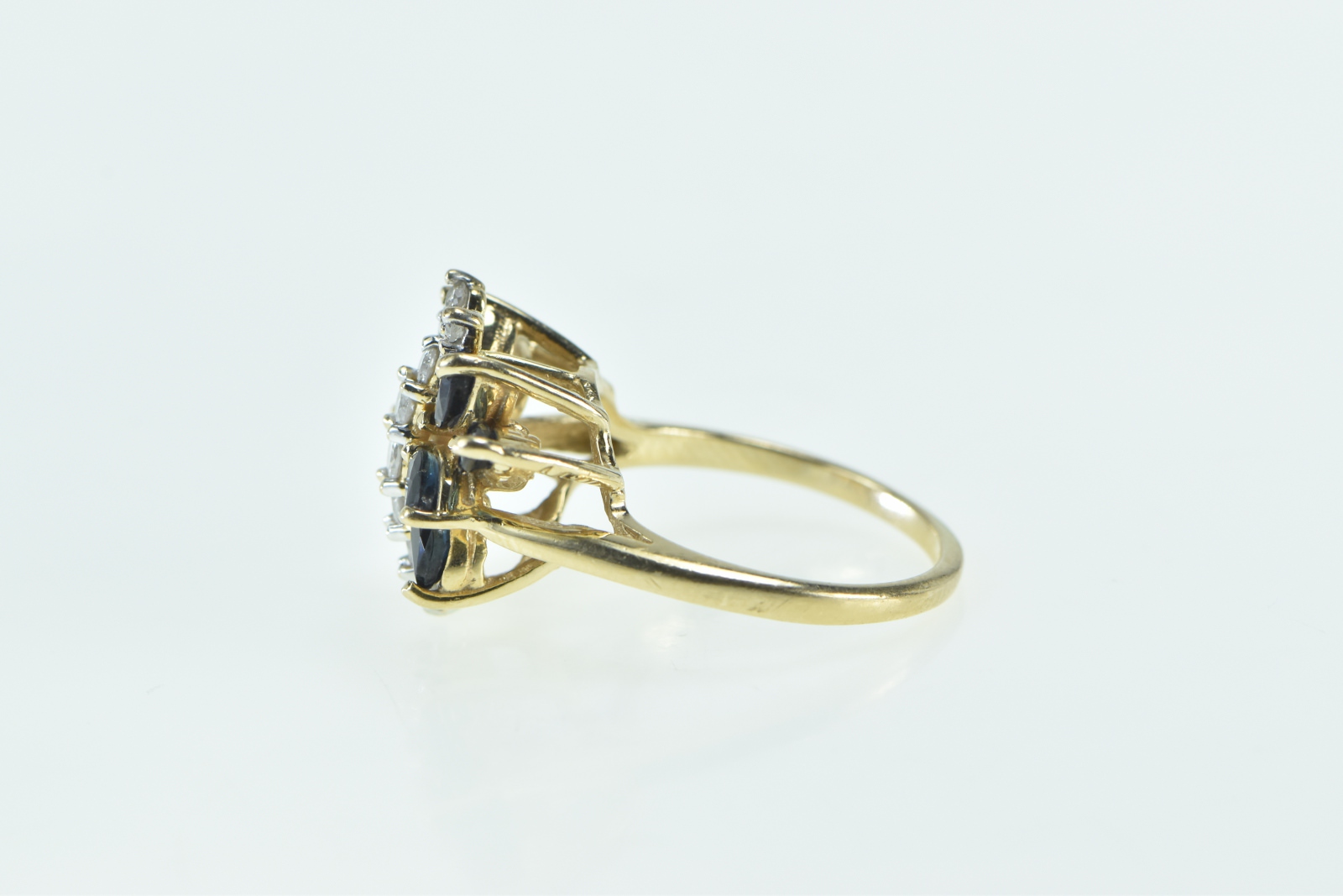 14K Sapphire Diamond Butterfly Statement Cocktail Yellow Gold Ring, Size 6