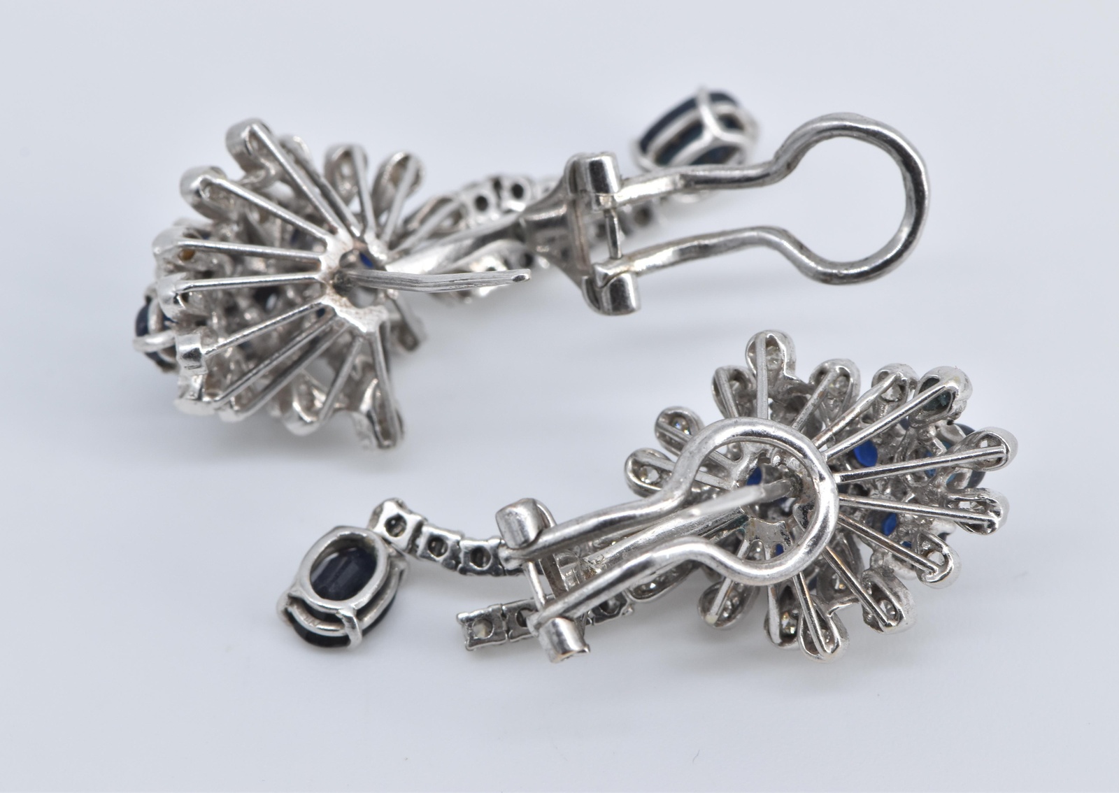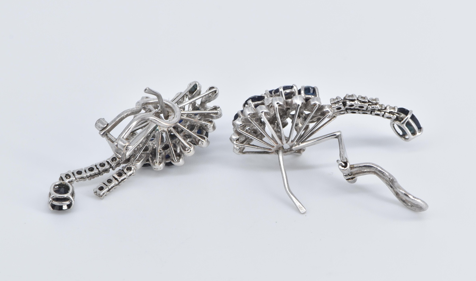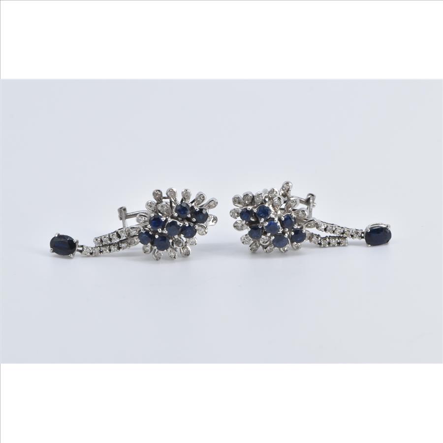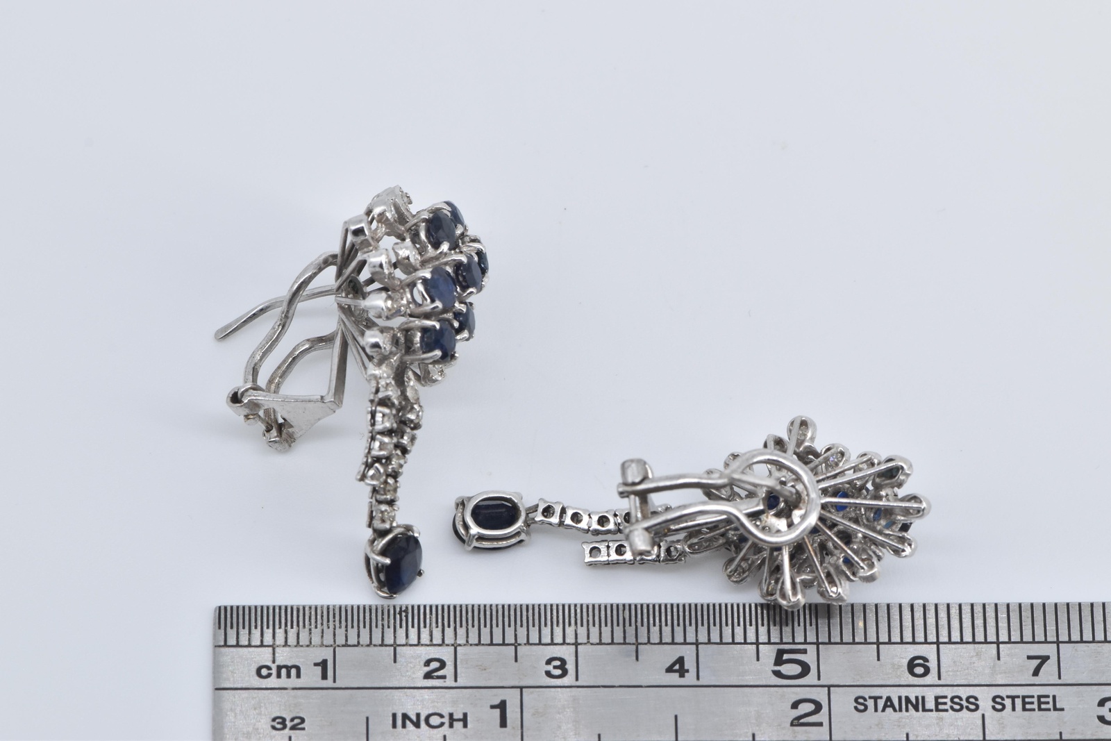 Item:  14K Sapphire Natural Diamond Statement Cluster White Gold Earrings
