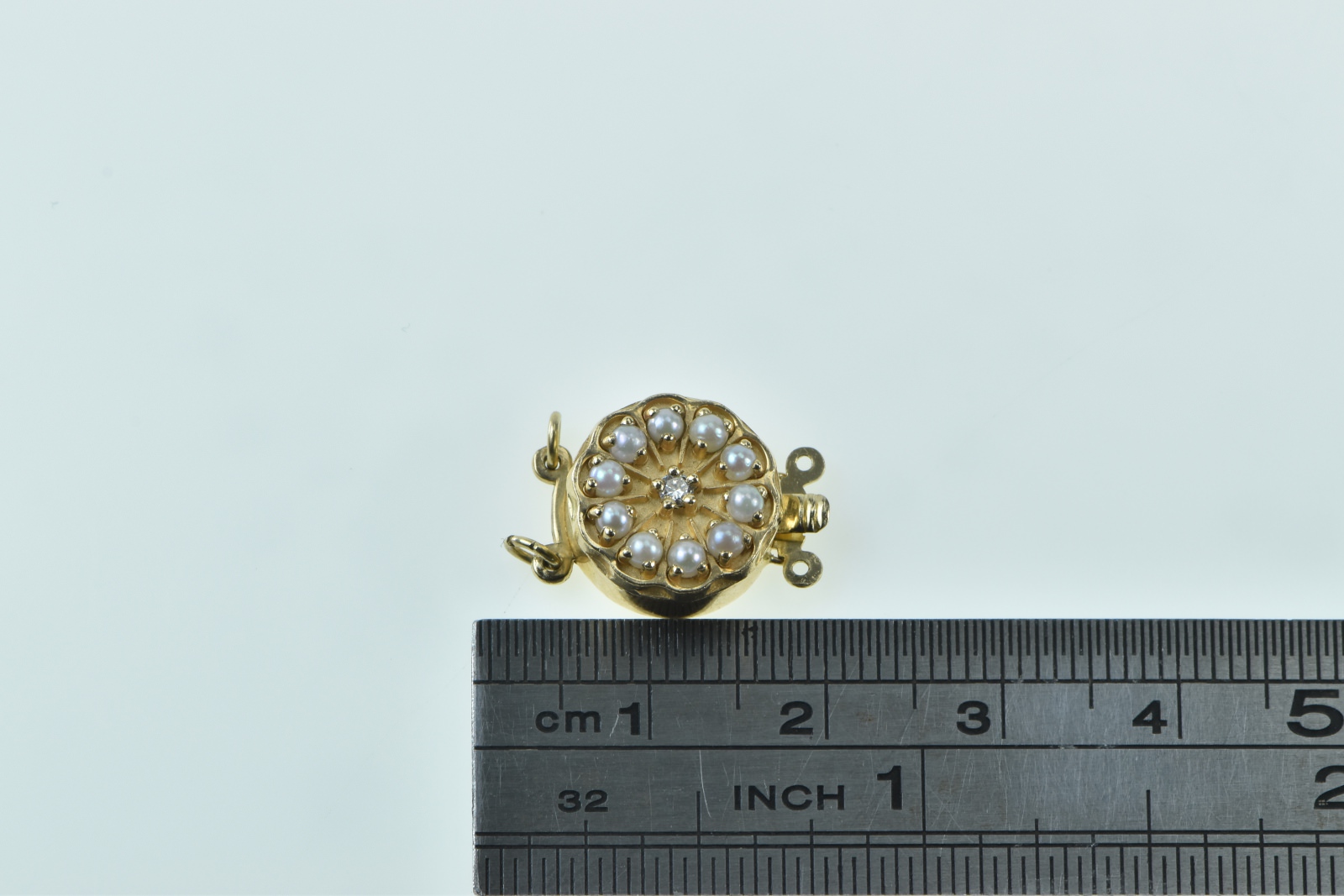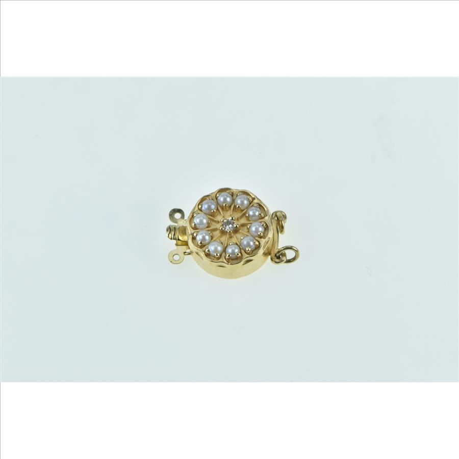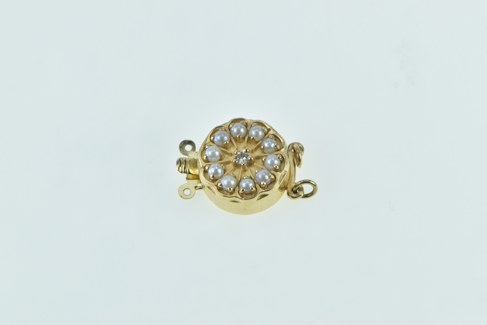 14K Seed Pearl Diamond Flower Ornate Clasp Yellow Gold