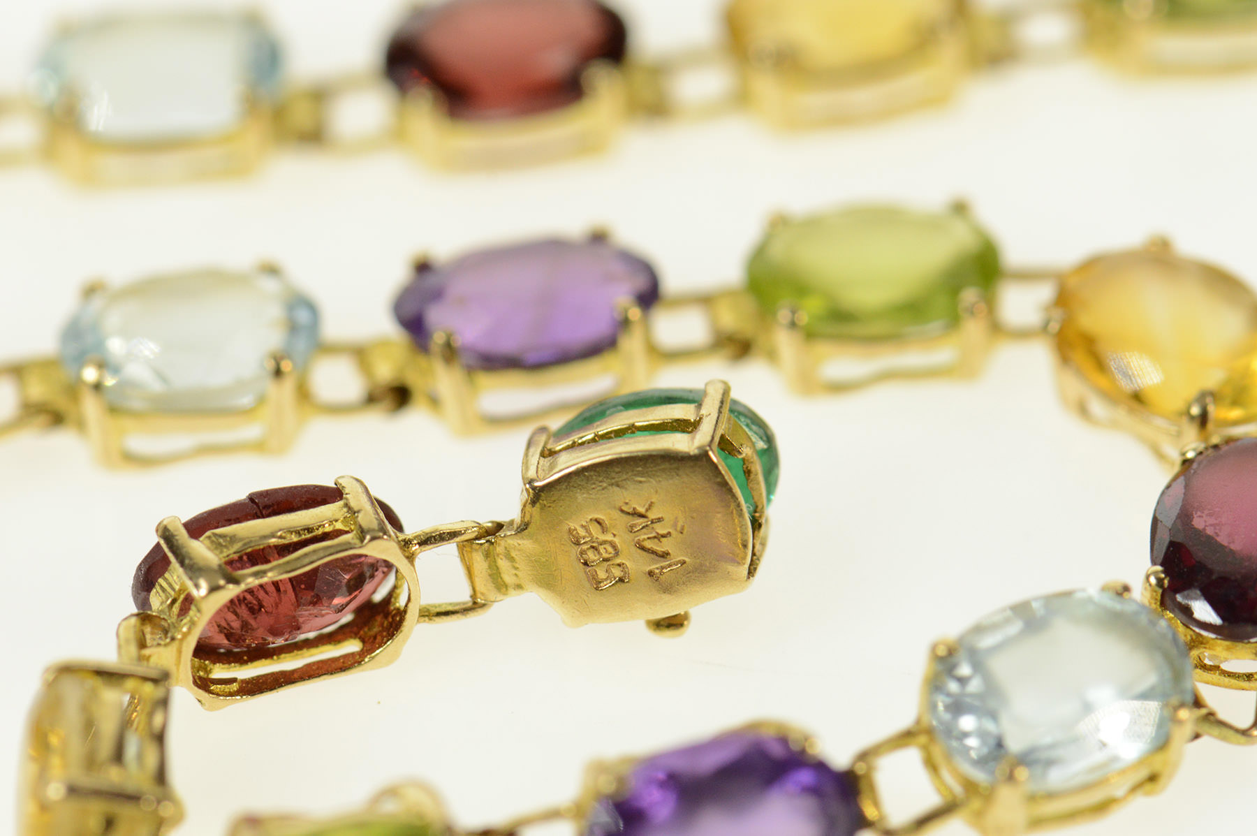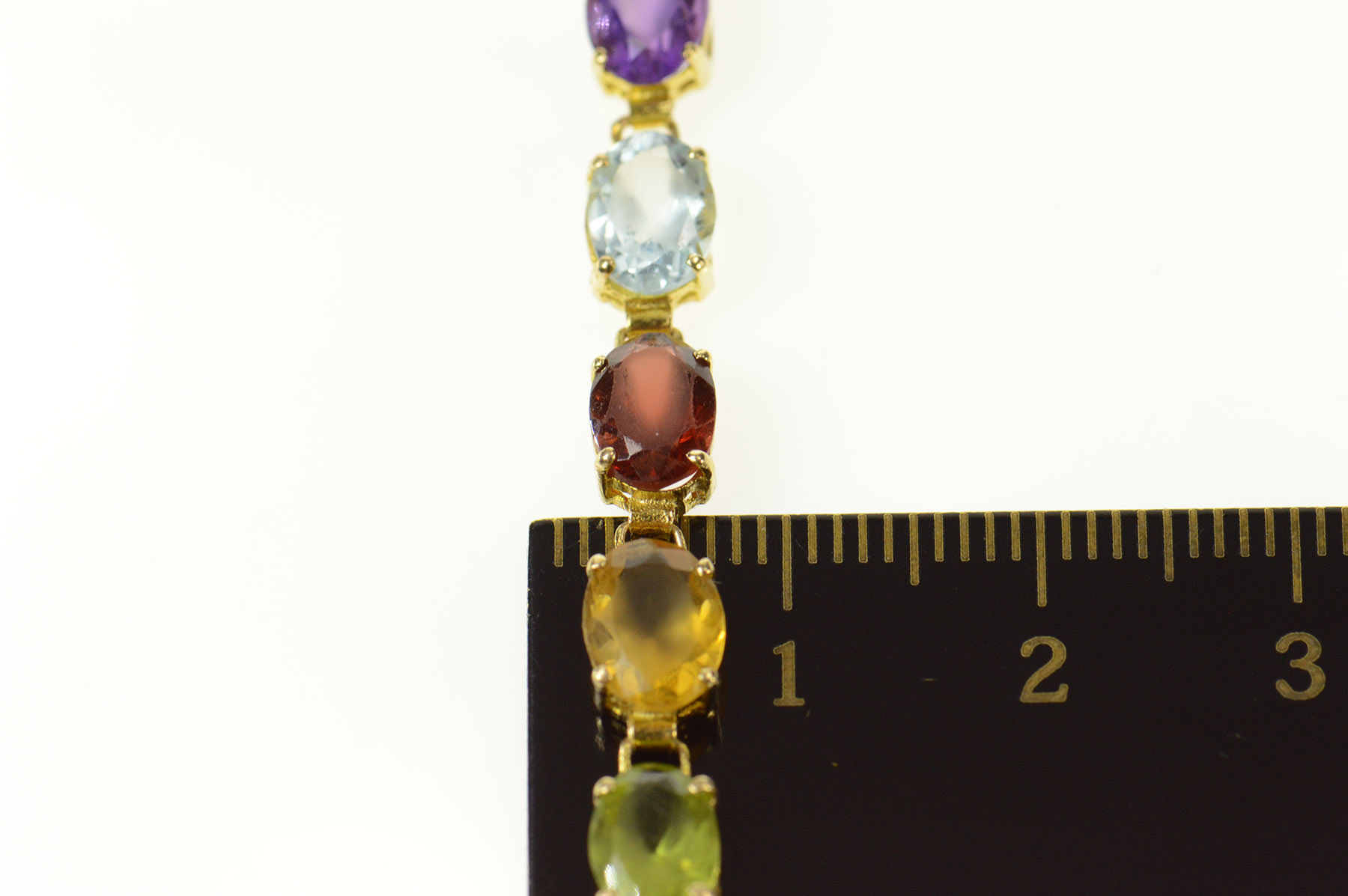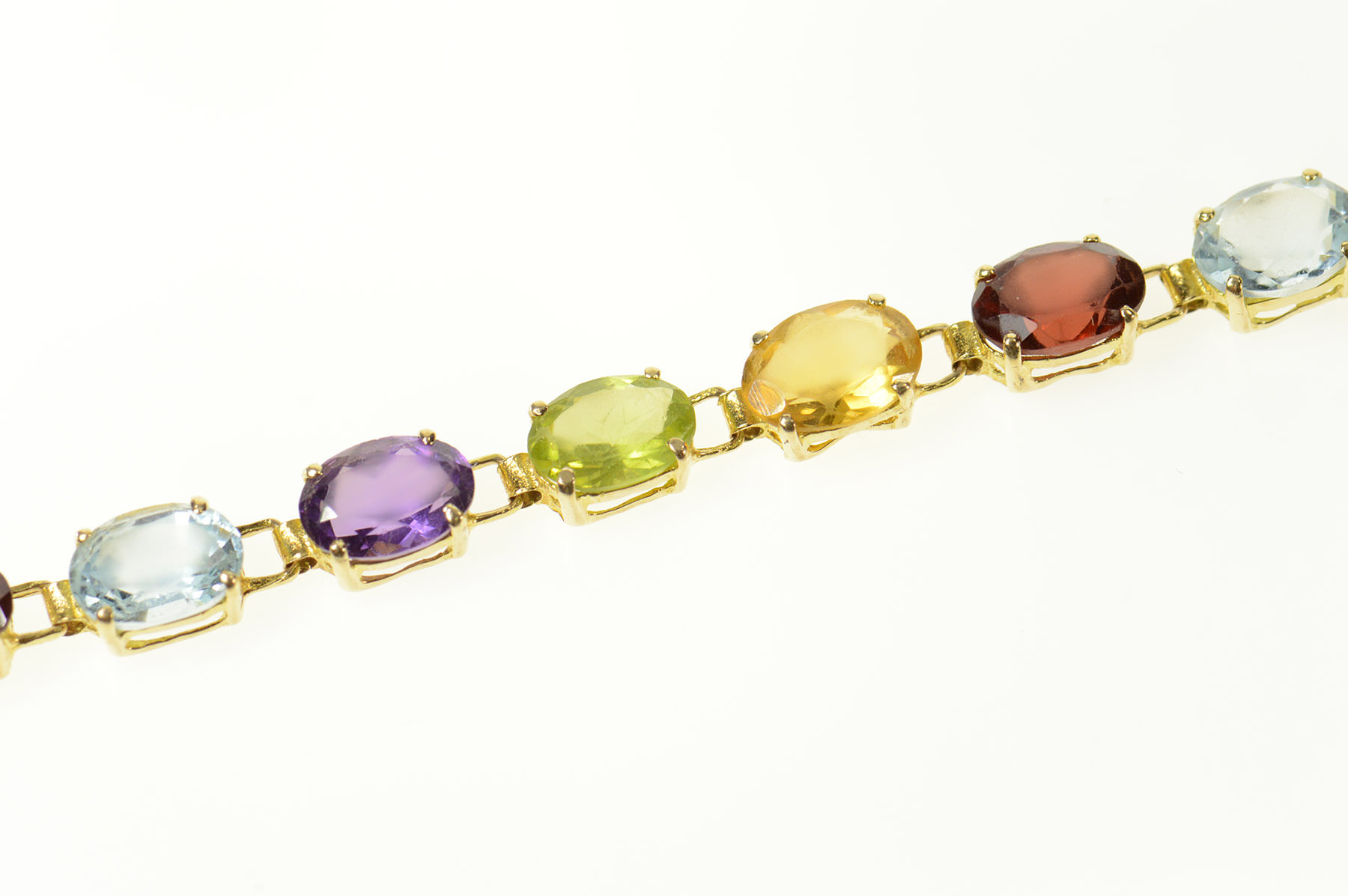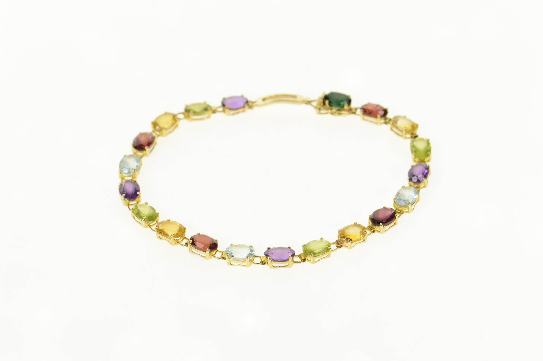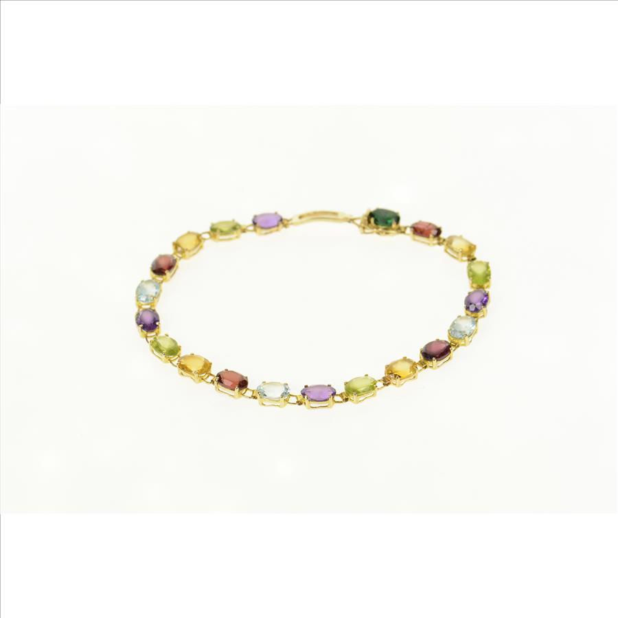 Item:  14K Sim. Amethyst Citrine Topaz Garnet Tennis Yellow Gold Bracelet 8"
