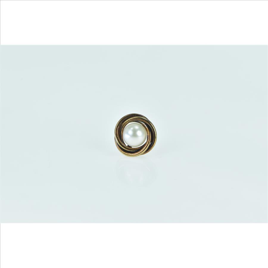 14K Single Pearl Twist Trim Vintage Stud Yellow Gold Earrings
