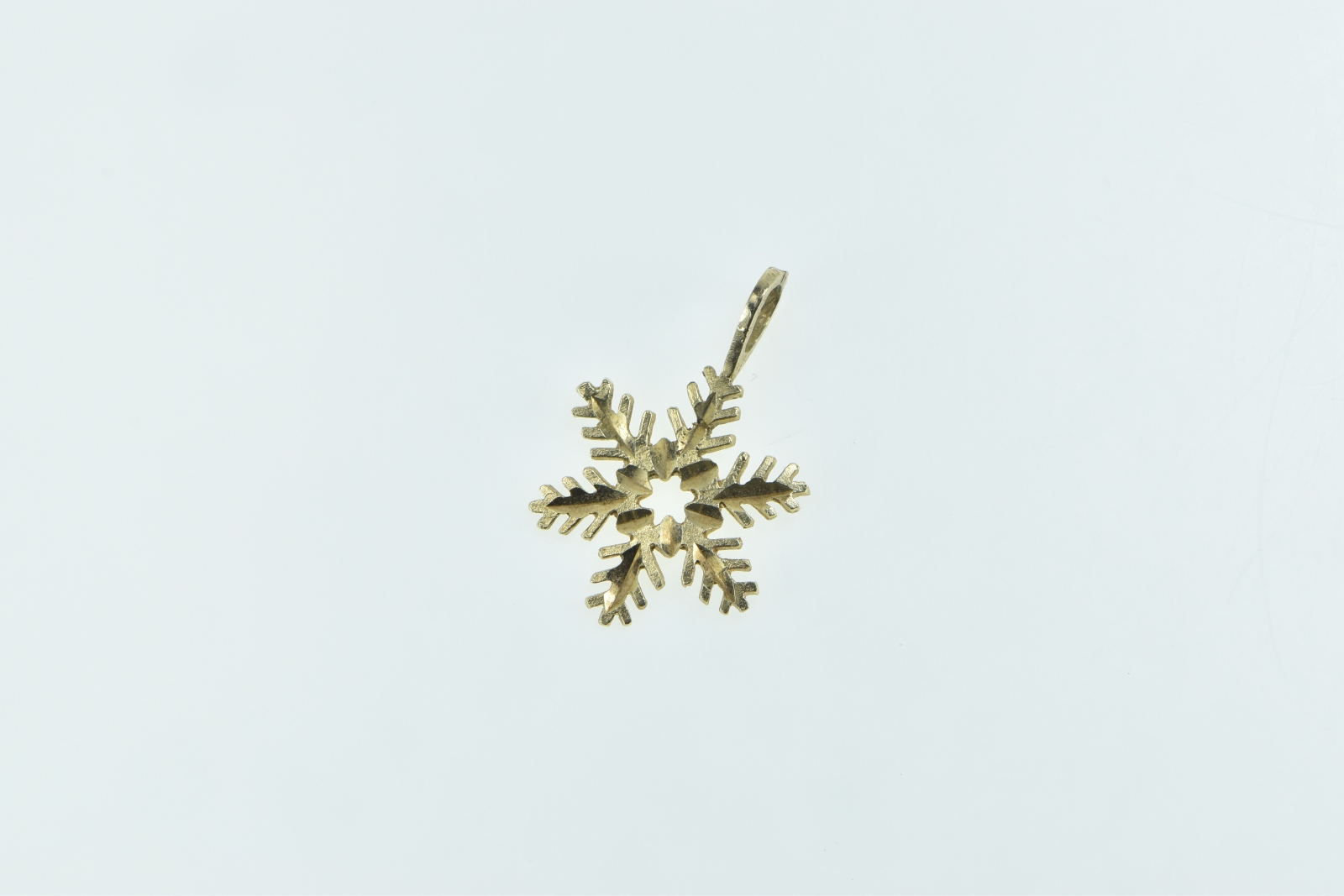 14K Snow Flake Winter Motif Cold Weather Yellow Gold Charm/Pendant