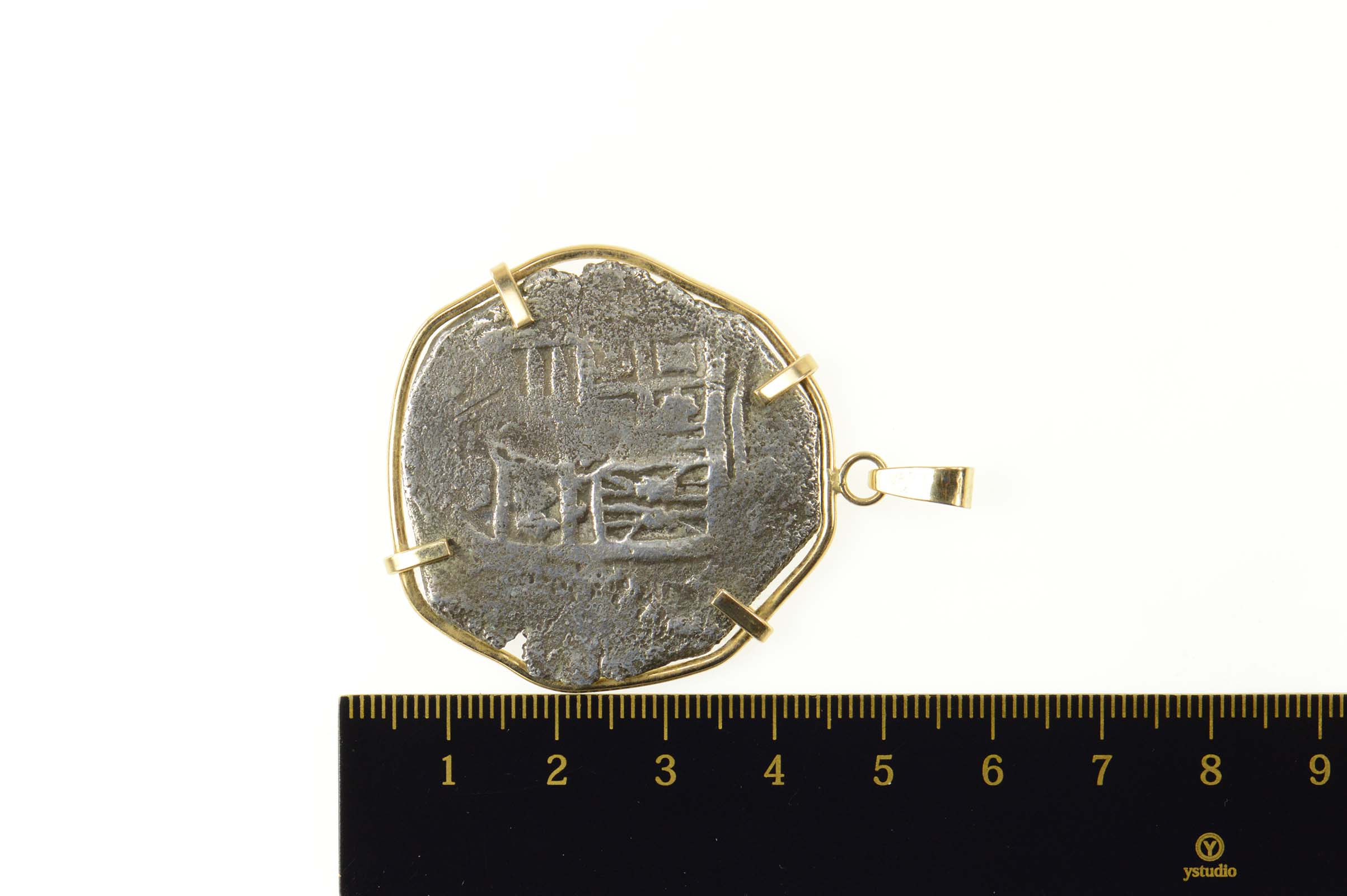Item:  14K Spanish Shipwreck Coin Statement Yellow Gold Pendant