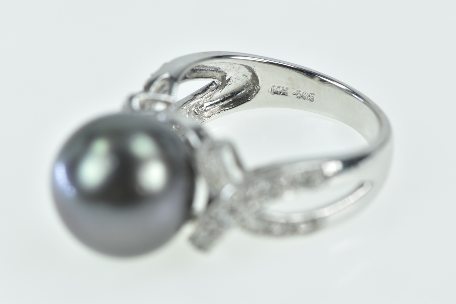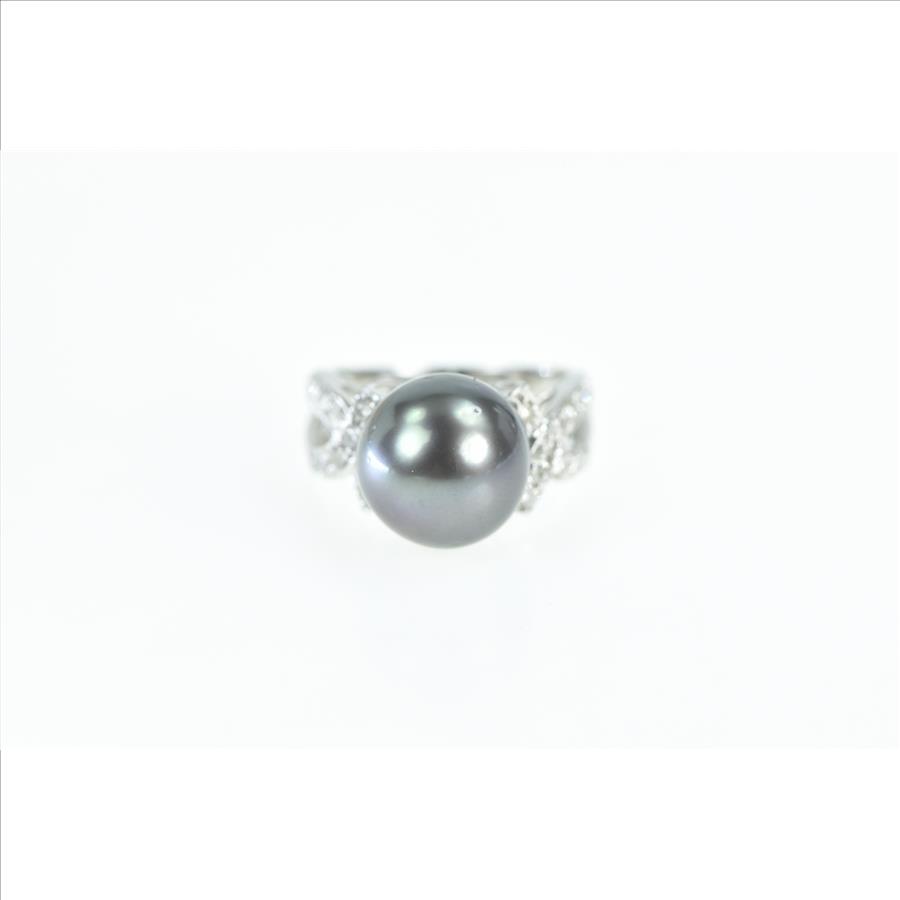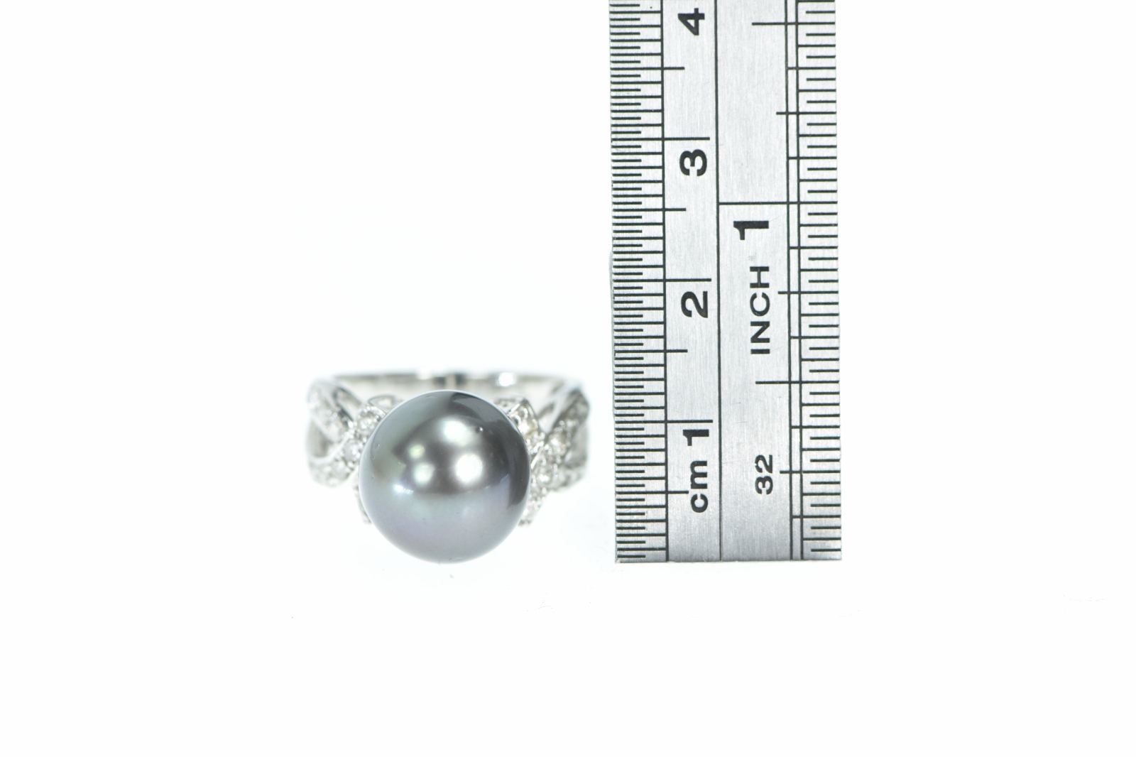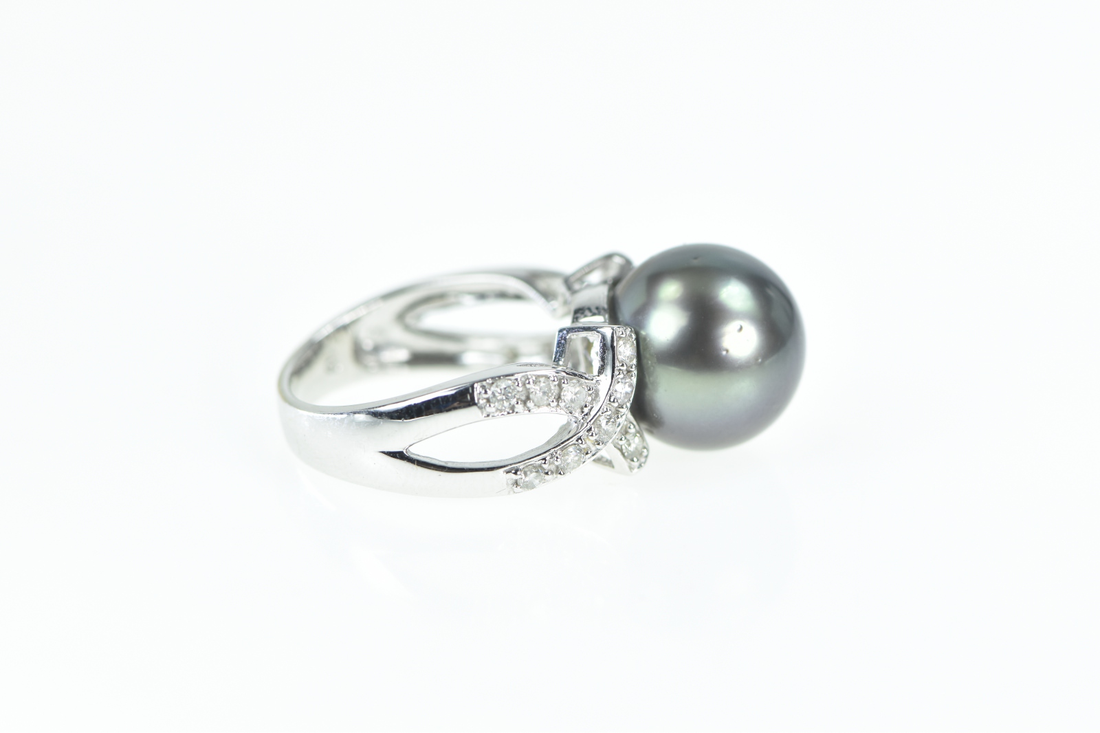 Item:  14K Tahitian Pearl Diamond Statement White Gold Ring, Size 6.75