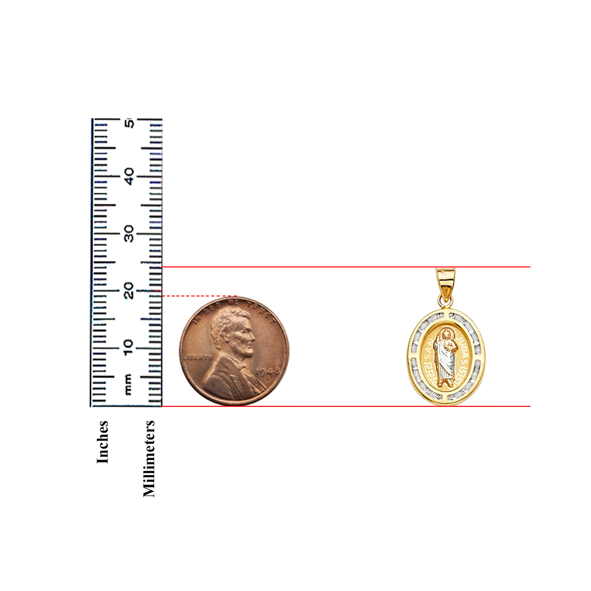 14K Tri Color Gold Cubic zirconia San Judas Medal Pendant