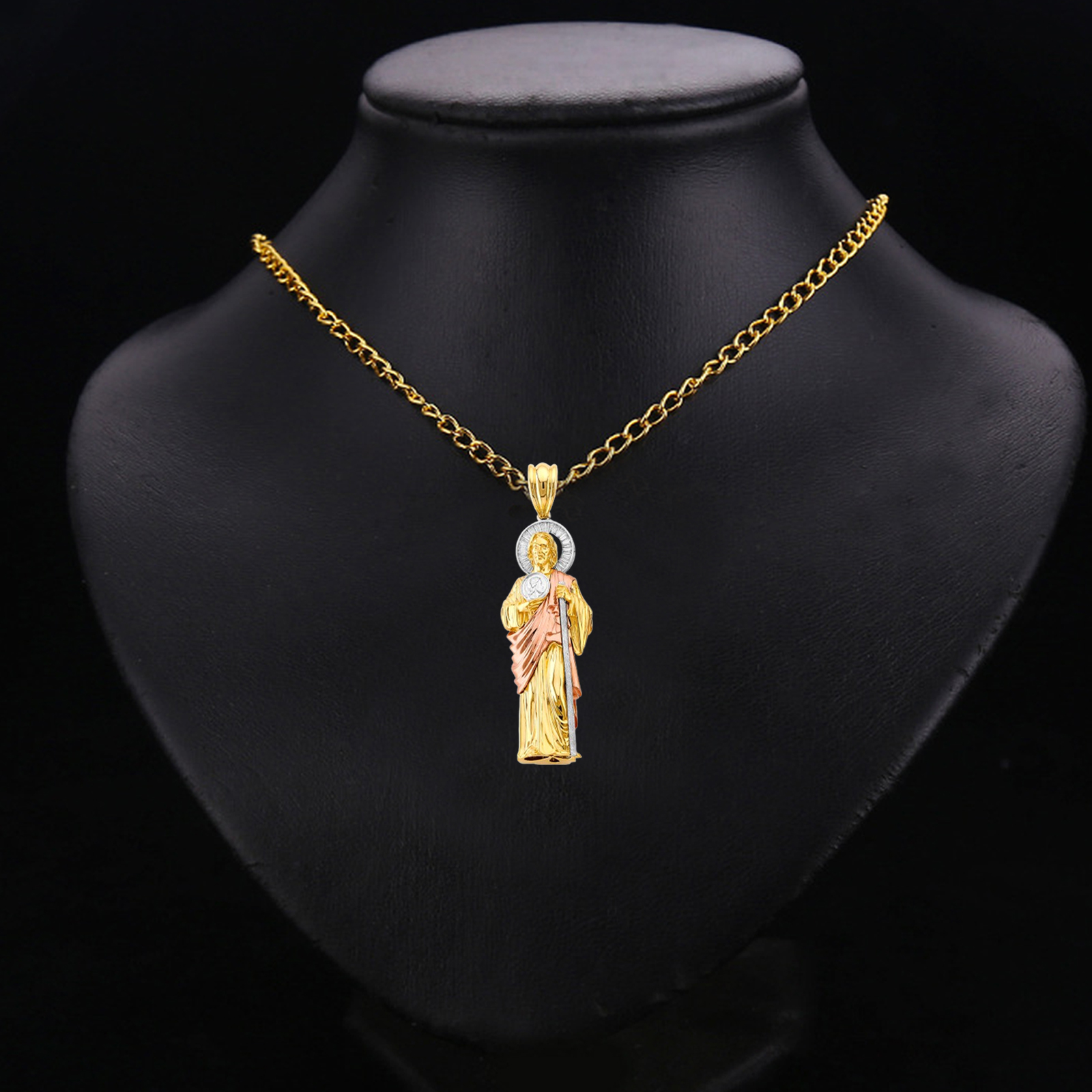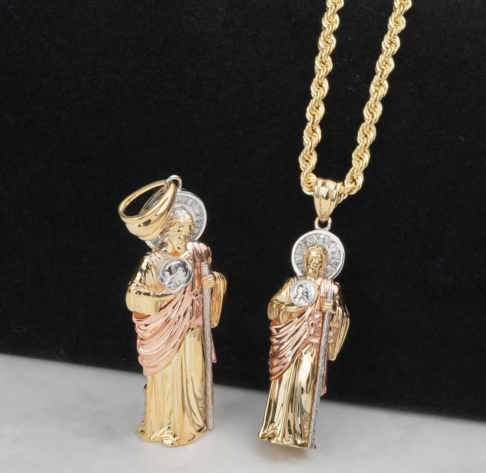 14K Tri Color Gold Cubic zirconia St. Jude Thaddues 3D Pendant