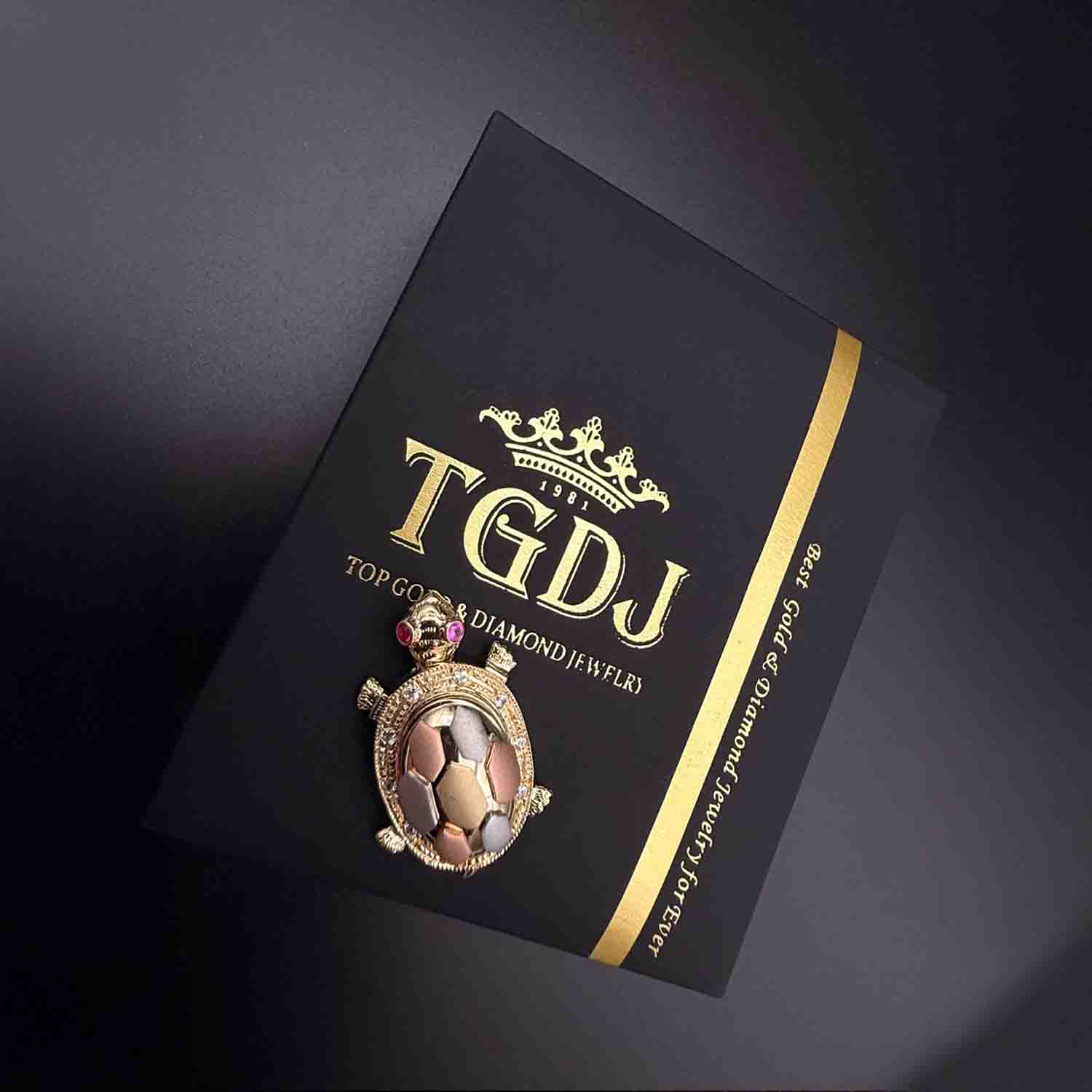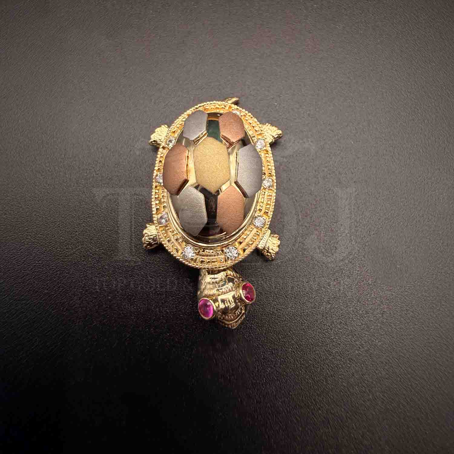 14K Tri Color Gold cubic zirconia Turtle Pendant