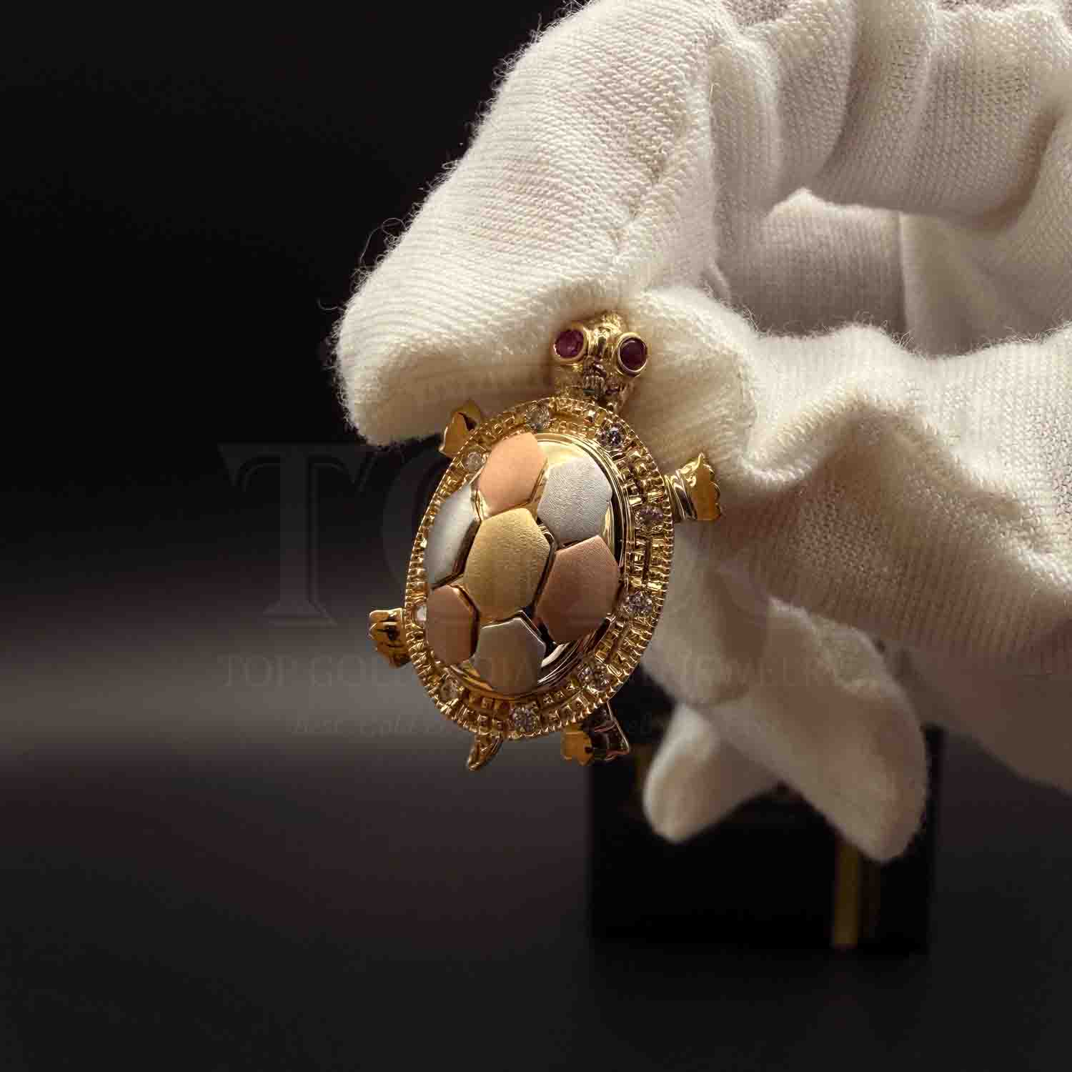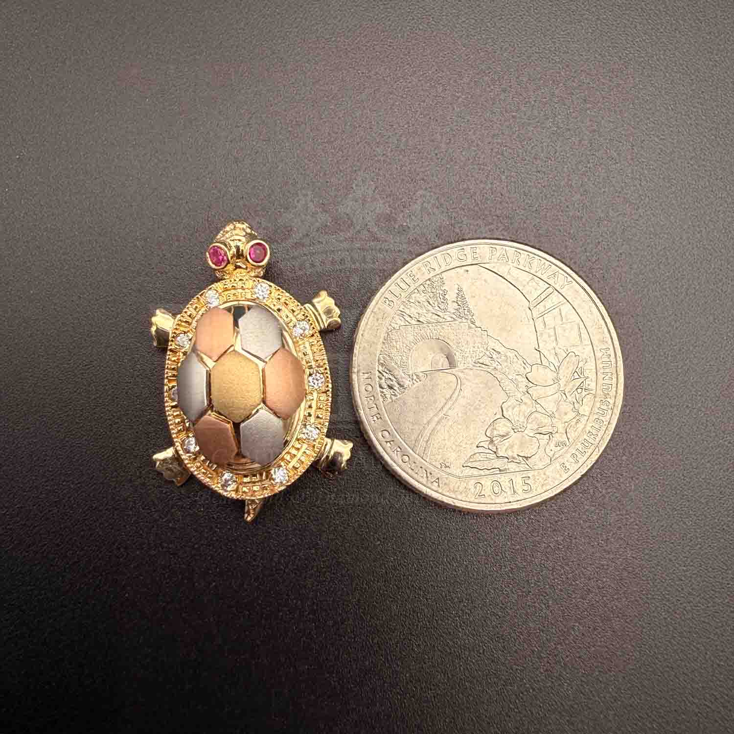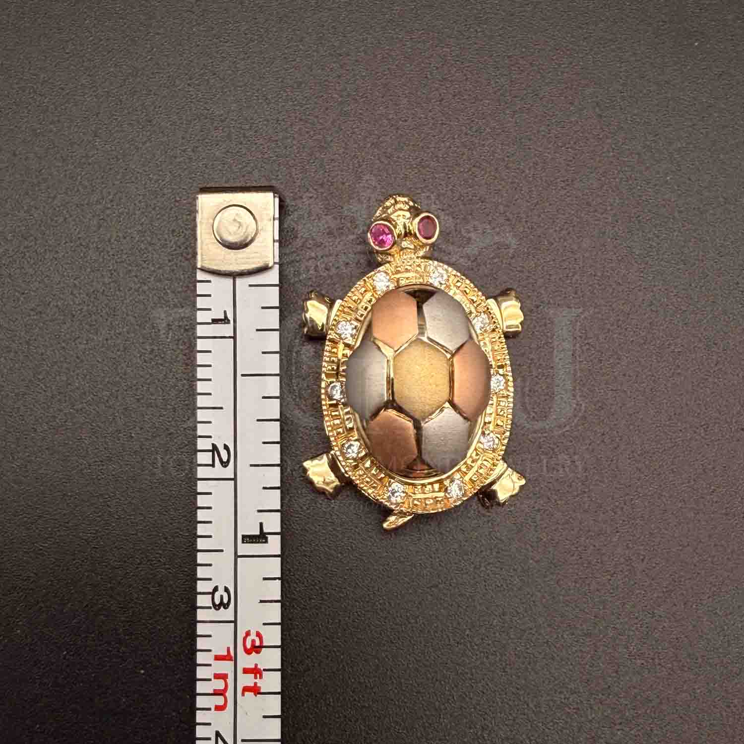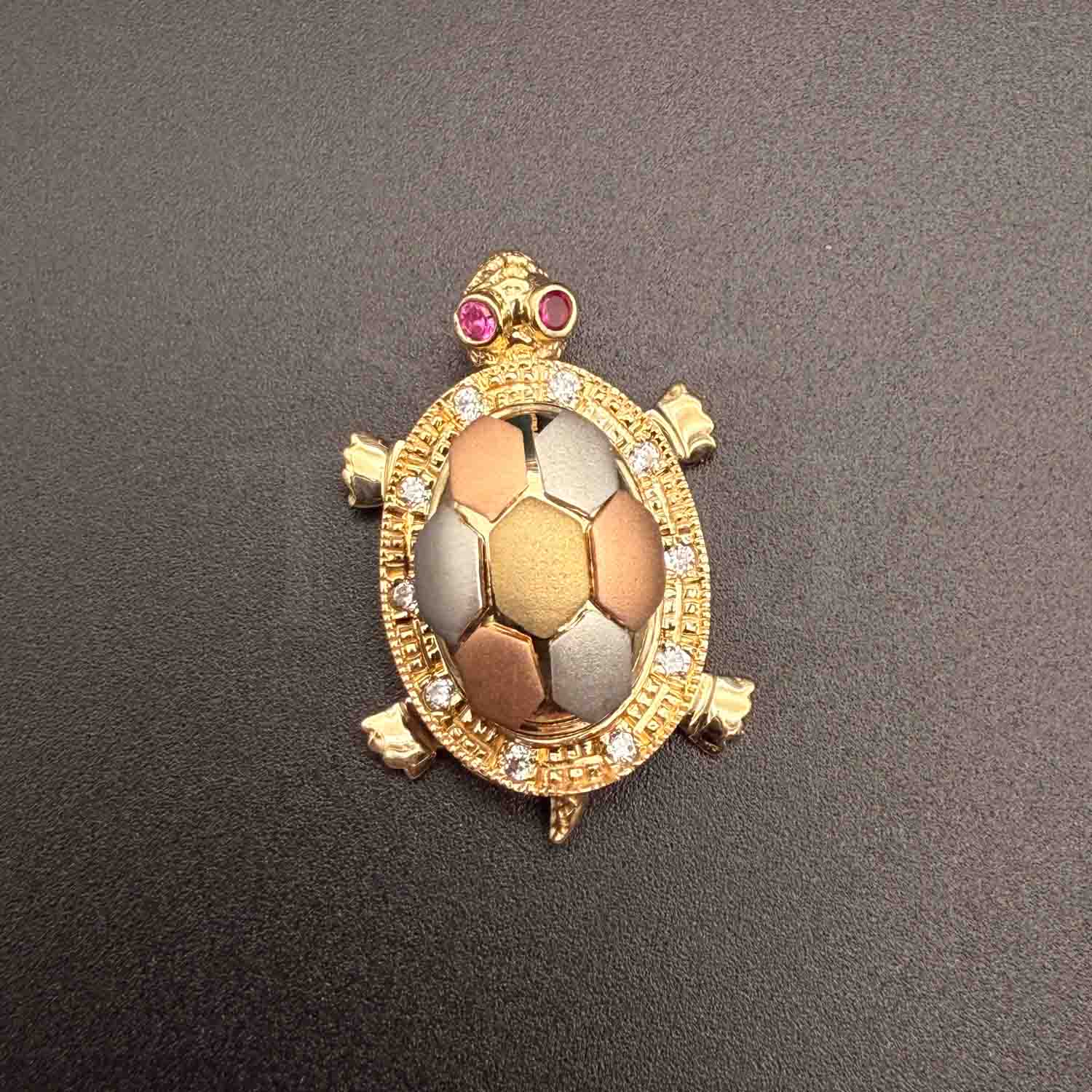 14K Tri Color Gold cubic zirconia Turtle Pendant