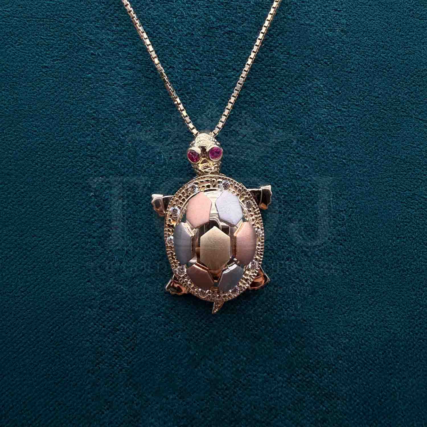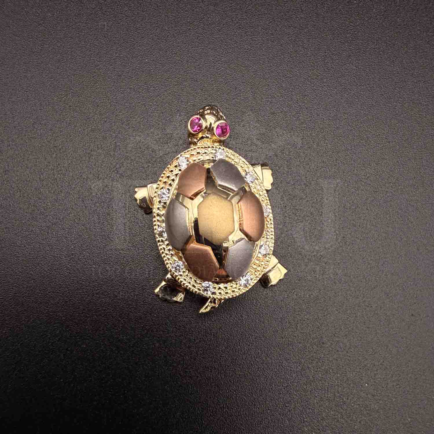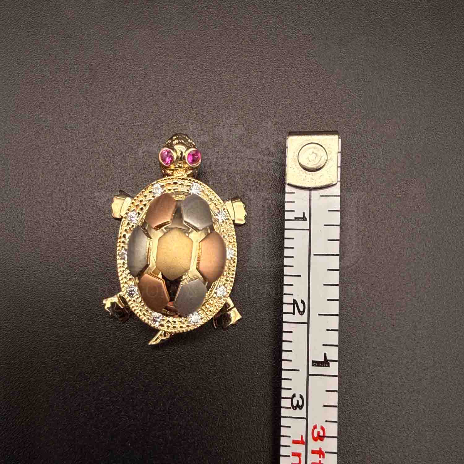 14K Tri Color Gold cubic zirconia Turtle Pendant