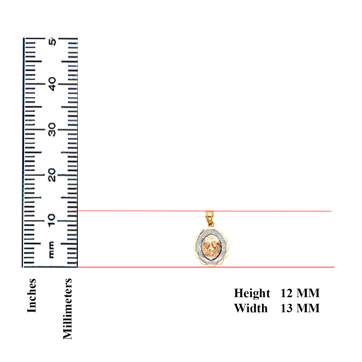 14K Tri Color Gold Mi Bautizo Oval Pendant