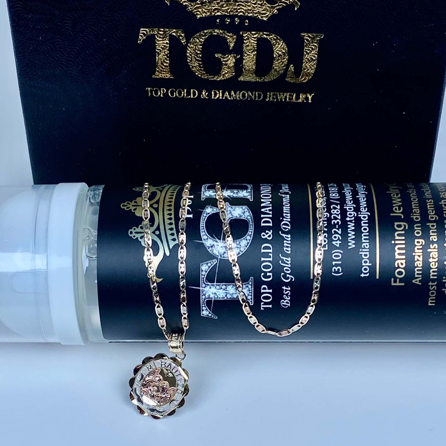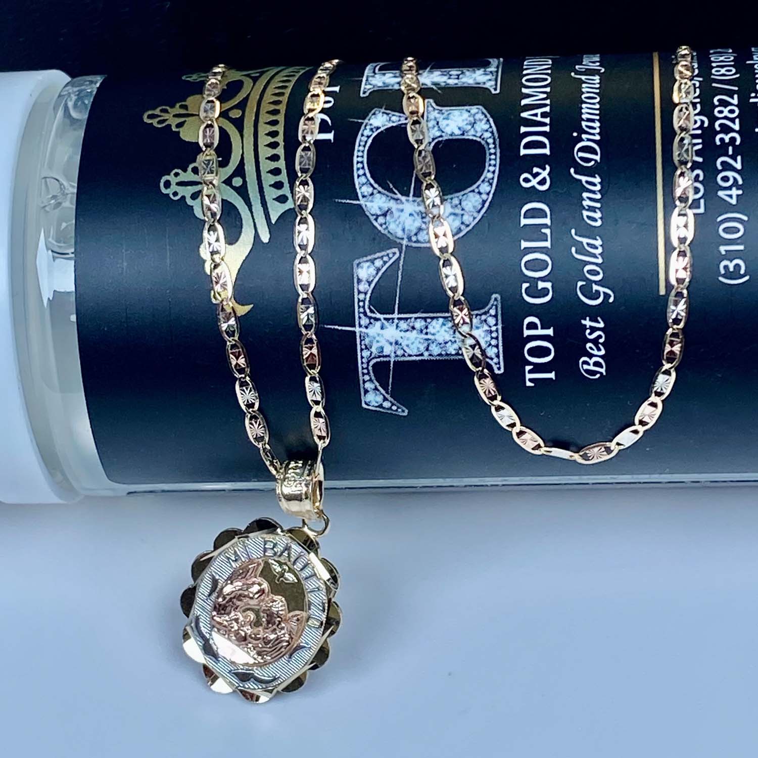 14K Tri Color Gold Mi Bautizo Oval Pendant With 1.5mm Valentono Chain - 18 inch