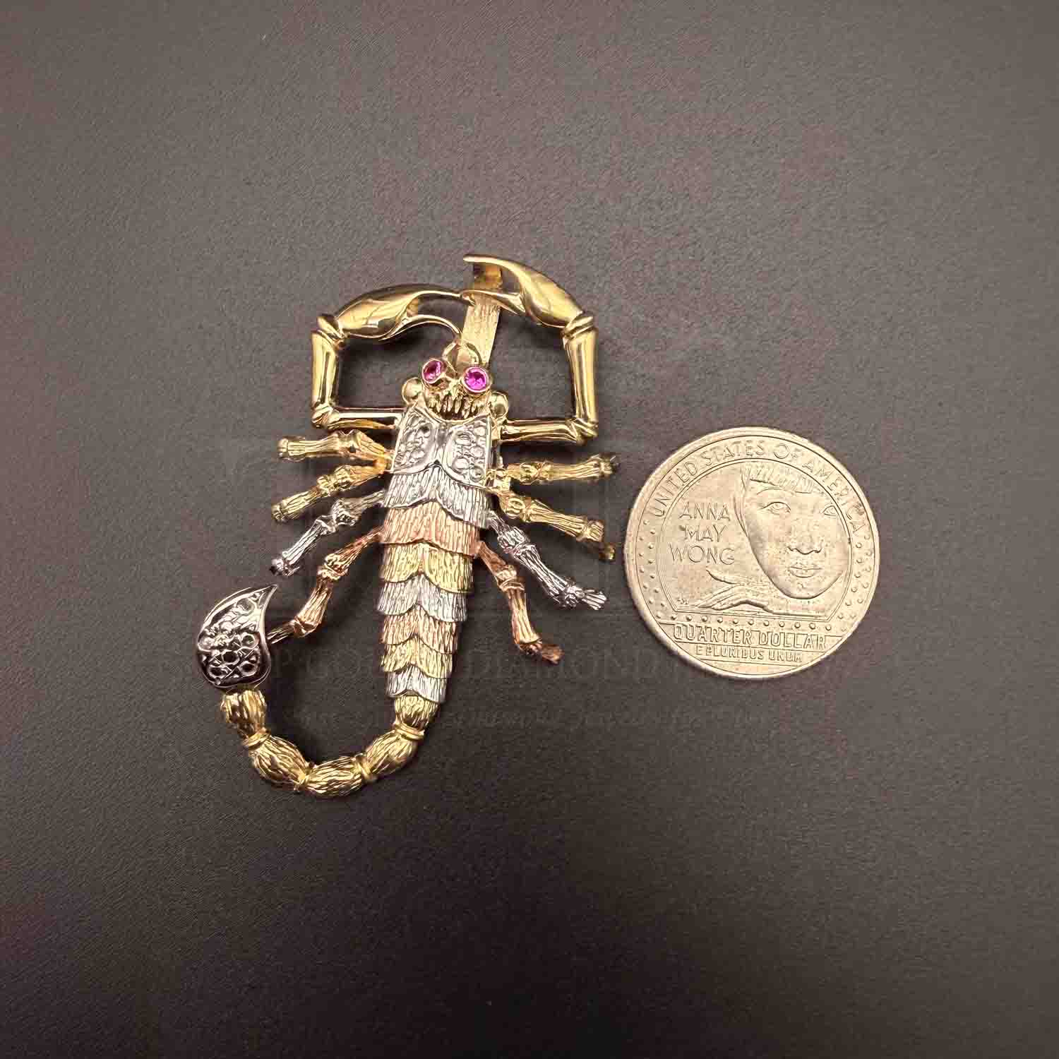 14K Tri Color Gold Scorpion Pendant